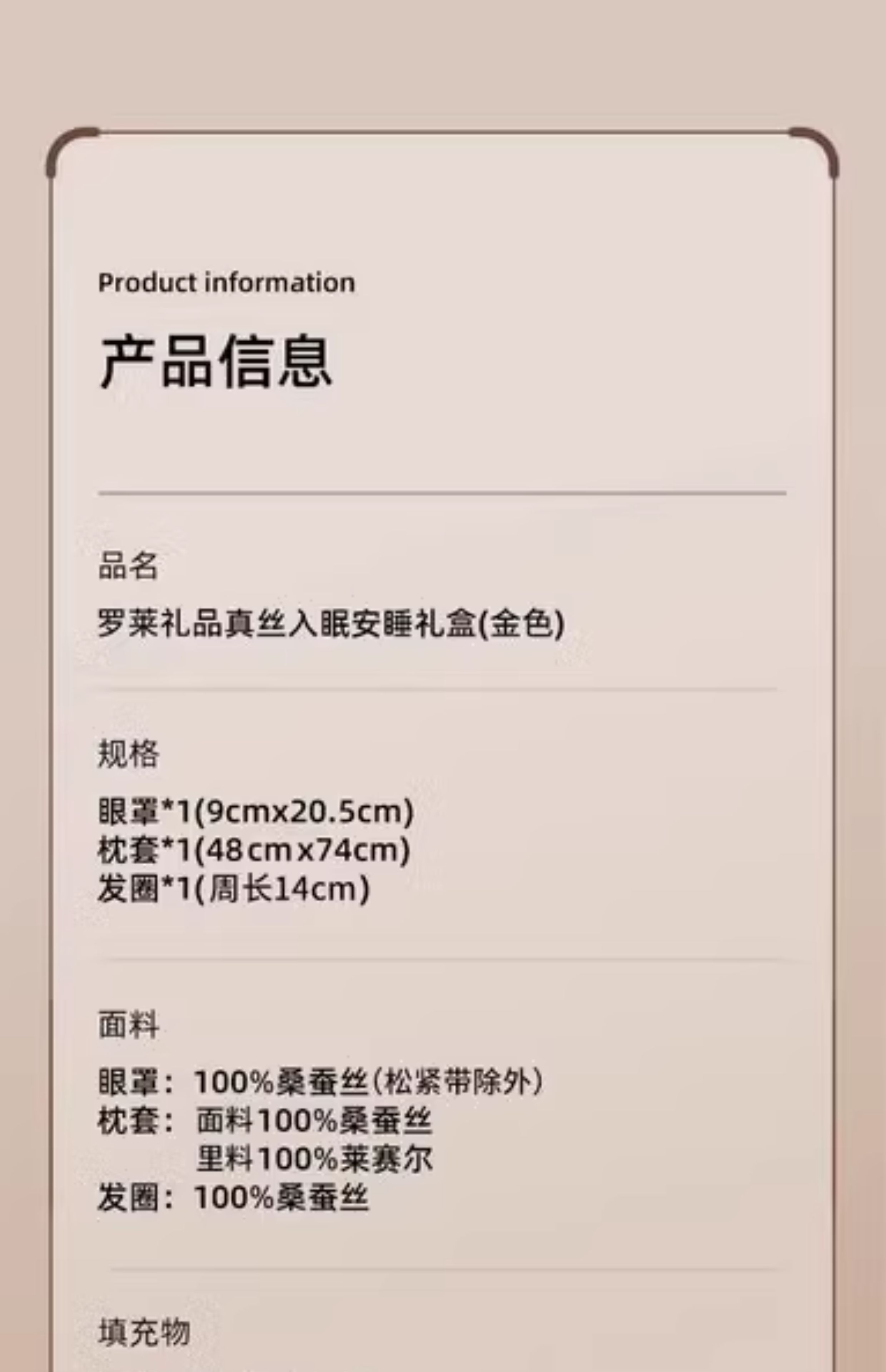 罗莱礼品-真丝入眠安睡礼盒(金)