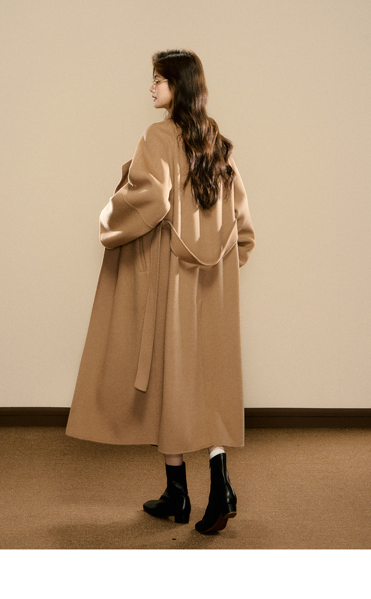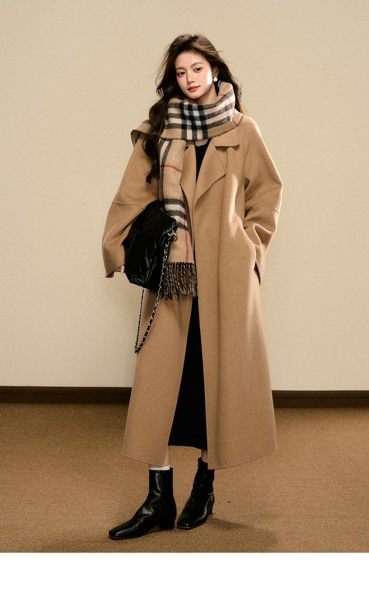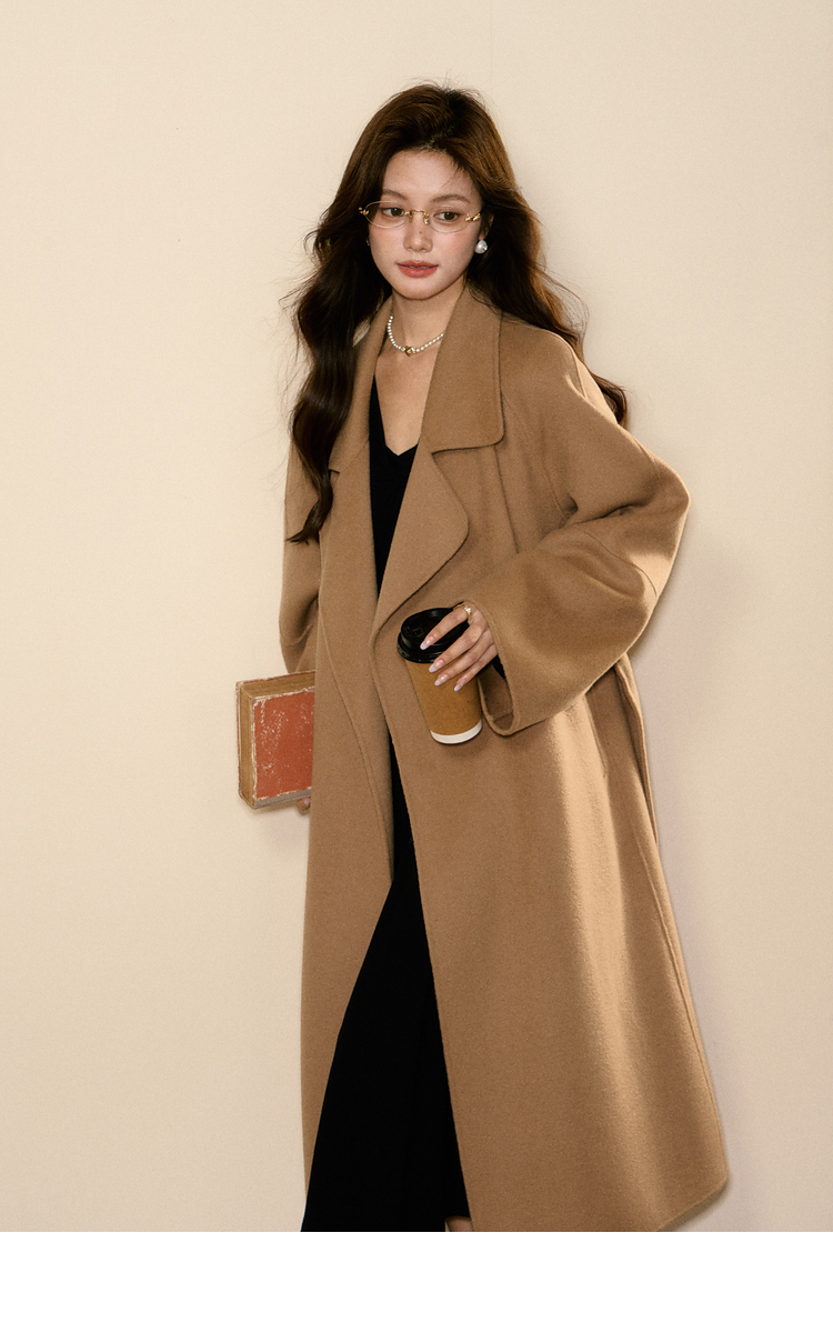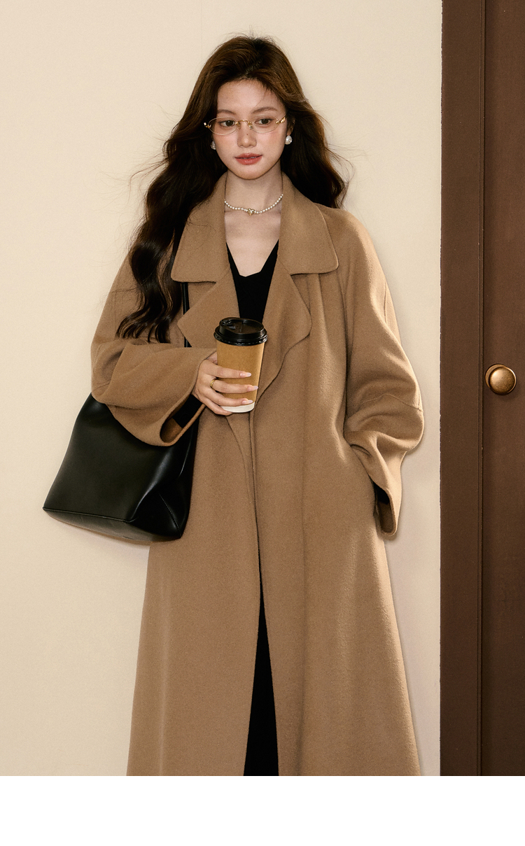 鹿向南「抱卷寻幽」焦糖色毛呢外套秋冬季新款翻领高级感大衣女士