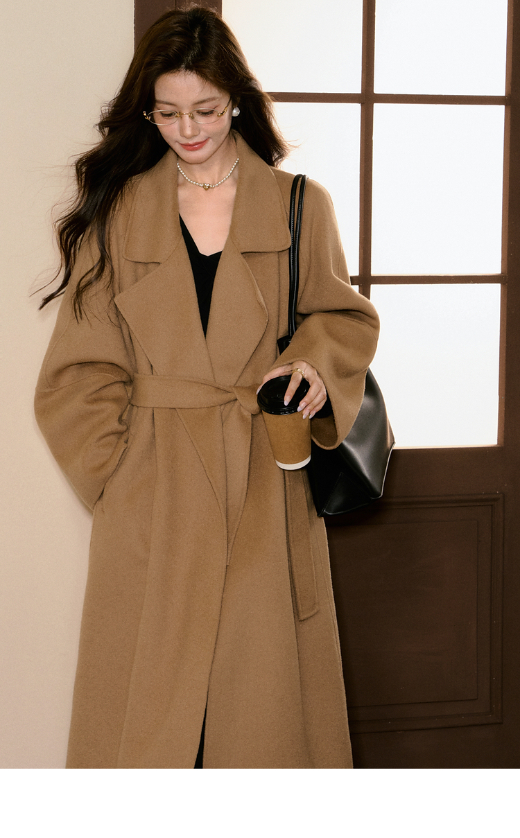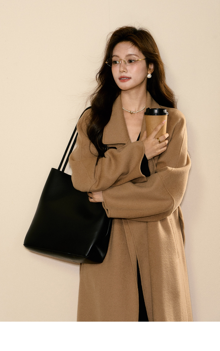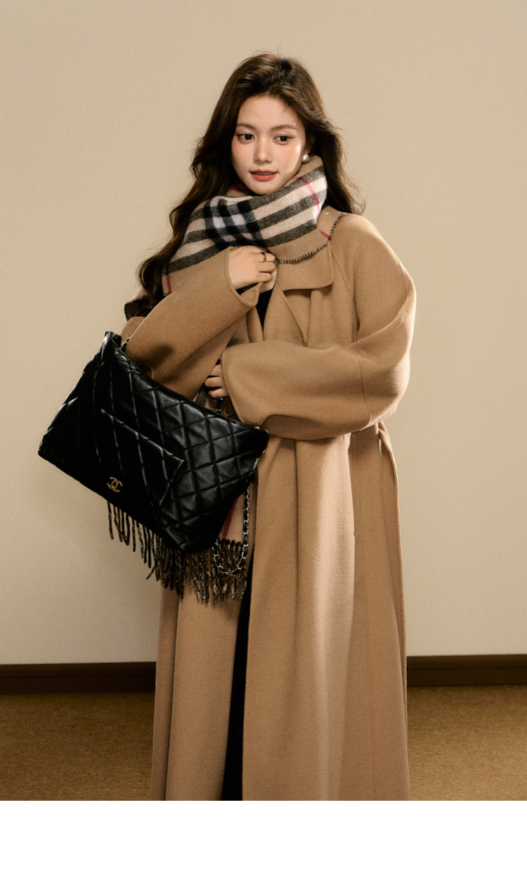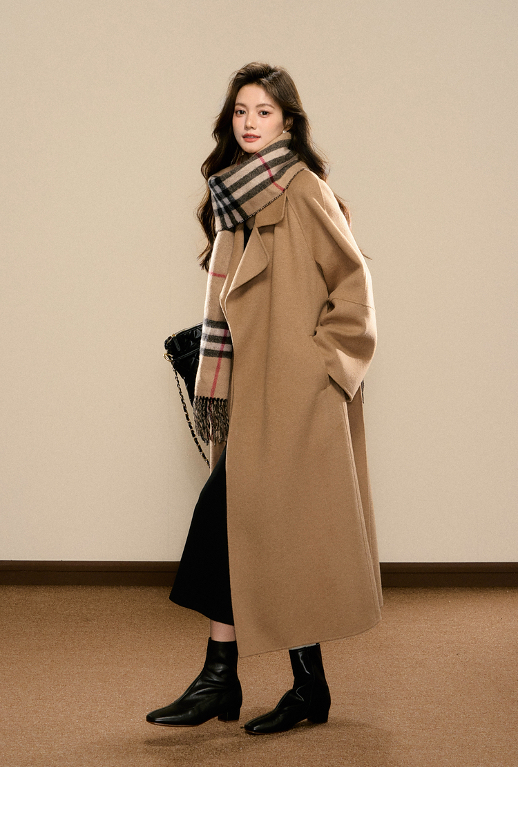 鹿向南「抱卷寻幽」焦糖色毛呢外套秋冬季新款翻领高级感大衣女士