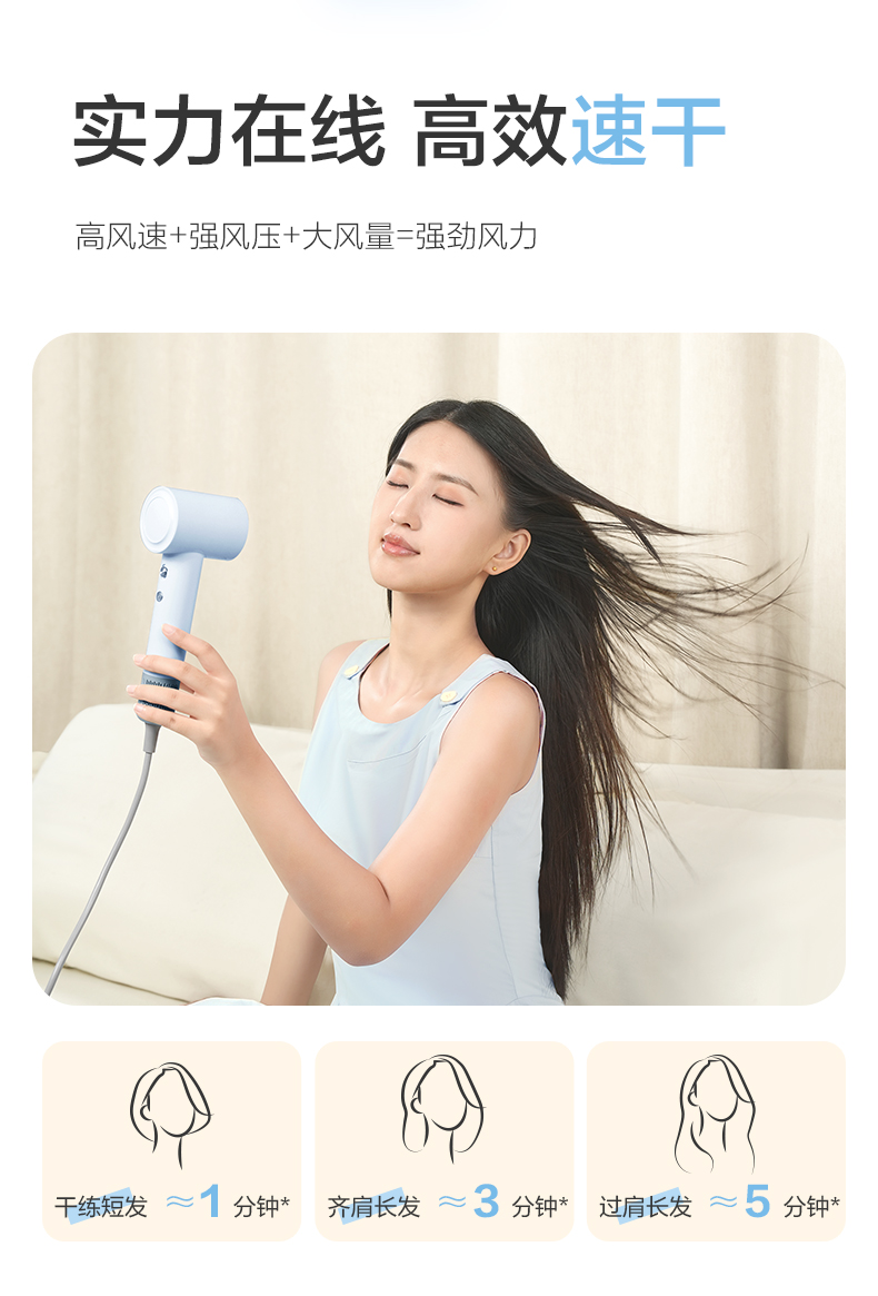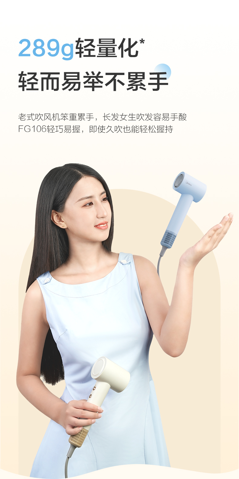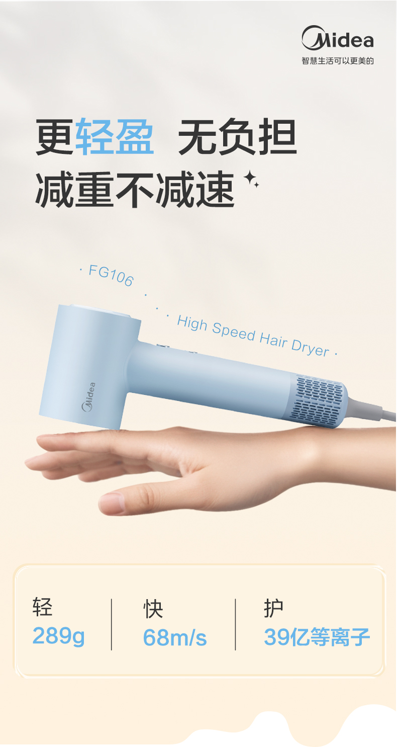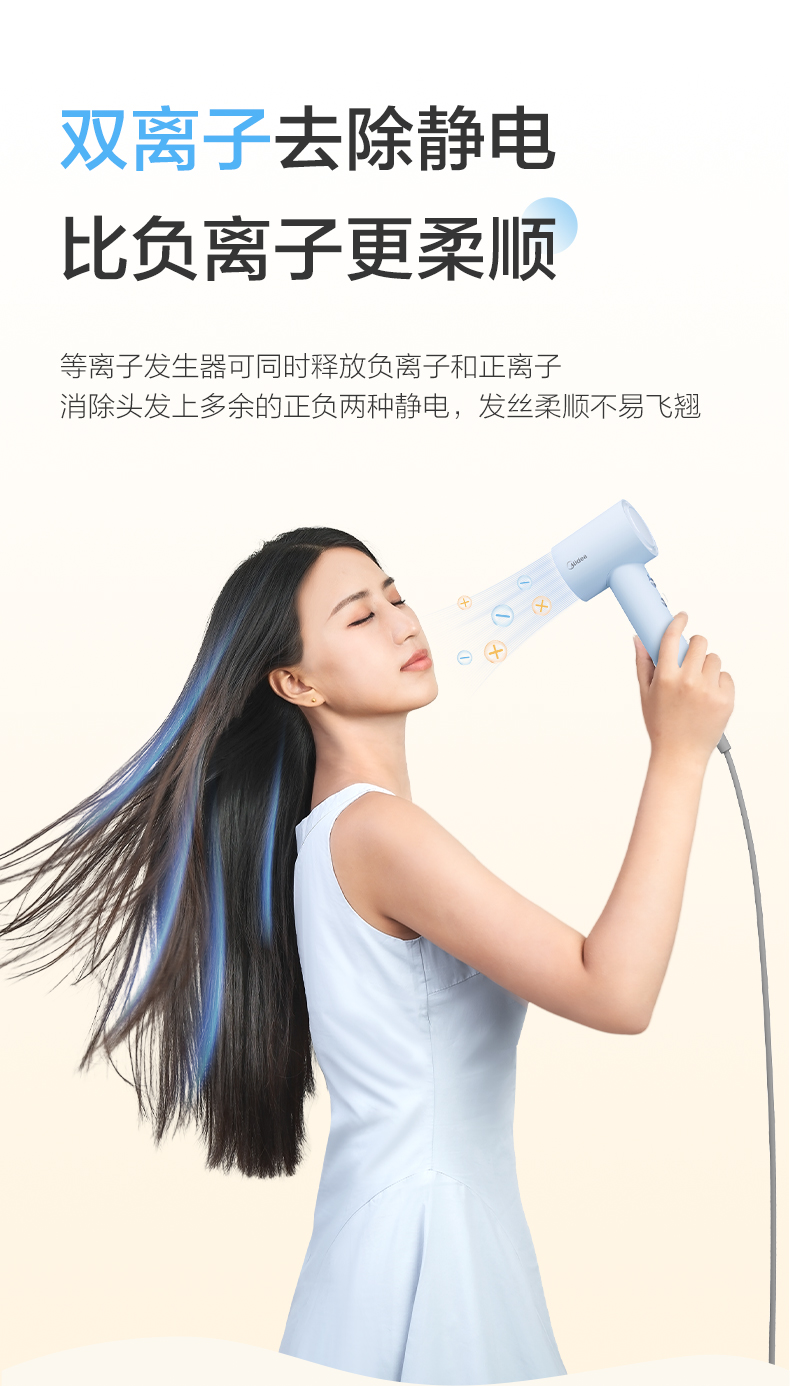 美的(Midea)高速吹风机吹风筒39亿等离子大风力速干护发家电国家补贴电吹风miniFG106