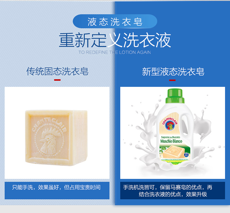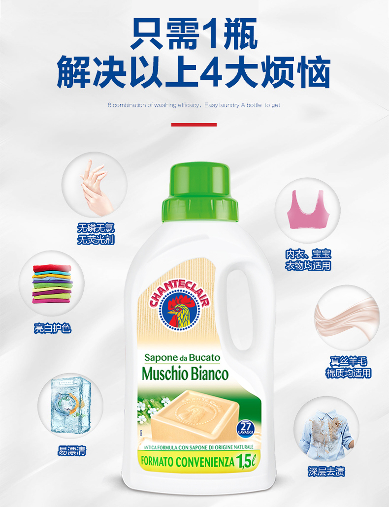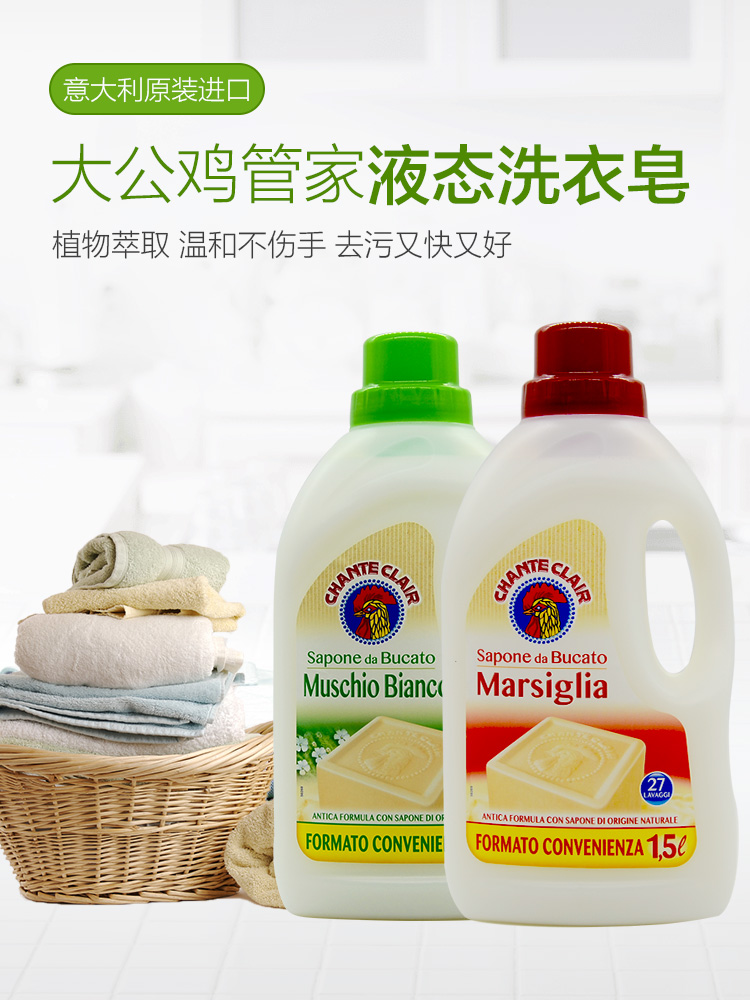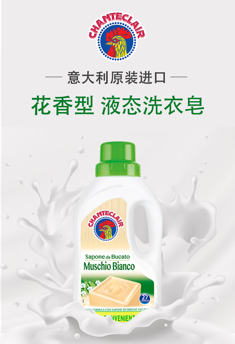【中欧班列精选】意大利进口 大公鸡头马赛皂/白麝香味洗衣皂液1.5L/瓶OC
