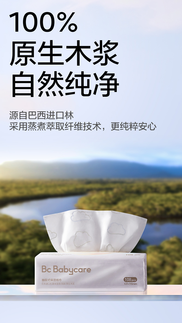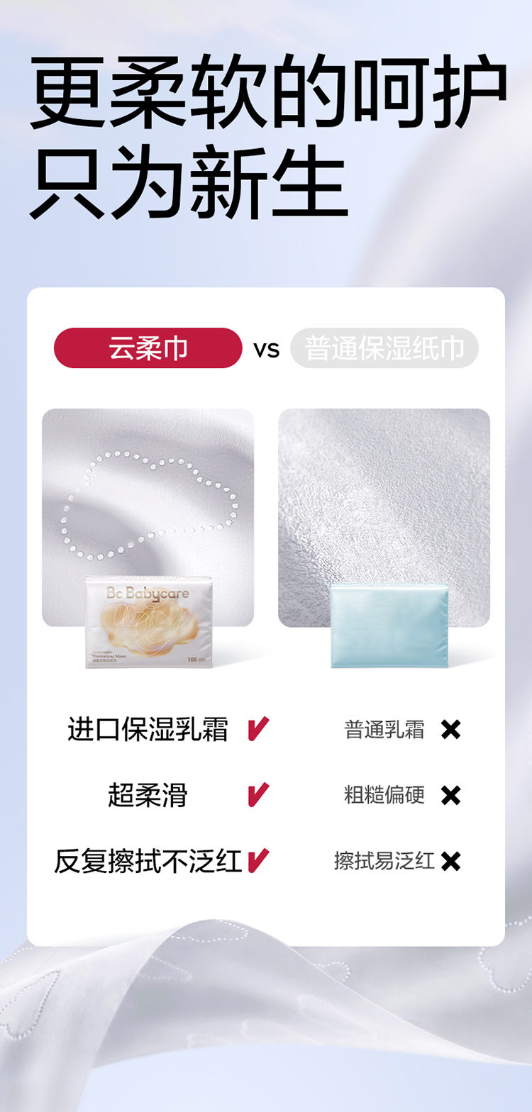 babycare婴儿云柔巾新生儿超柔纸巾宝宝保湿纸巾小包108抽*6包