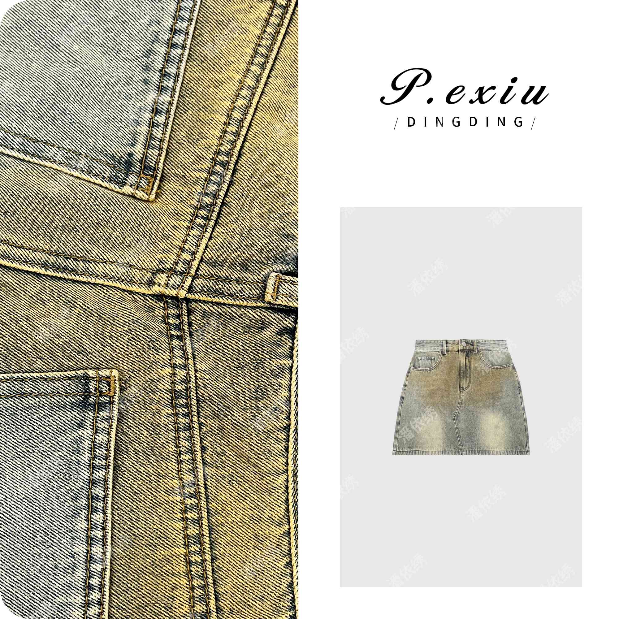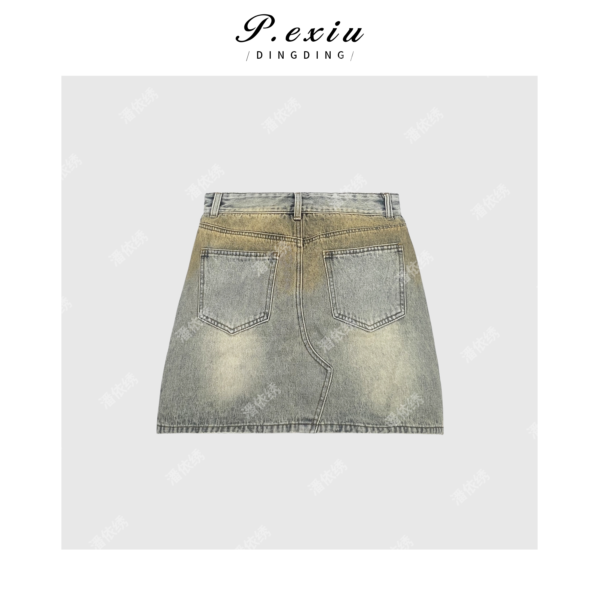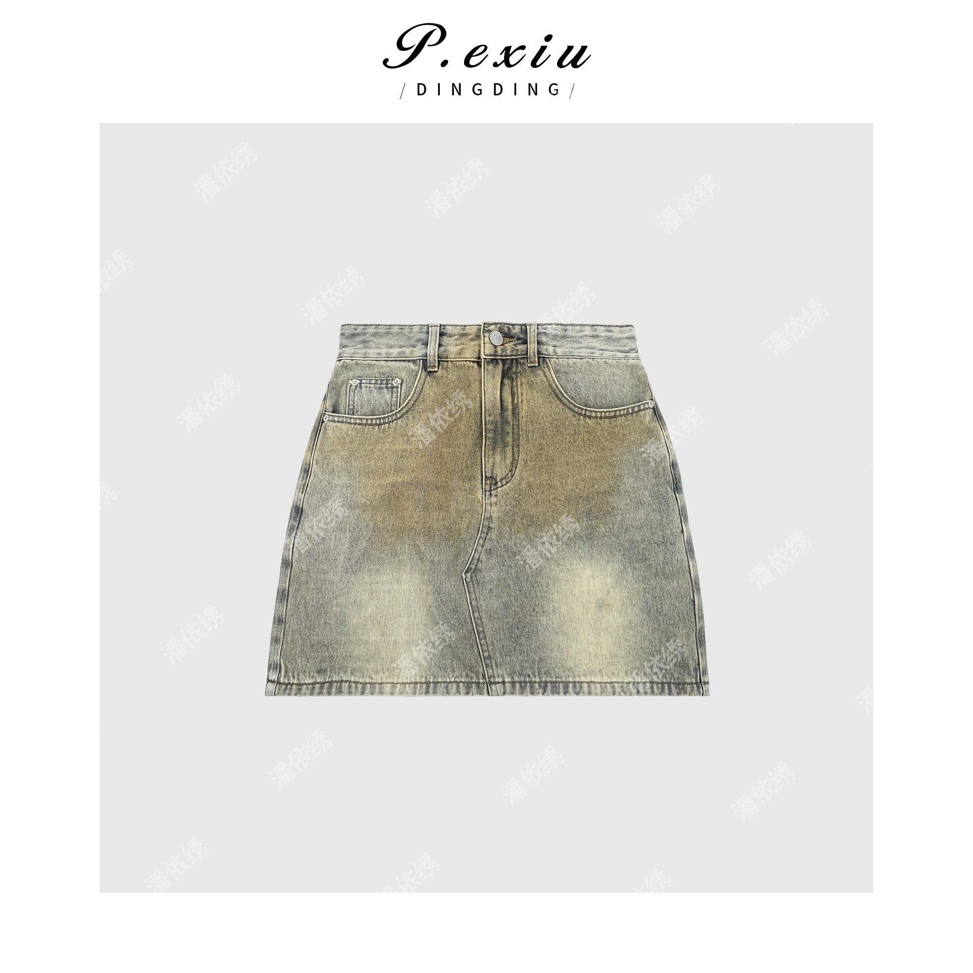 04-3潘依绣丁丁宠粉PanYiXiu/潘依绣100%棉美式复古水洗做旧A字牛仔短裙 D6521