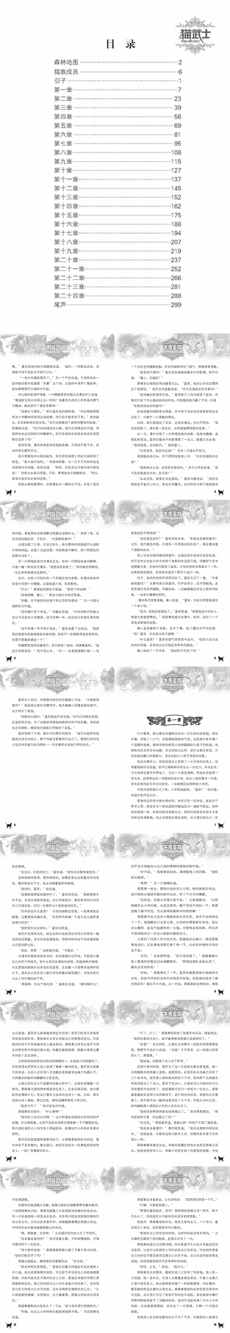 拿到译稿后,在对书稿的审读时,很快就被作品本身吸引住了,对作品中的各个猫的特点以及故事精彩的内容如数家珍。或许是熟视无睹的原因吧,觉得“武士”就是一部写猫的爱恨情仇的动物奇幻小说,用“武士”做书名没有什么不妥。