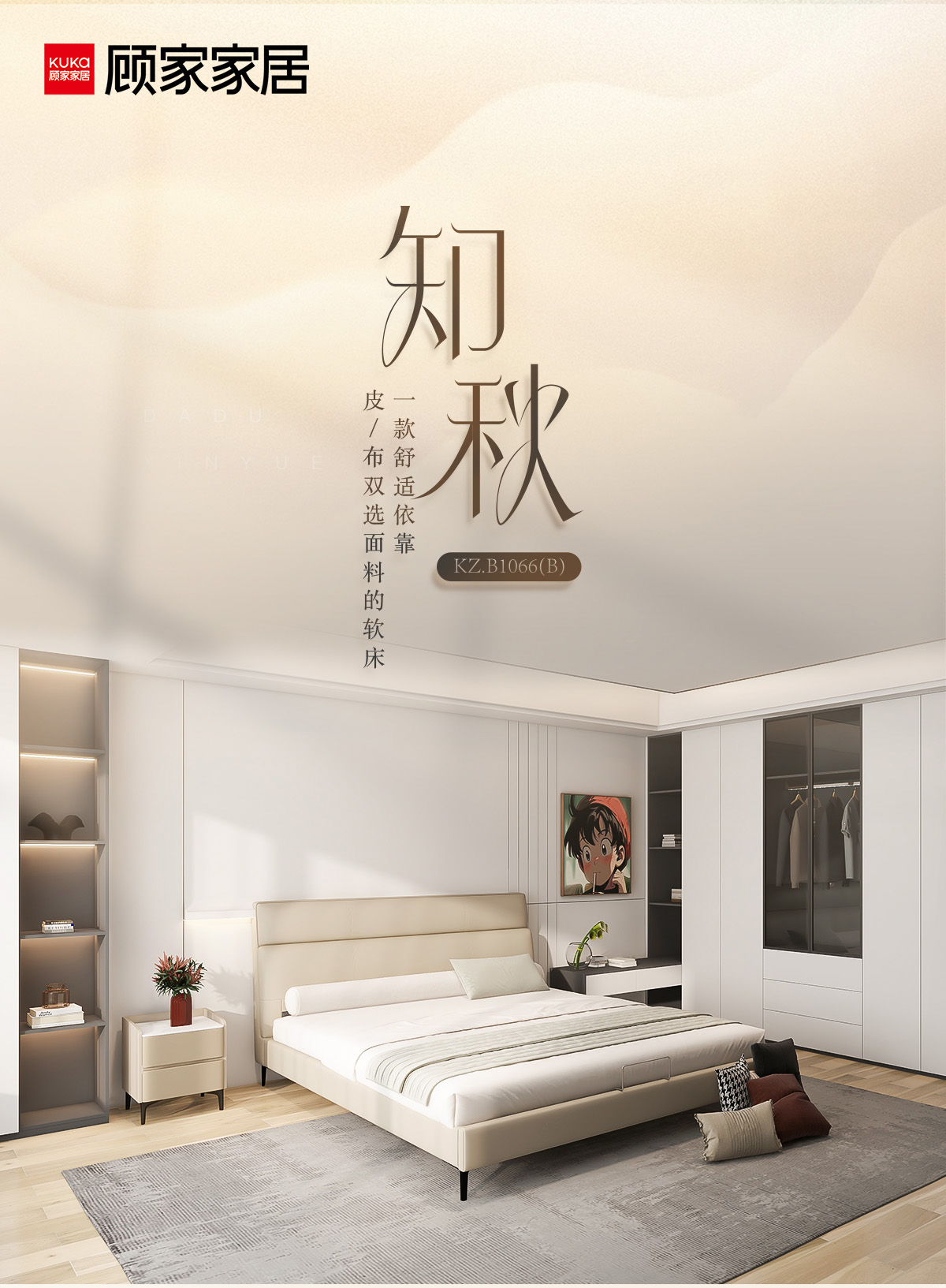 顾家家居整装 现代简约 皮/布艺软床 KZ.B1066(B) 知秋