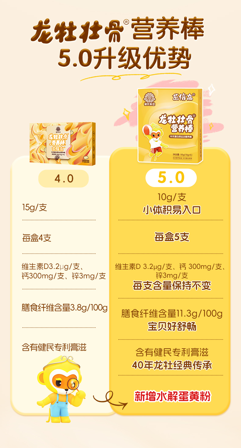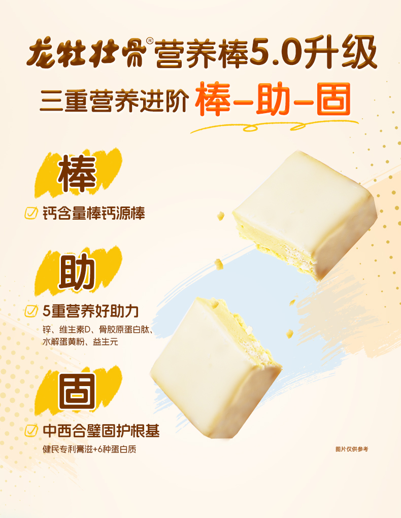 热销300万盒,龙牡壮骨营养棒 5.0 新版新日期 儿童钙蛋白质吸收锌维生素D膏滋减甜骨胶原蛋白肽 水解蛋黄粉(官方直营)