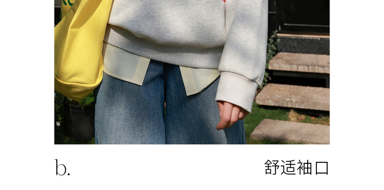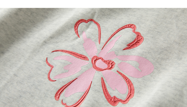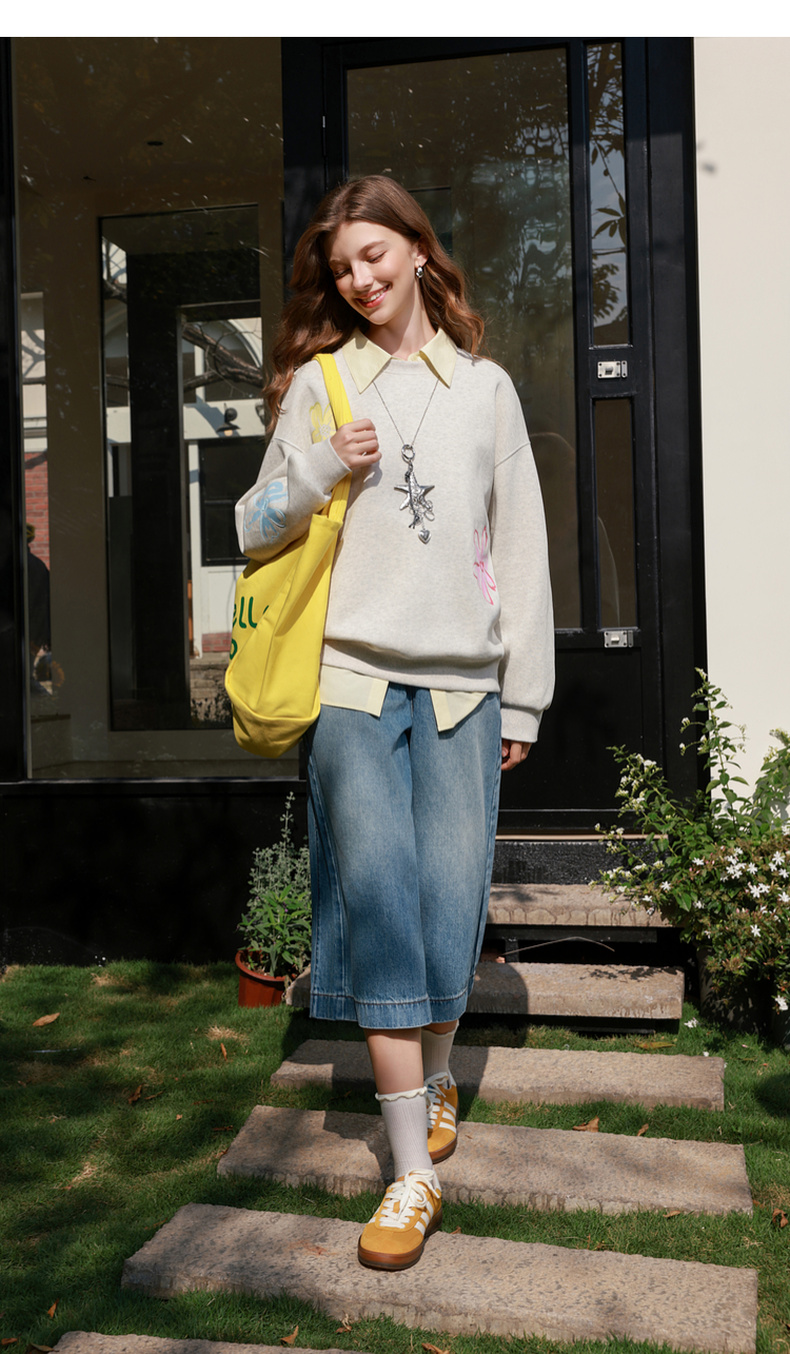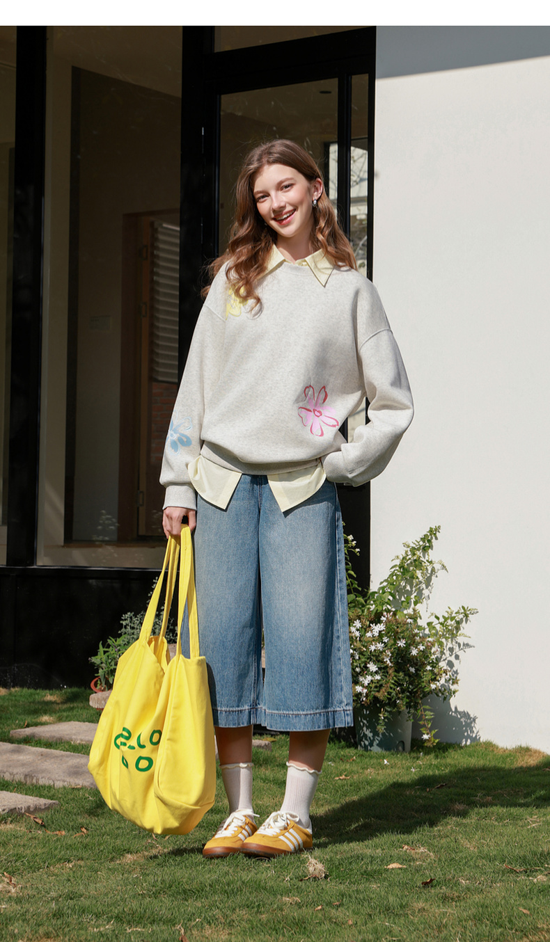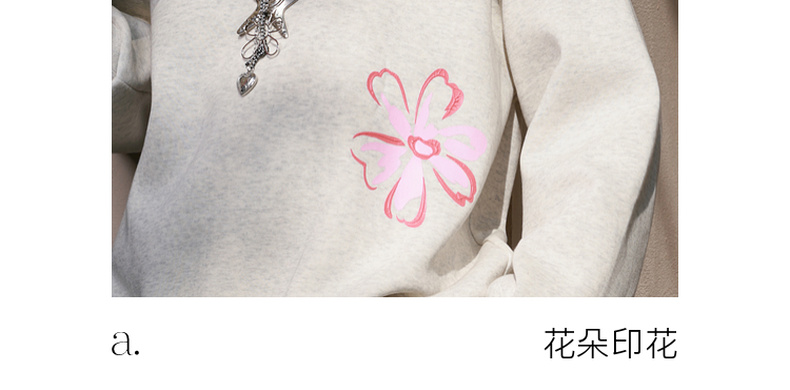 三彩2026春季新款花朵印花卫衣套头衫宽松休闲落肩袖上衣M