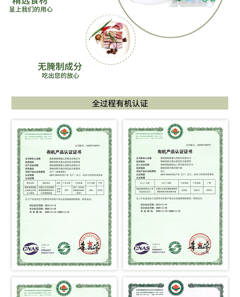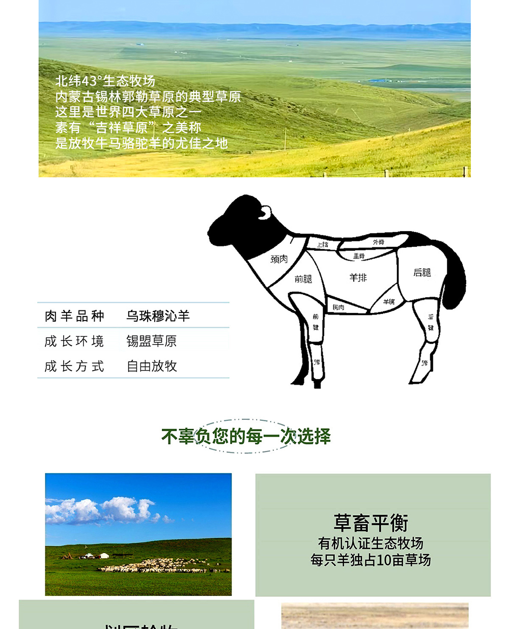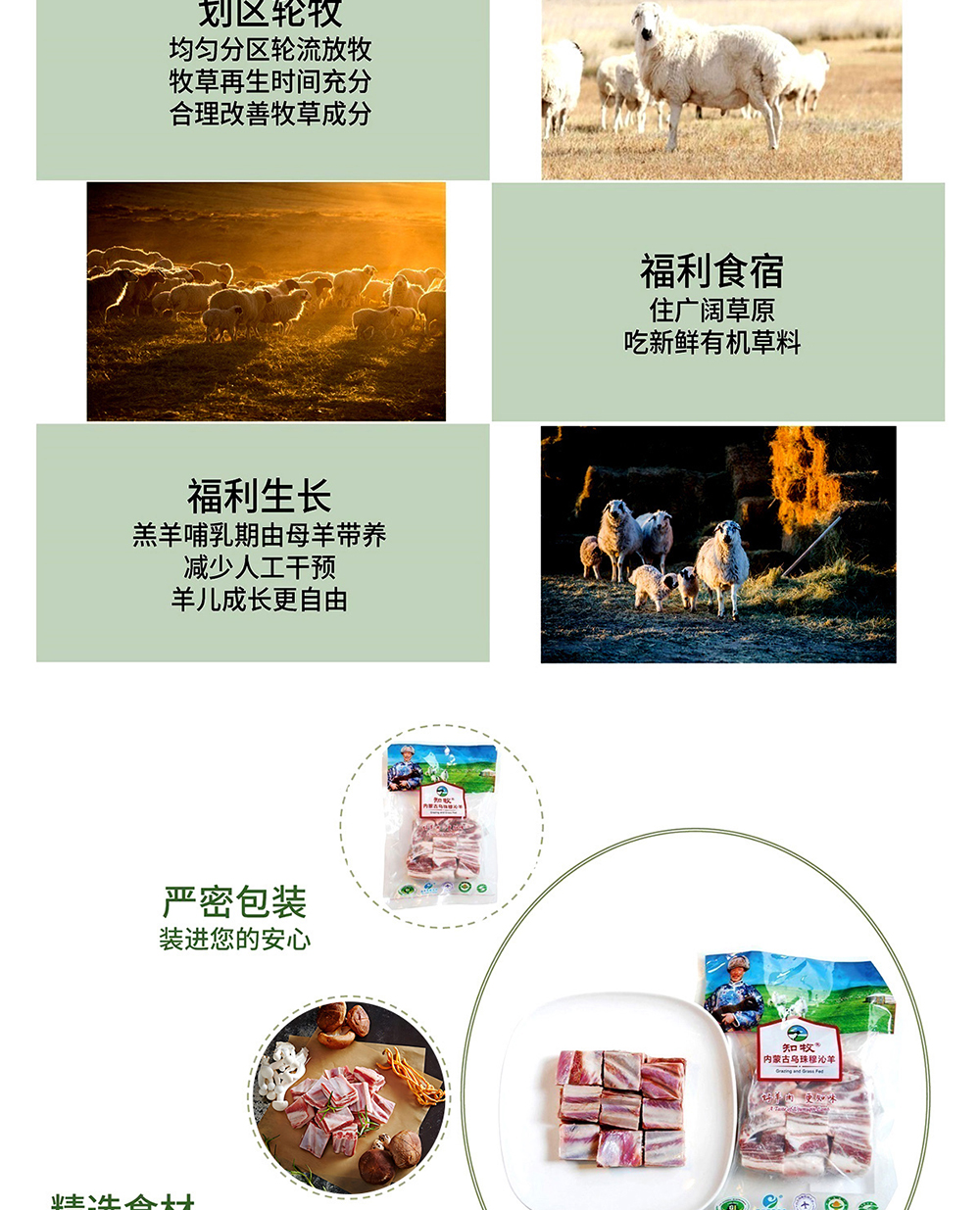 锡盟草原有机羔羊排块500g*2 包邮|基地直发