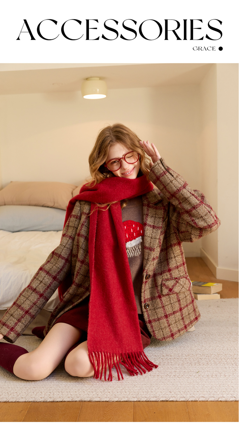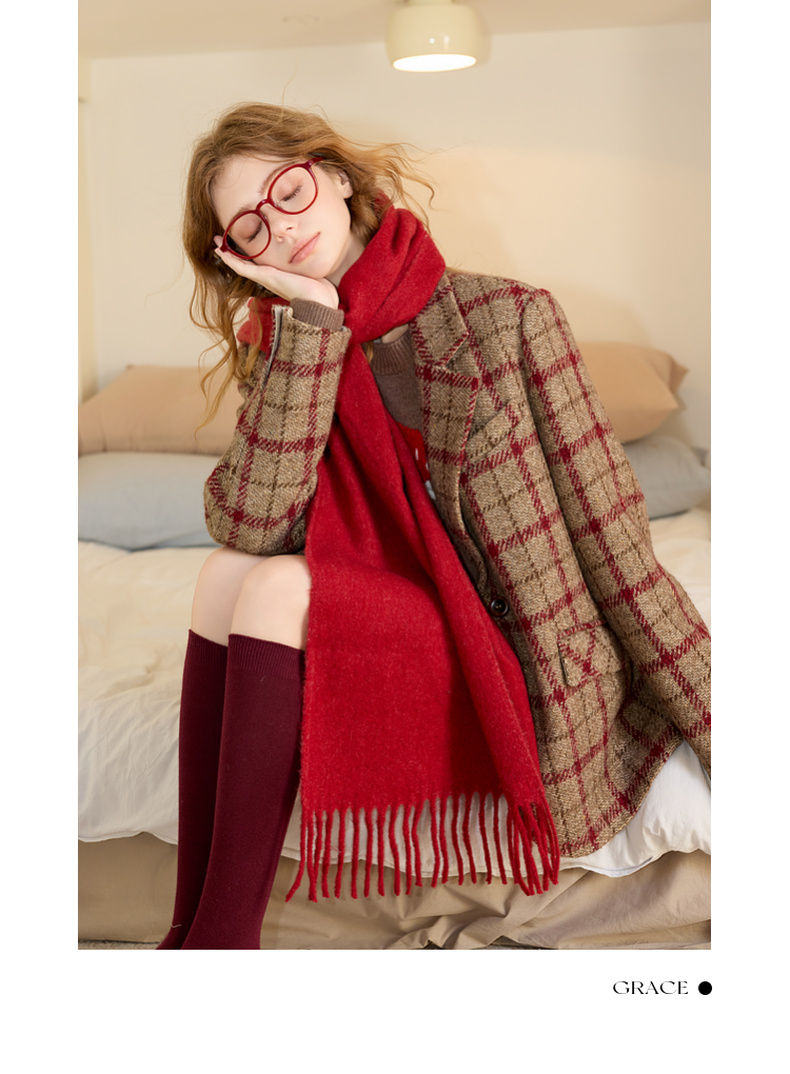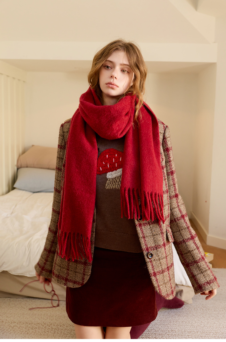 三彩2025新款复古节日红节庆流苏毛绒围巾围脖保暖松弛氛围感女