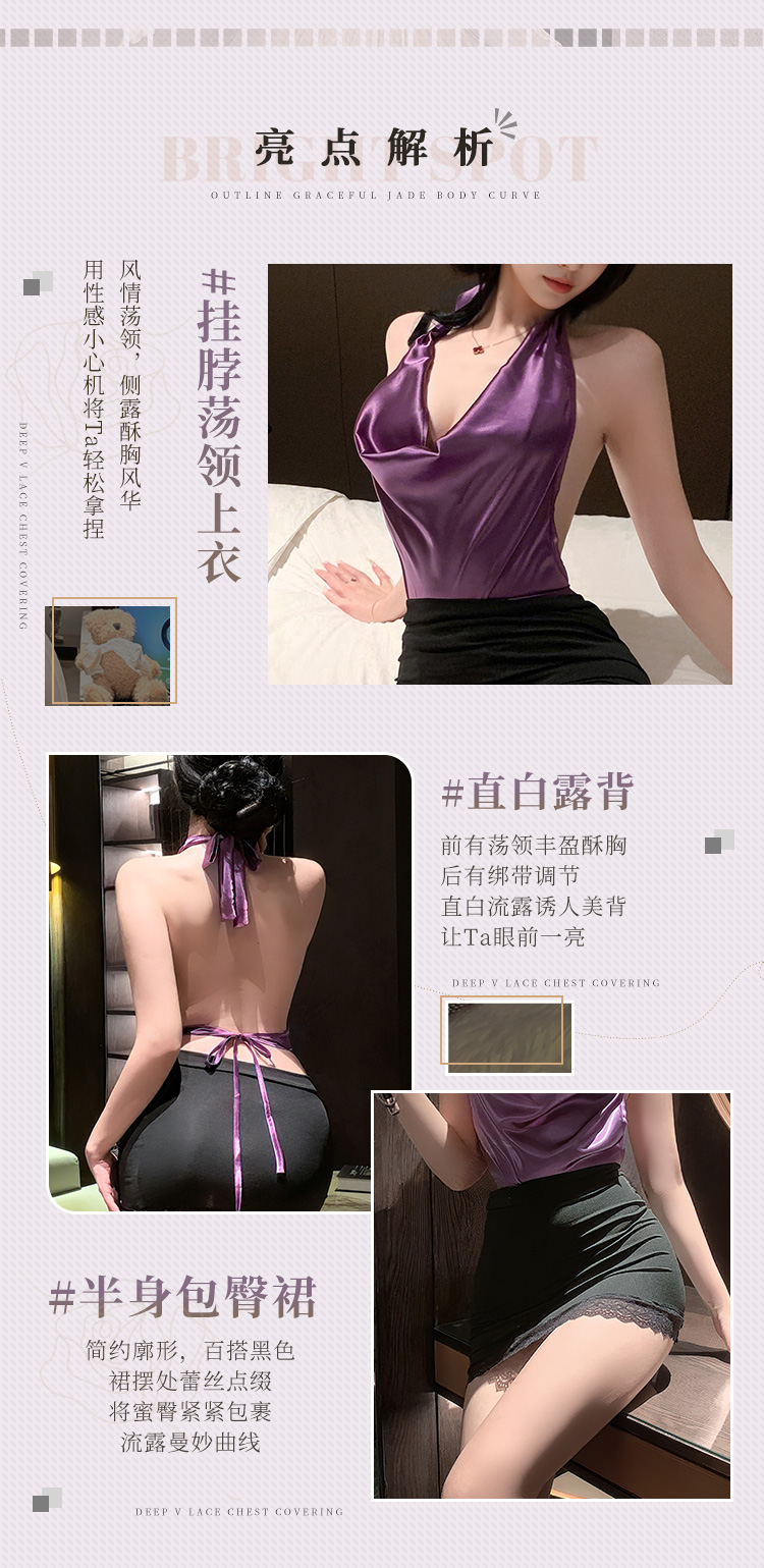 【情趣内衣】霏慕禁欲秘书长荡领裸背套装6511