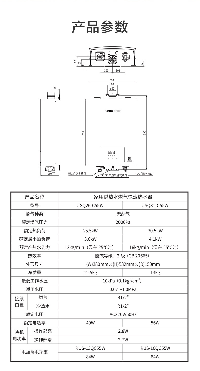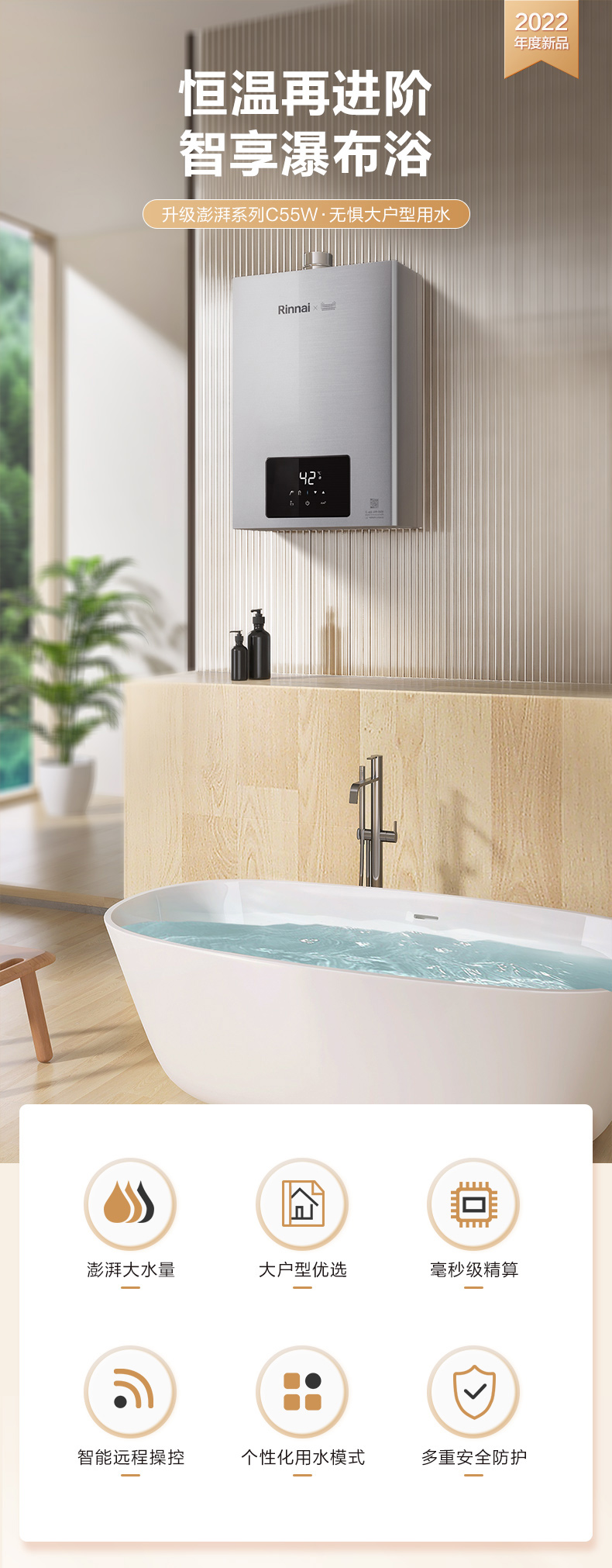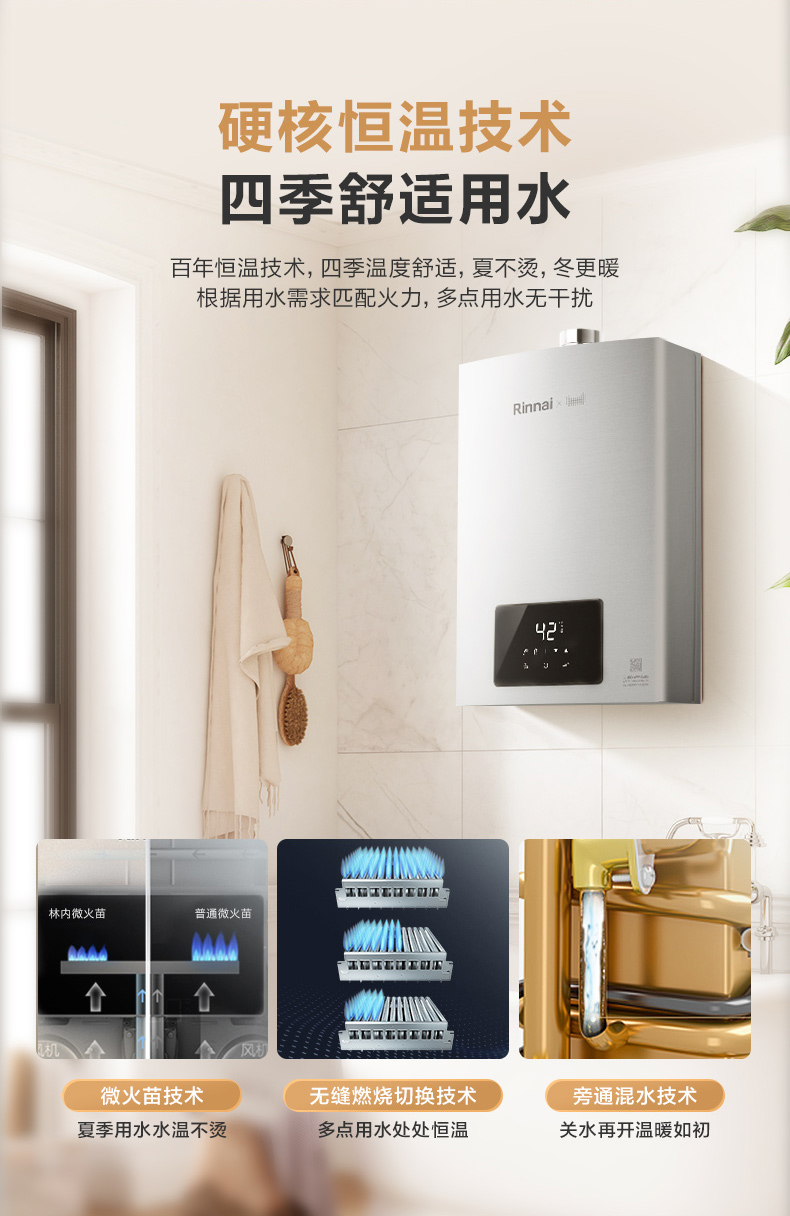 林内燃气热水器家用恒温天然气静音智能洗澡进口CPU节能16升C55W