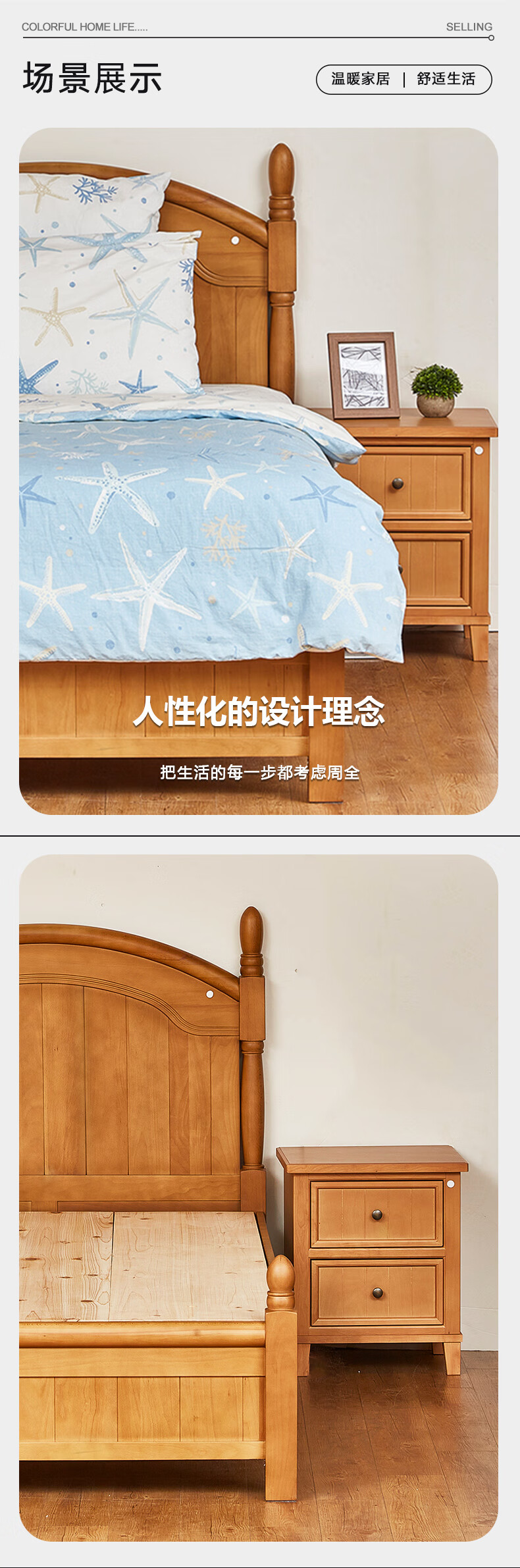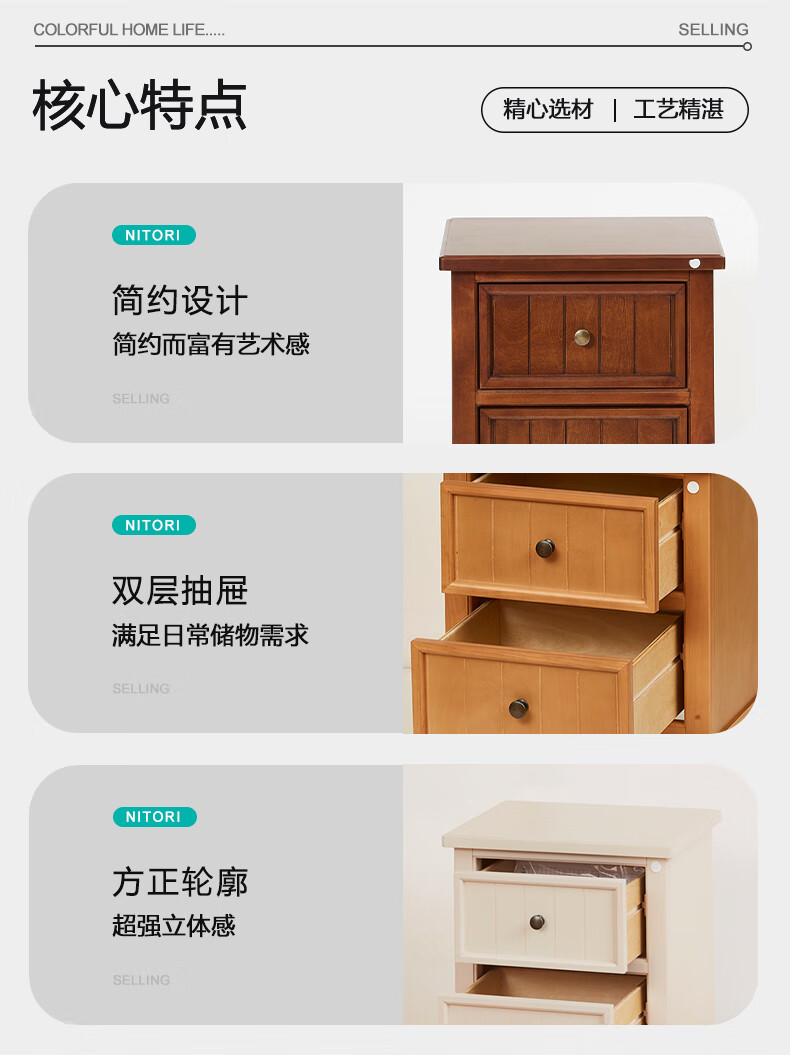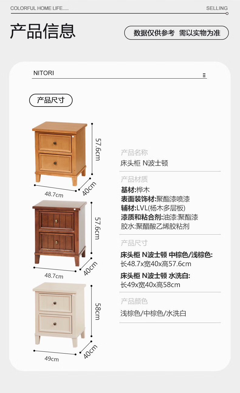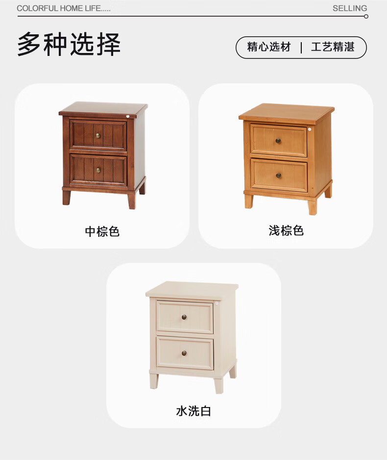 【家具】床头柜 N波士顿(需自行安装) 水洗白/浅棕色/中棕色