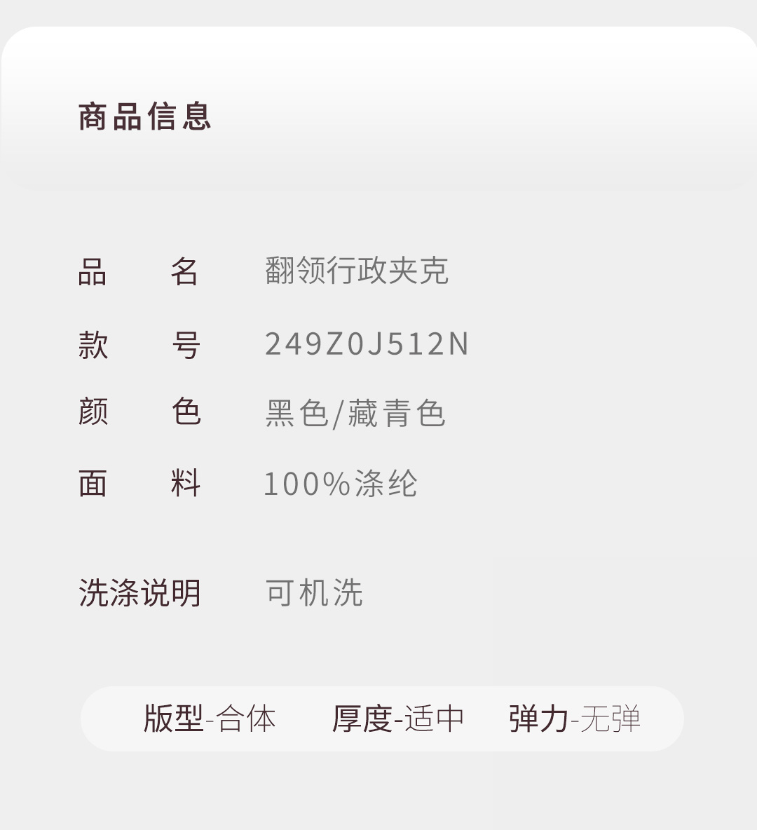 【风尚九号】翻领保暖内胆行政夹克4级拒水防风249Z0J512N