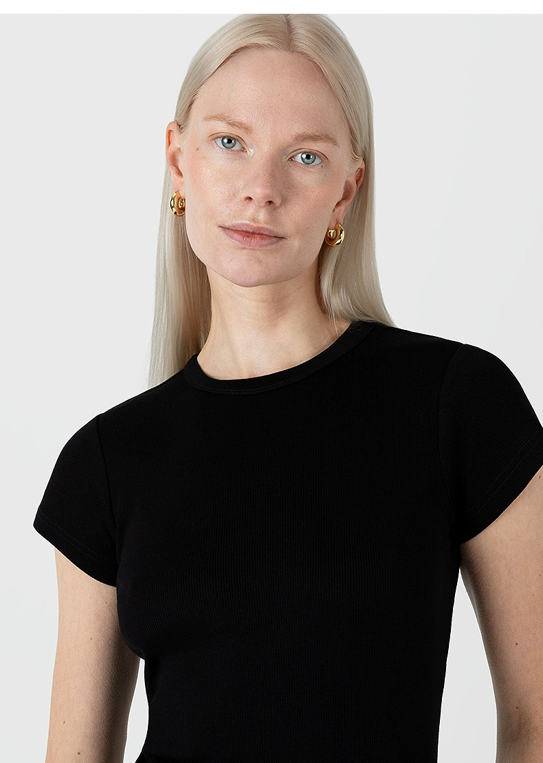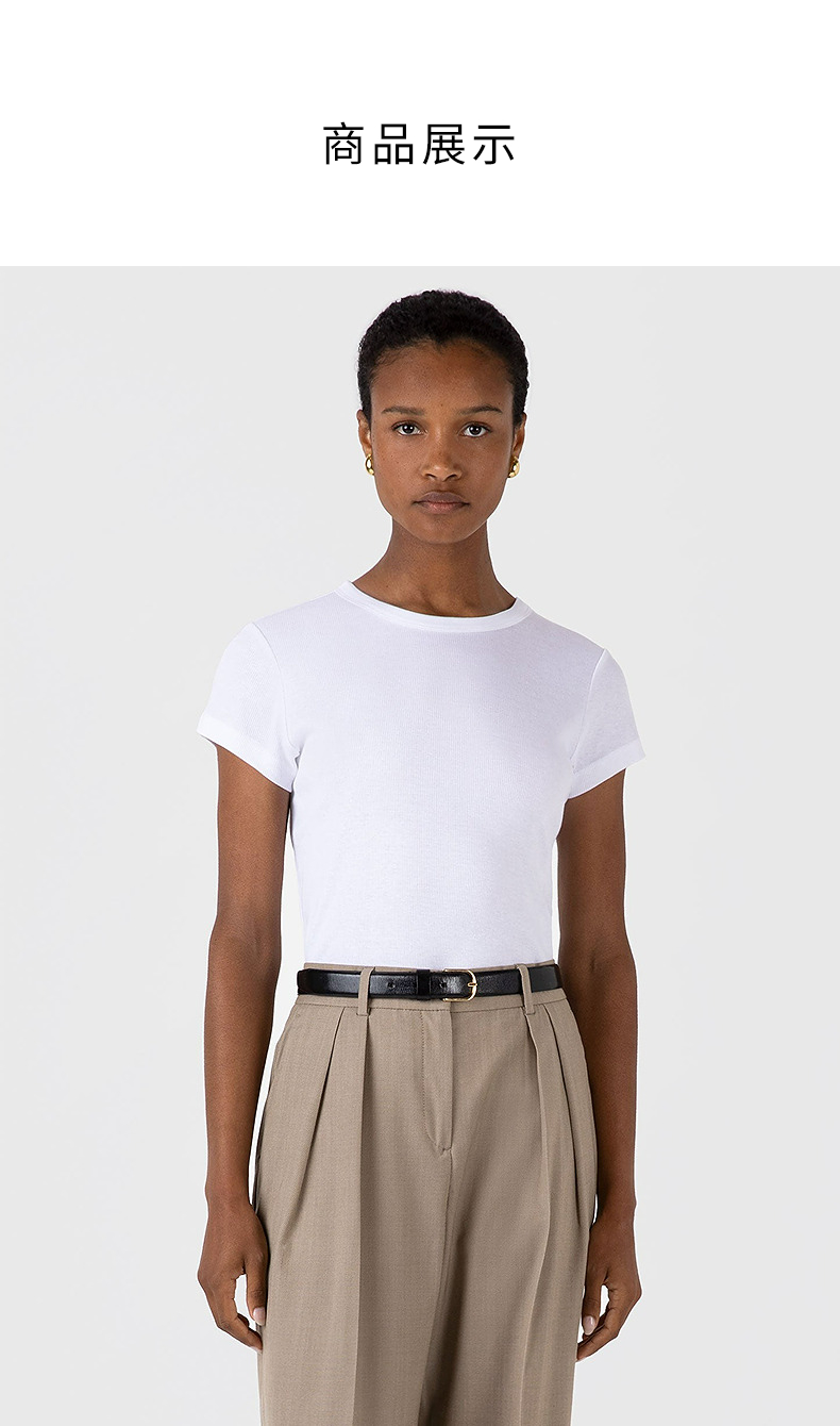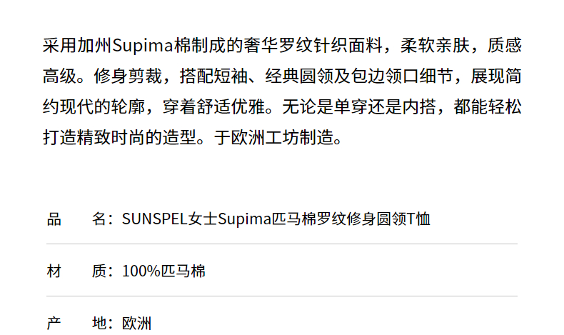 SUNSPEL女士经典款Supima匹马棉罗纹针织修身圆领T恤