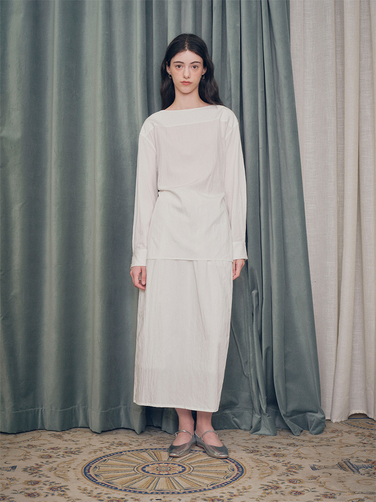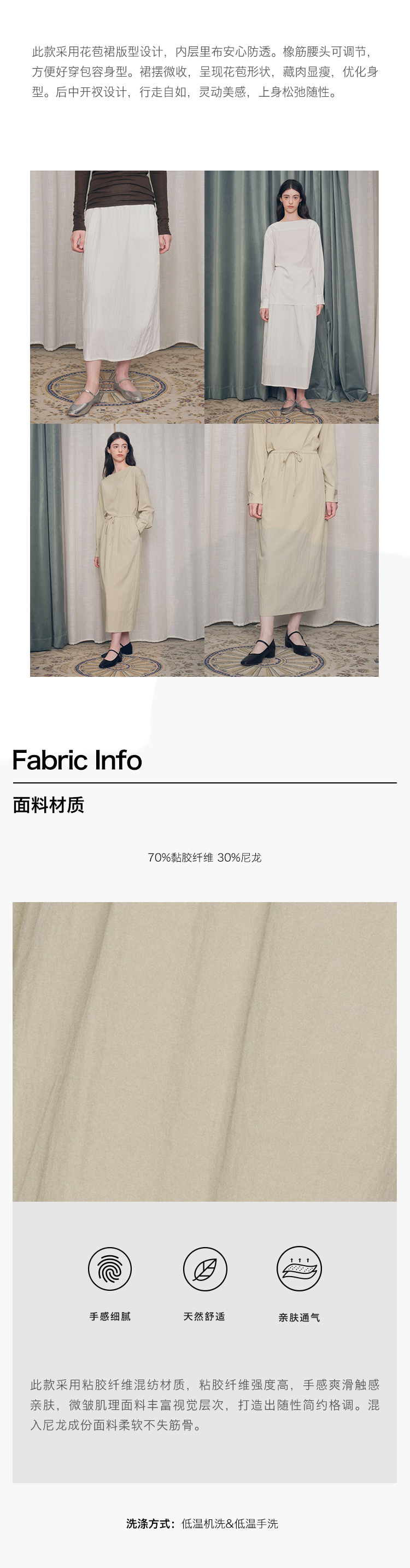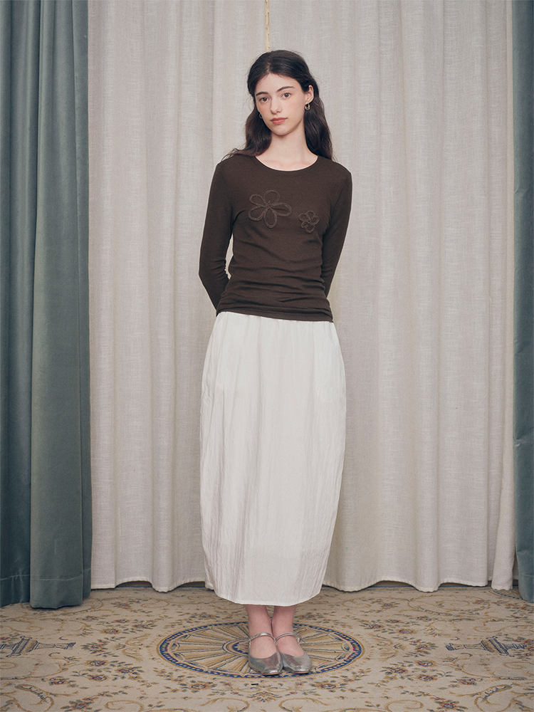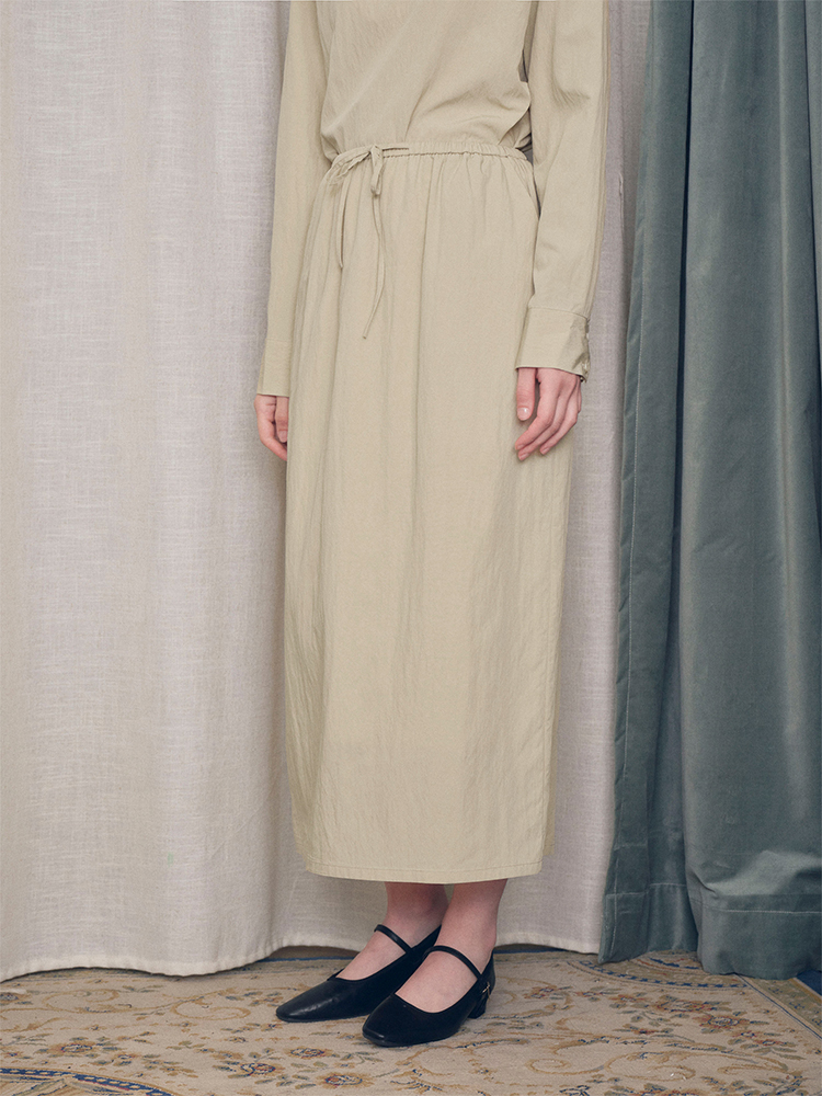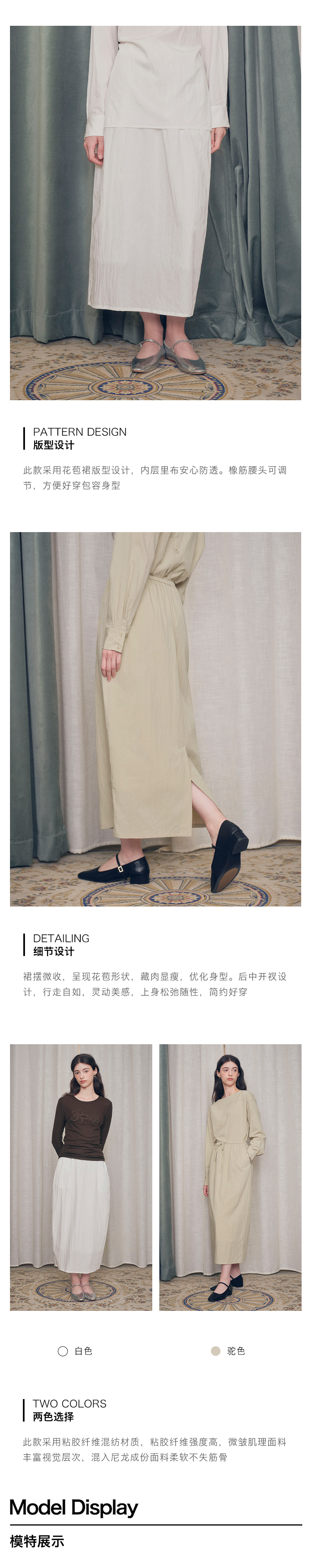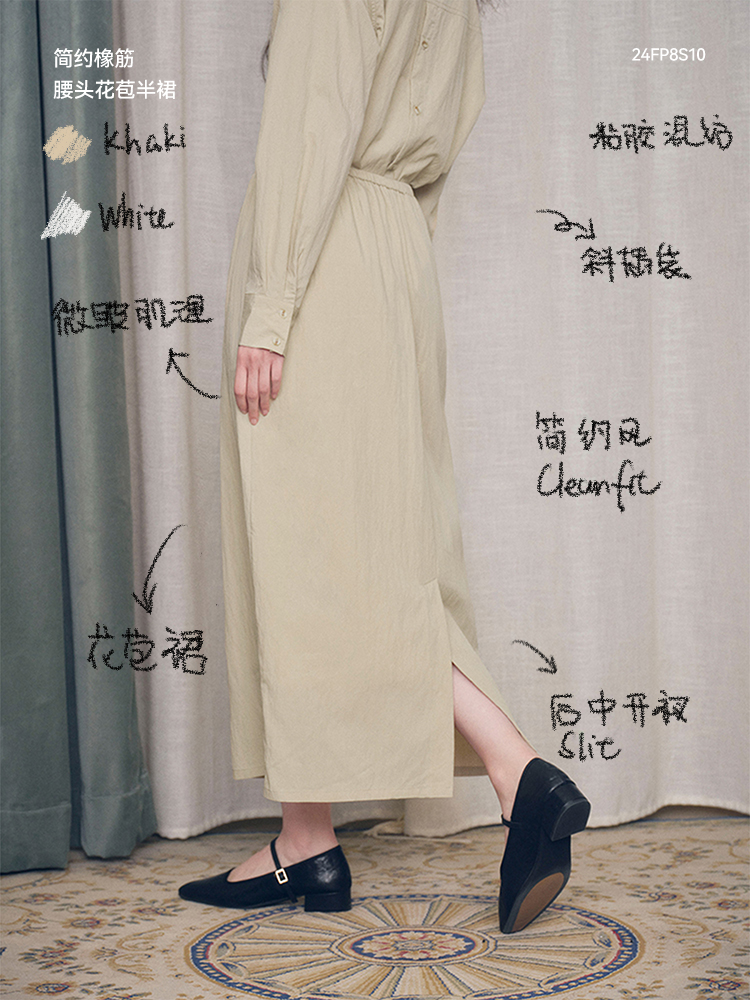 【ForPoem X SUKIxxxx联名系列】现货 简约休闲系带松紧花苞中长款半裙