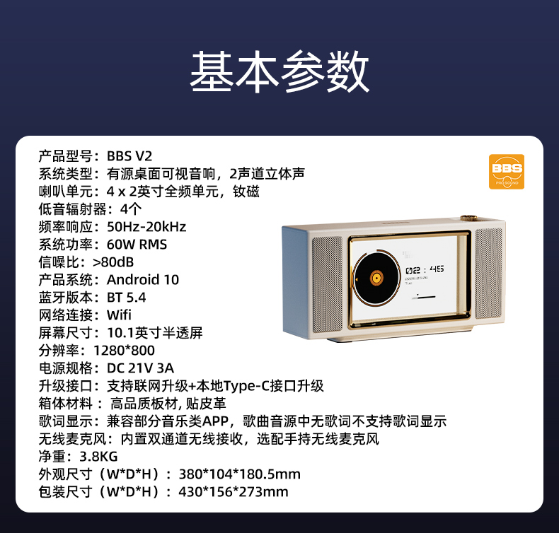 BBS V2透明悬浮歌词音响带字幕蓝牙复古家用带歌词动态相册音响