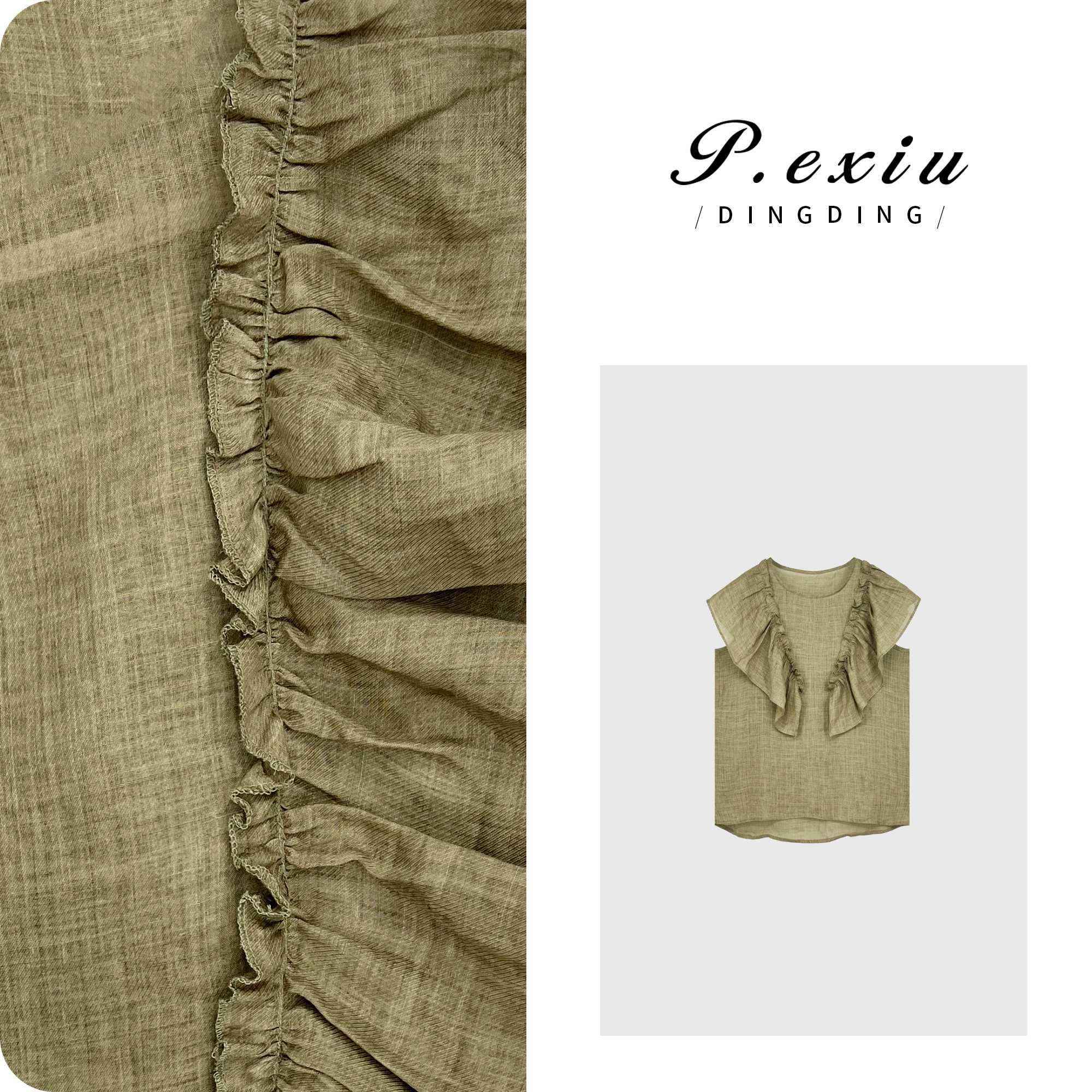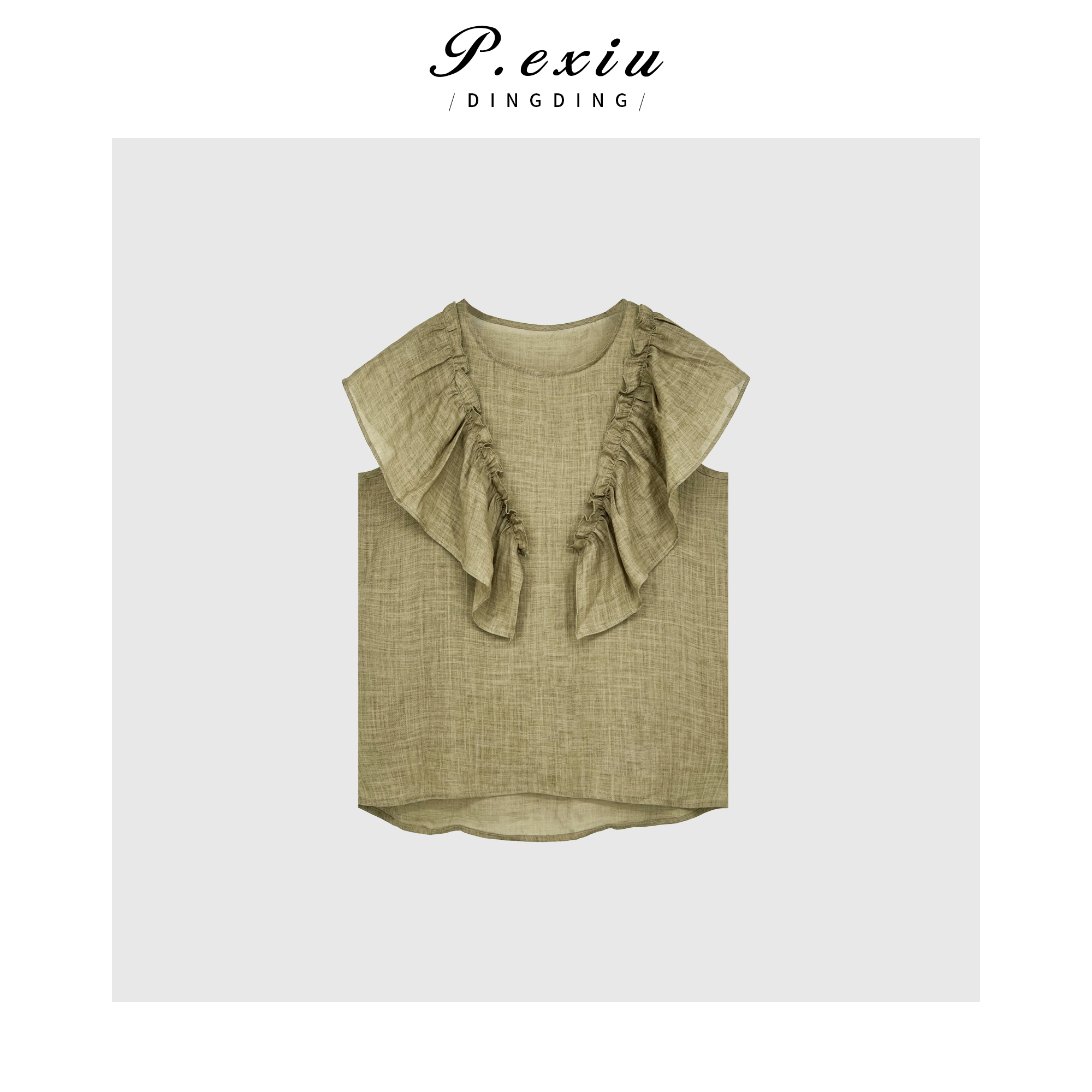 A007潘依绣丁丁宠粉PanYiXiu/潘依绣【乳酪贝果】100%苎麻法式荷叶边圆领衬衫 20770T