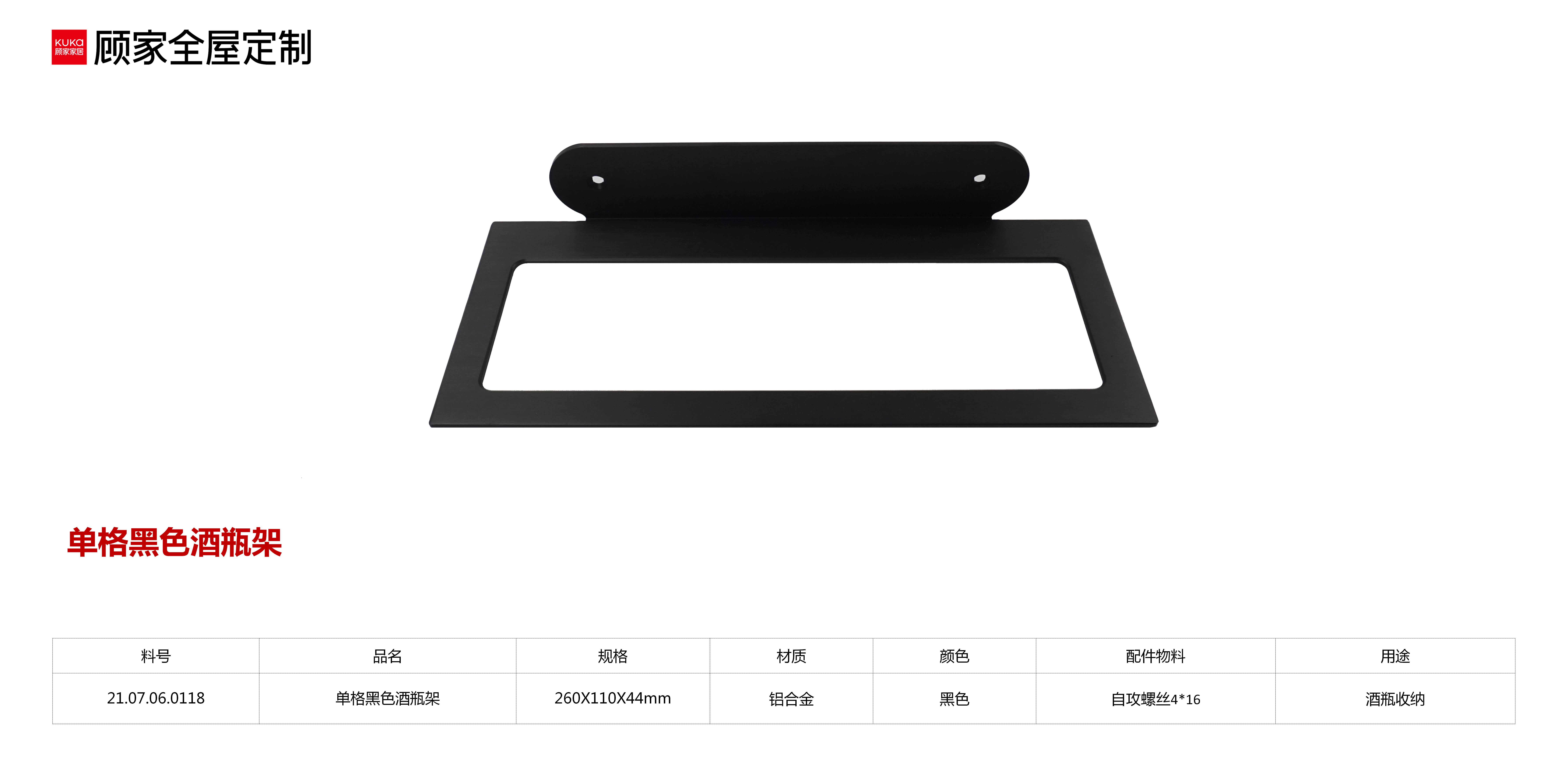 1-衣柜收纳五金-酒杯架、酒瓶架-5-单格黑色酒瓶架