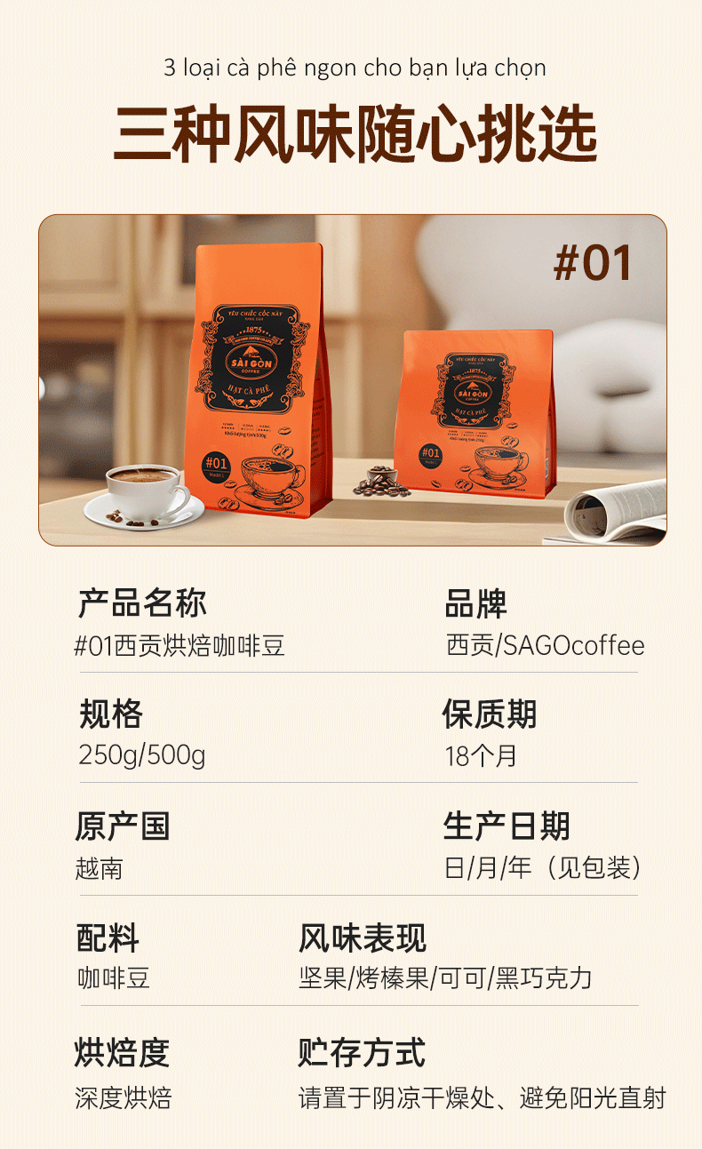 西贡焙炒咖啡豆250g滴漏咖啡豆