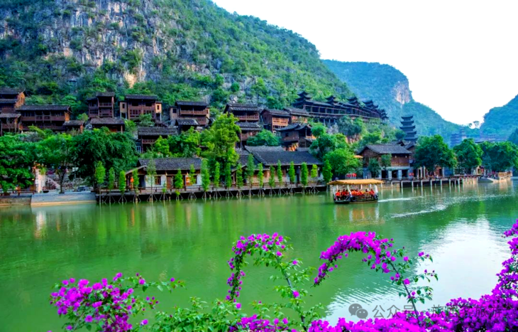 万峰湖湖面开阔,波光粼粼,周边群峰环绕,青山倒映在澄澈的湖水中,湖光山色相互映衬,构成如诗如画的景致。乘船游于湖上,微风拂面,还能近距离感受这份宁静与壮美 。