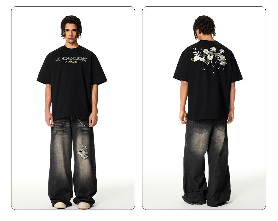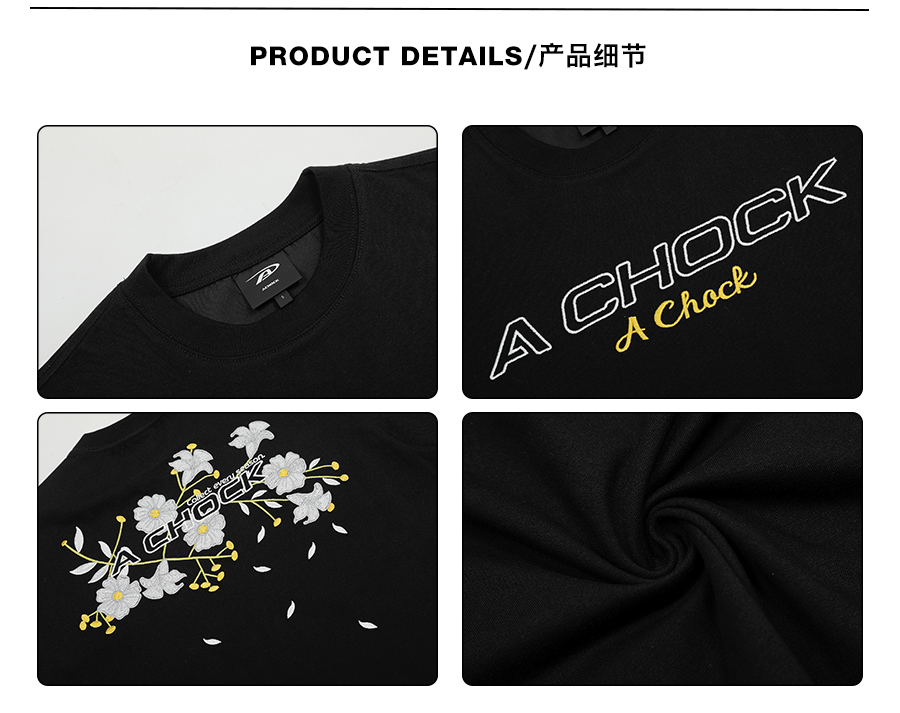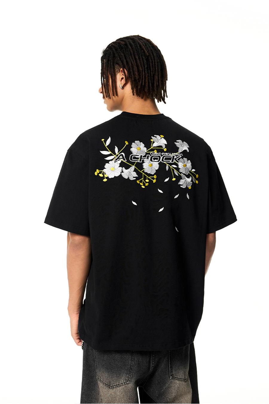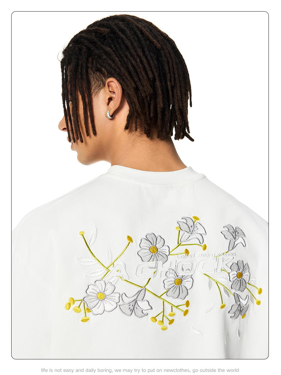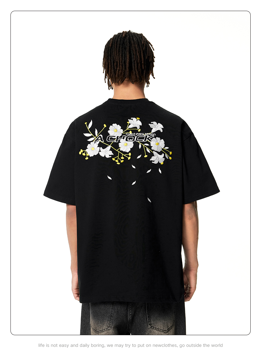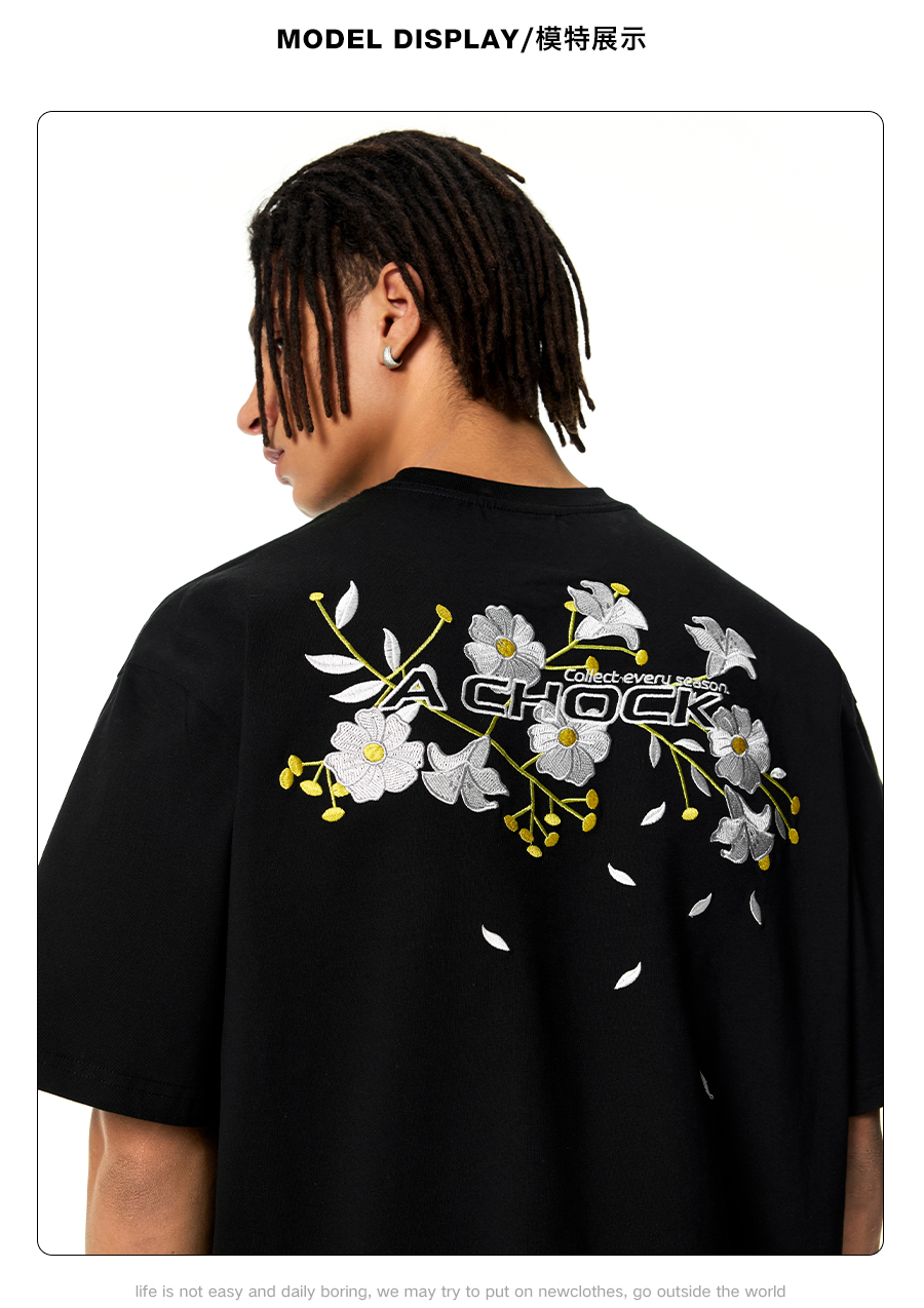 【Achock官方店】刺绣短袖T恤男女新款潮牌中国风花卉上衣情侣装