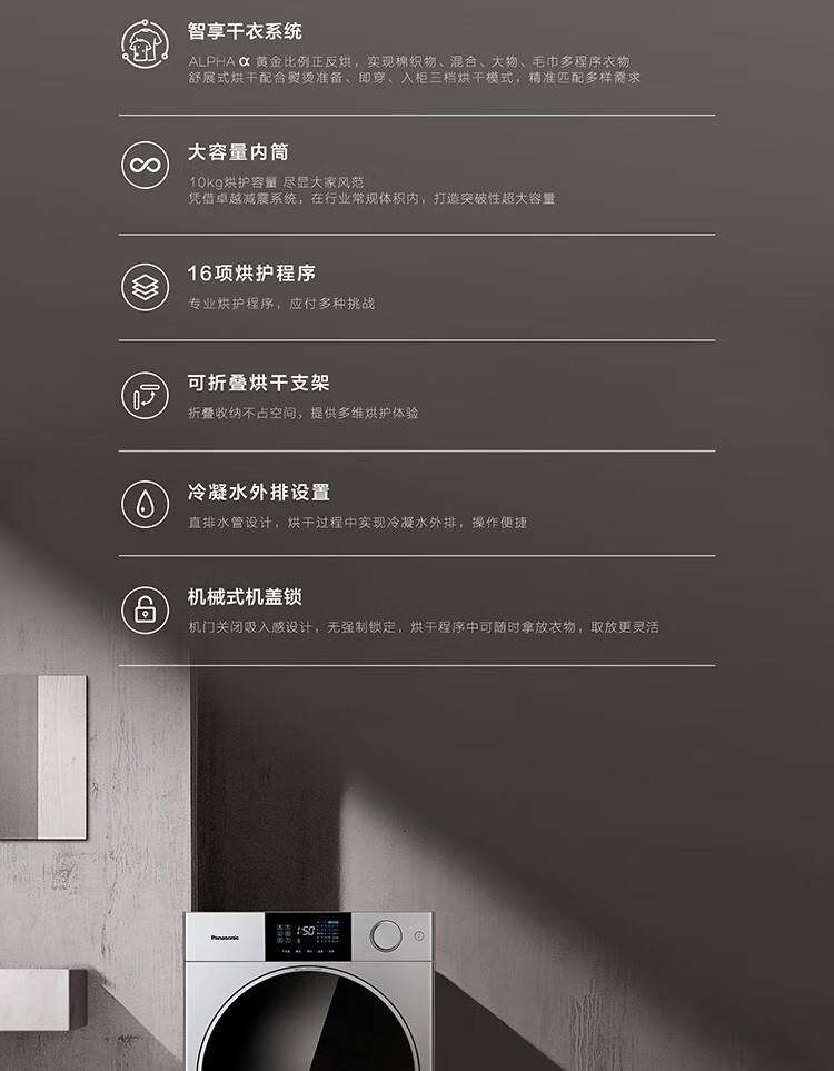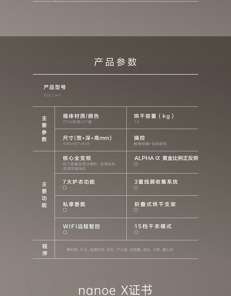 松下(Panasonic)FDC-H1高端奢护纳诺怡热泵烘护10公斤大容量烘干机纳诺怡除菌除皱一键智护 FDC-H1