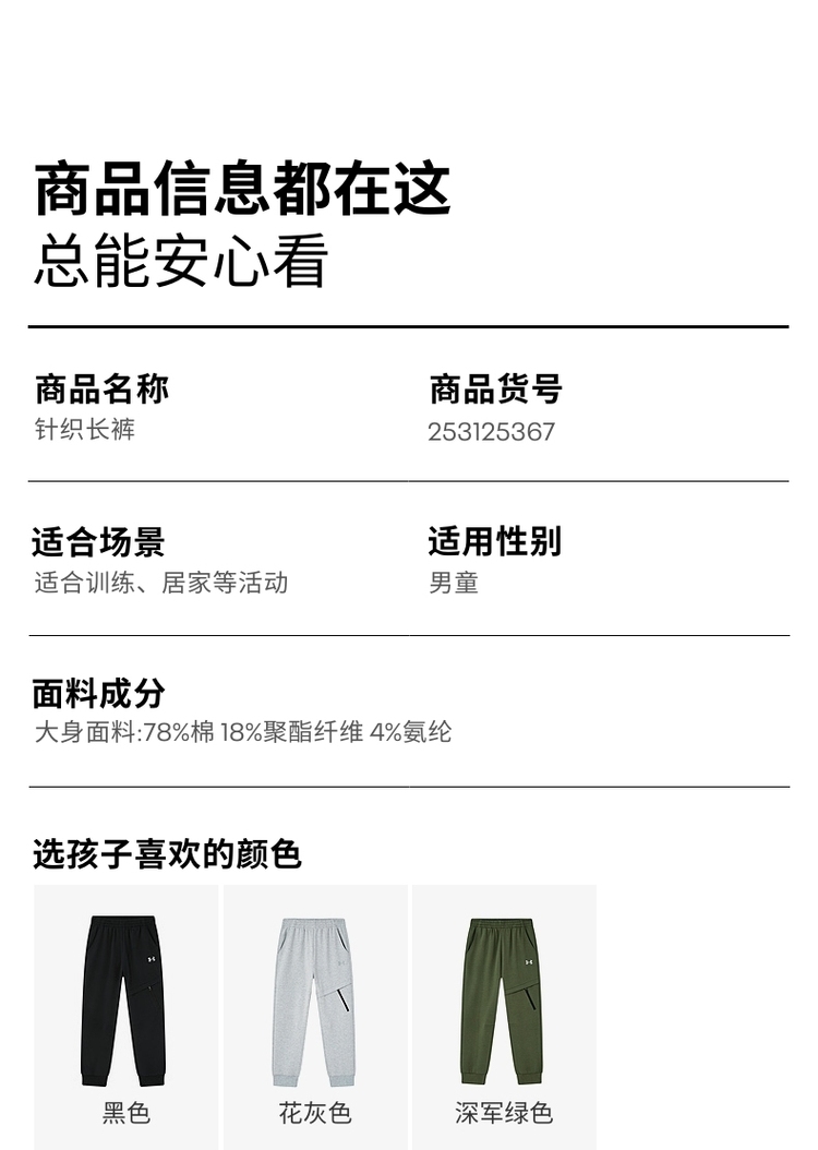 【12月-特惠福利】UnderArmour安德玛儿童25新款轻奢运动针织长裤253125367