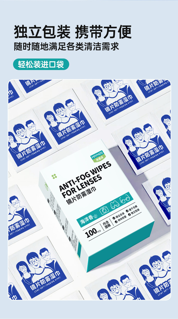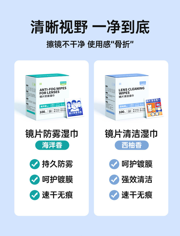 ✅独立包装便携卫生 🔻1盒100片 有海洋香与西柚香两种香型 🔻海洋香:持久防雾 🔻西柚香:快速清洁 每一片均是独立包装 出门包里带几片 眼镜党也能放心吃火锅