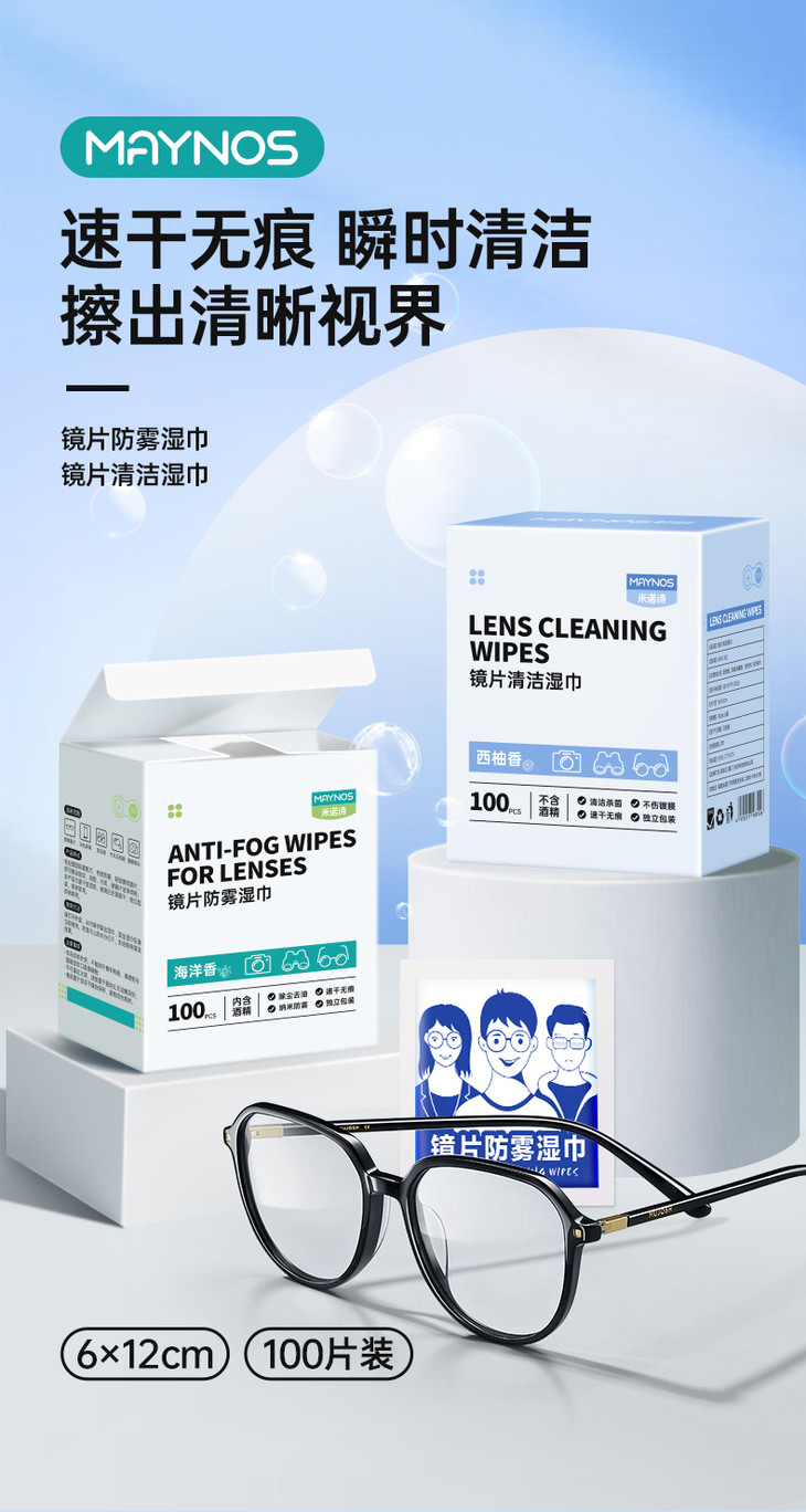 //【MAYNOS镜片防雾清洁湿巾】秋冬戴眼镜的朋友,都去囤!!全新升级西柚+海洋香,防雾➕清洁➕消毒❗️轻轻一擦清晰透明,3秒速干彻底告别模糊视界~