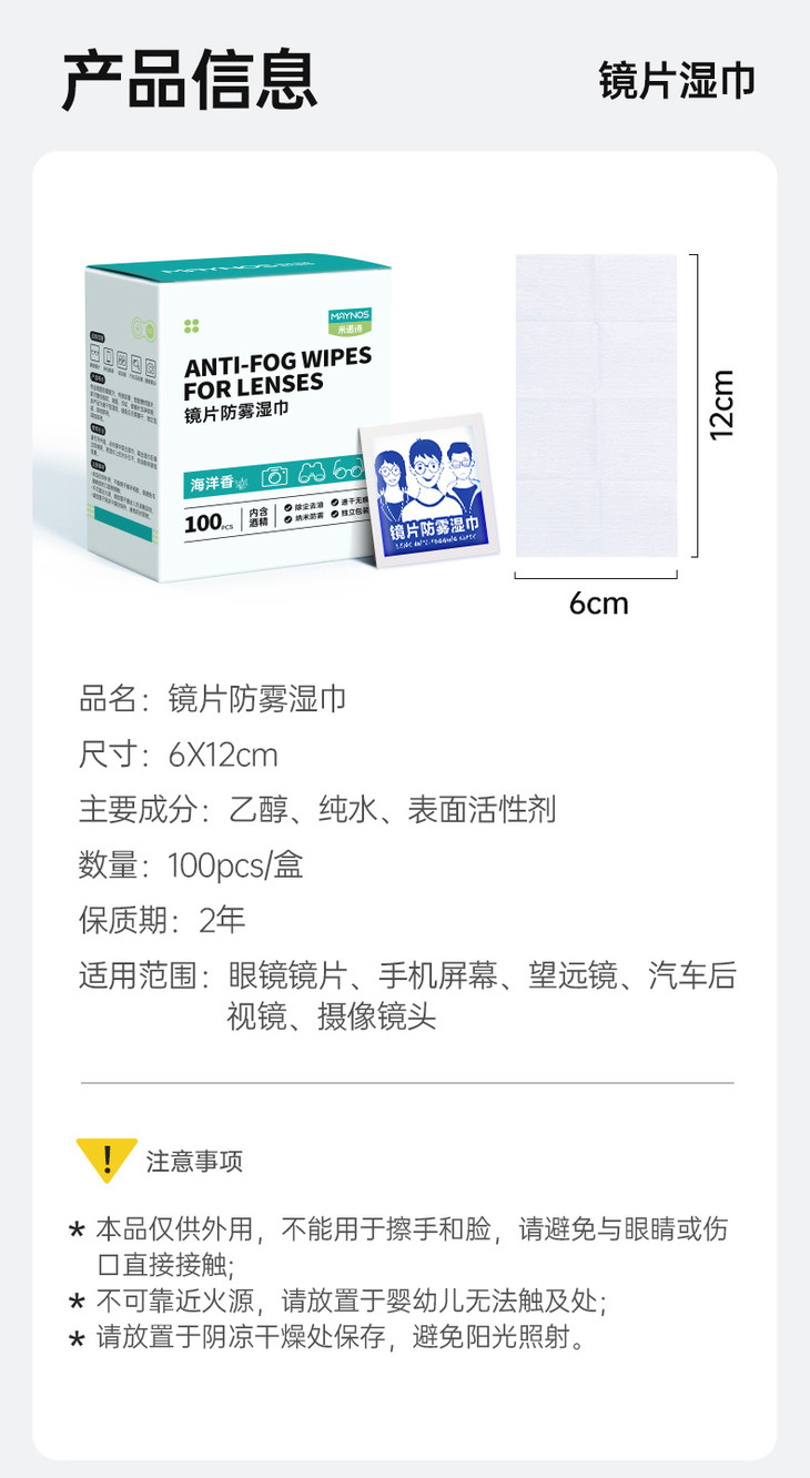 【品名】MAYNOS镜片清洁/防雾湿巾