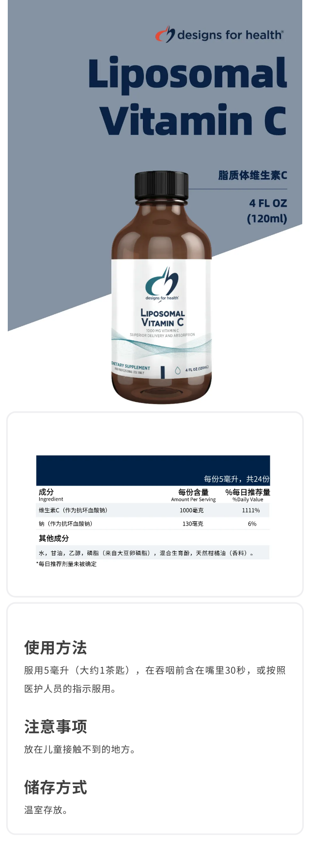 海淘 健康设计 脂质体C Liposomal Vitamin C 120ml/瓶 09/25