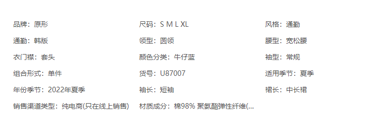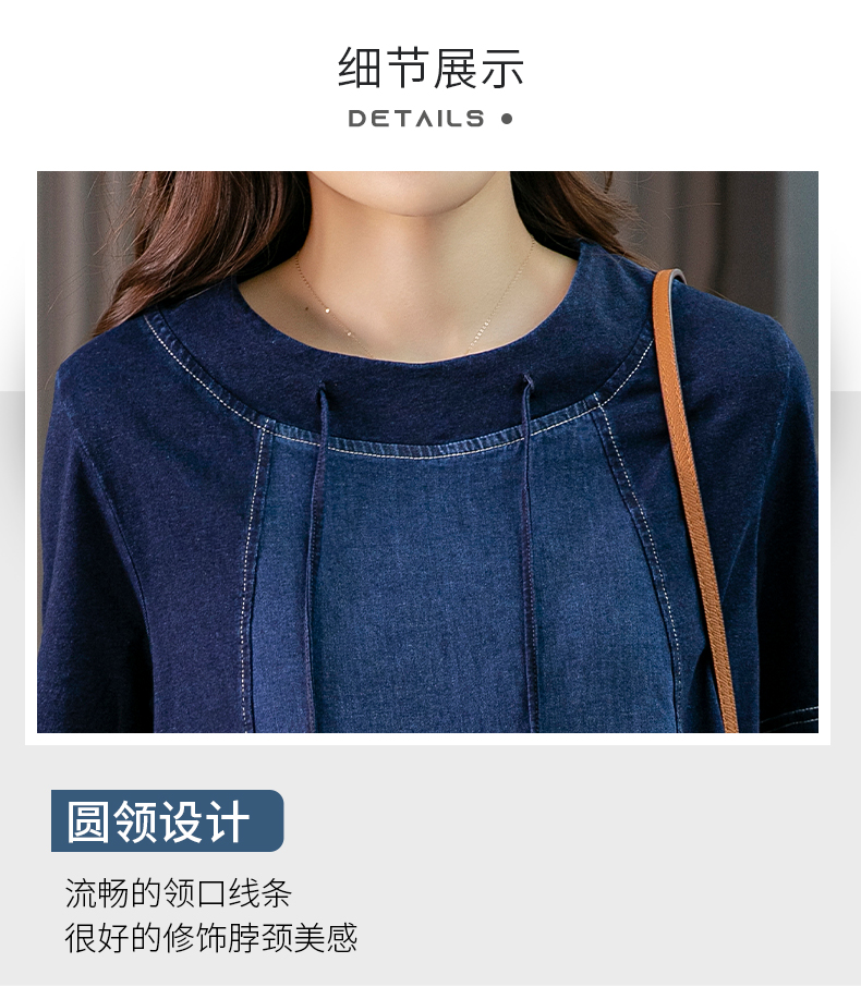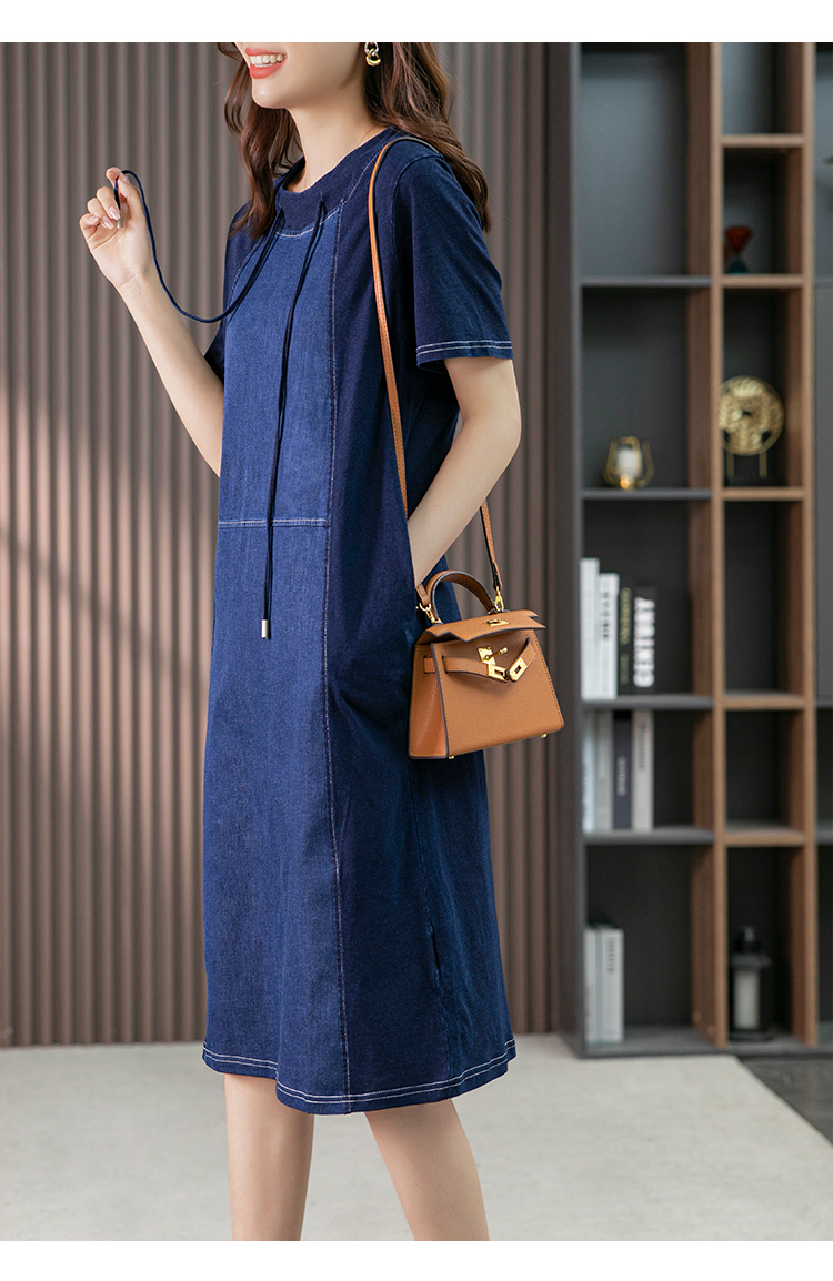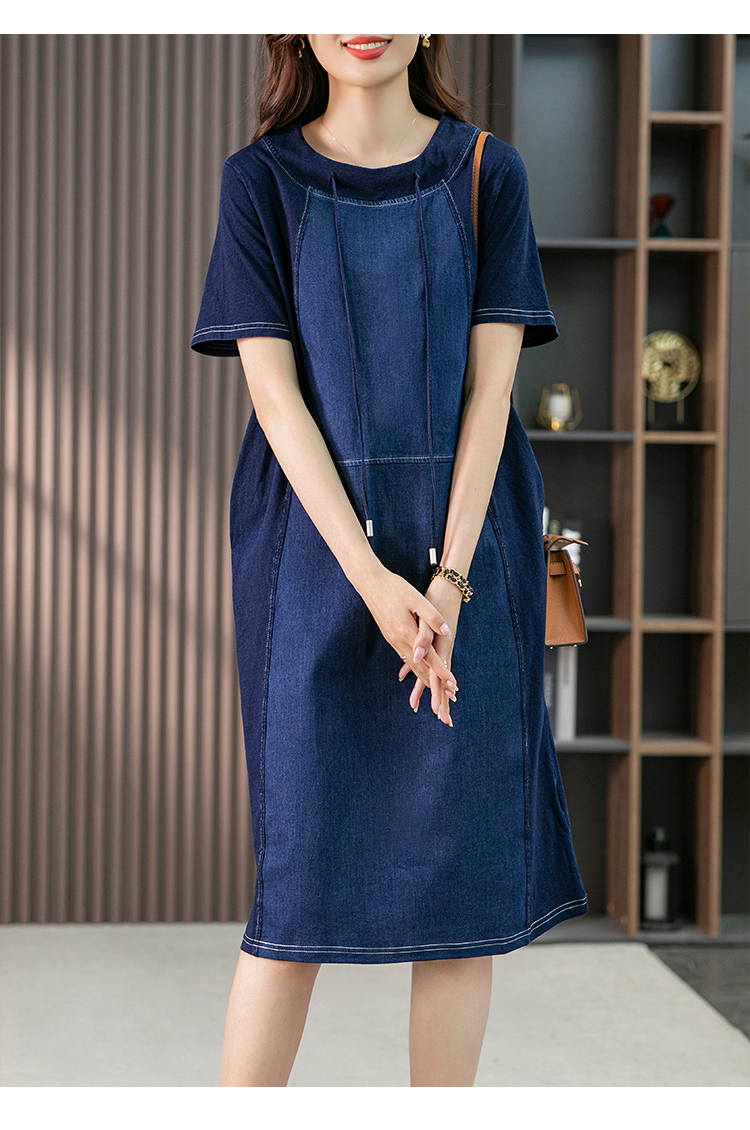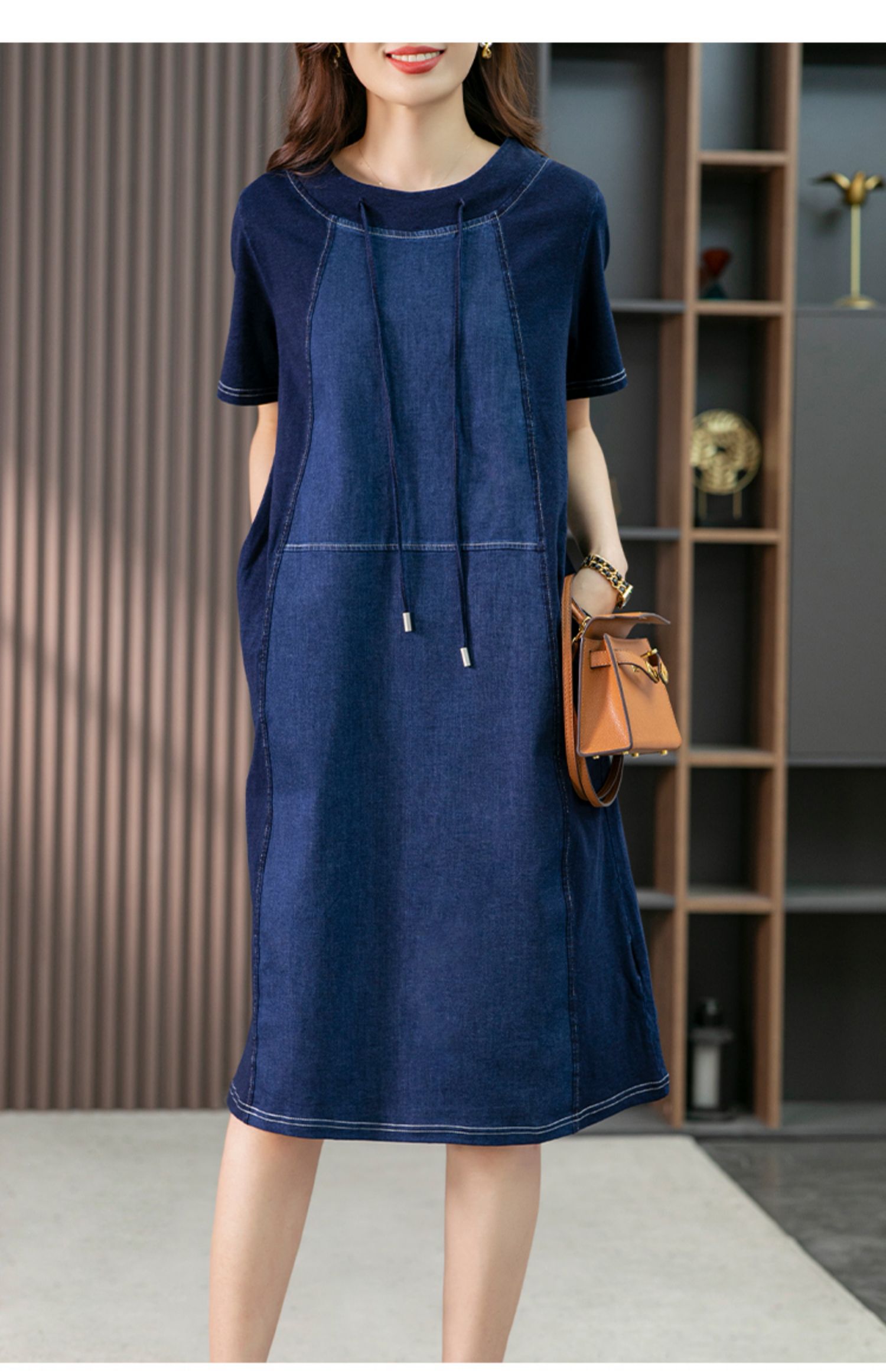 YX【现货7天】气质拼接牛仔连衣裙女中长款2023夏季新款韩版宽松休闲直筒裙