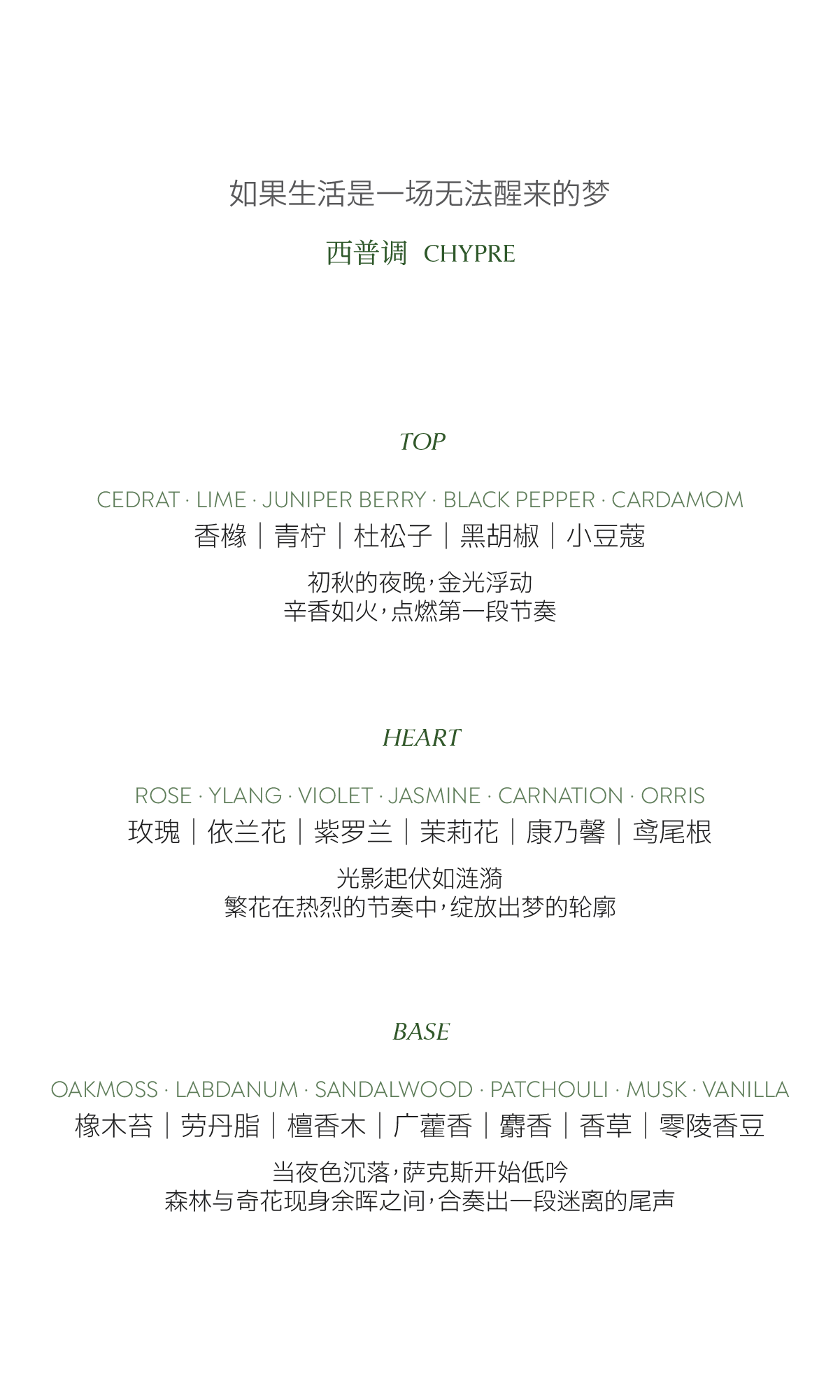 「银杉」黄金时刻香水(第四季)现代香材演绎古典西普 30ML