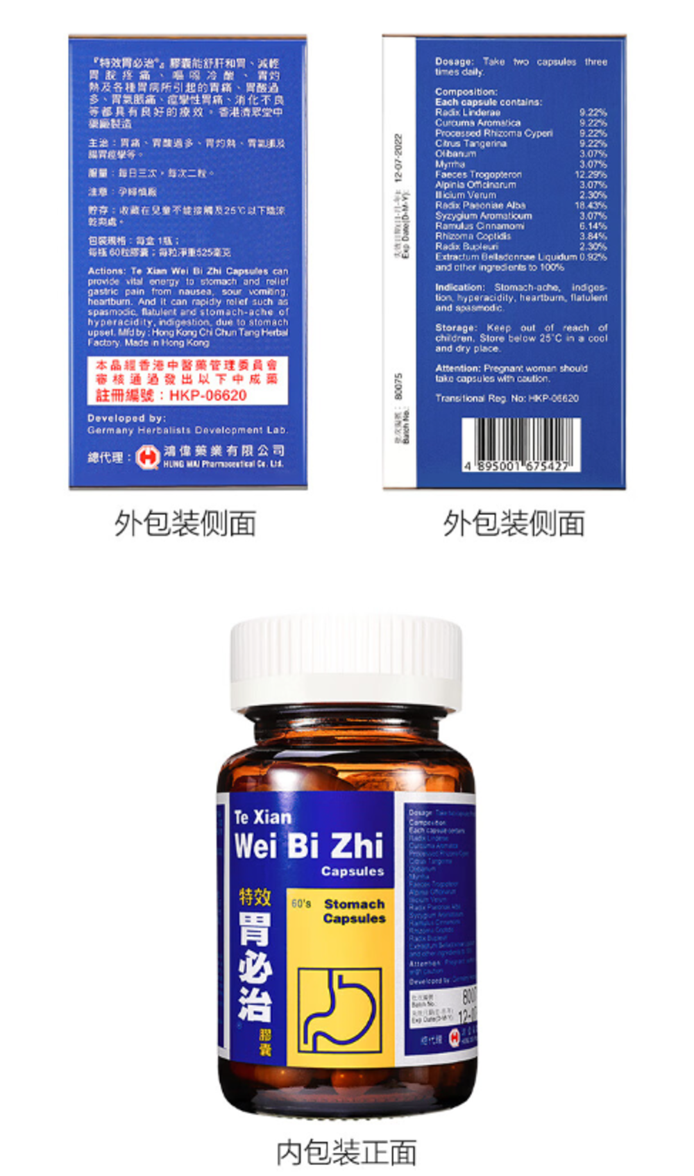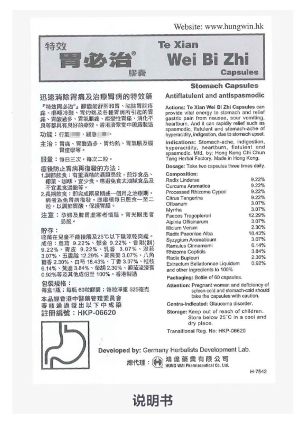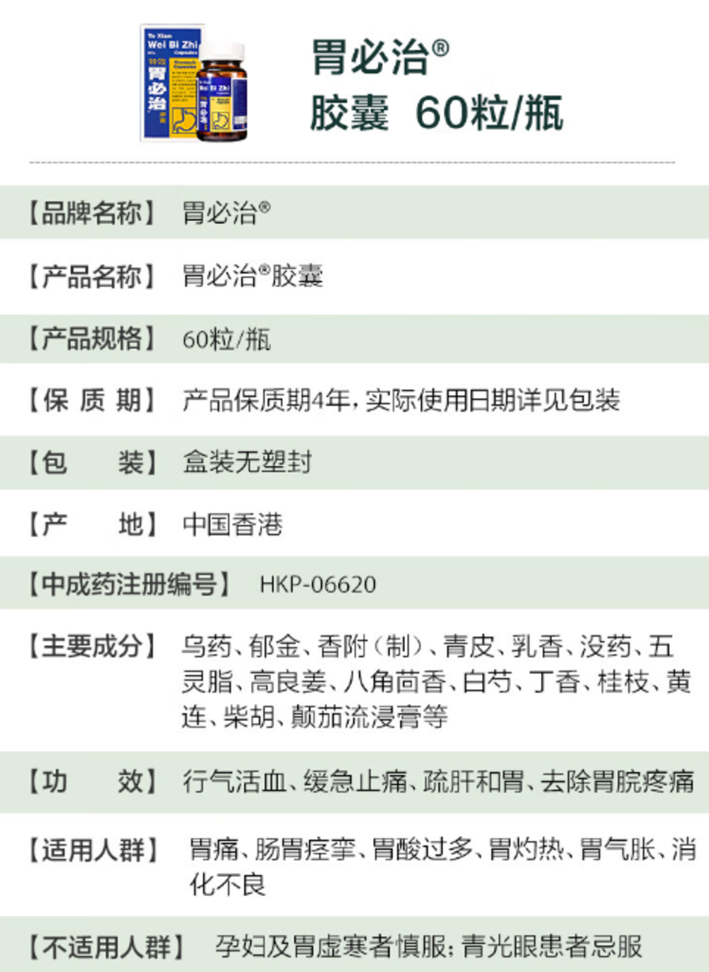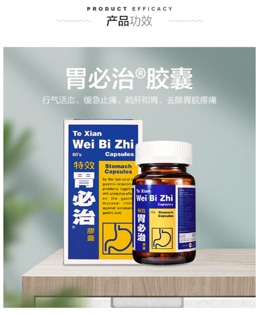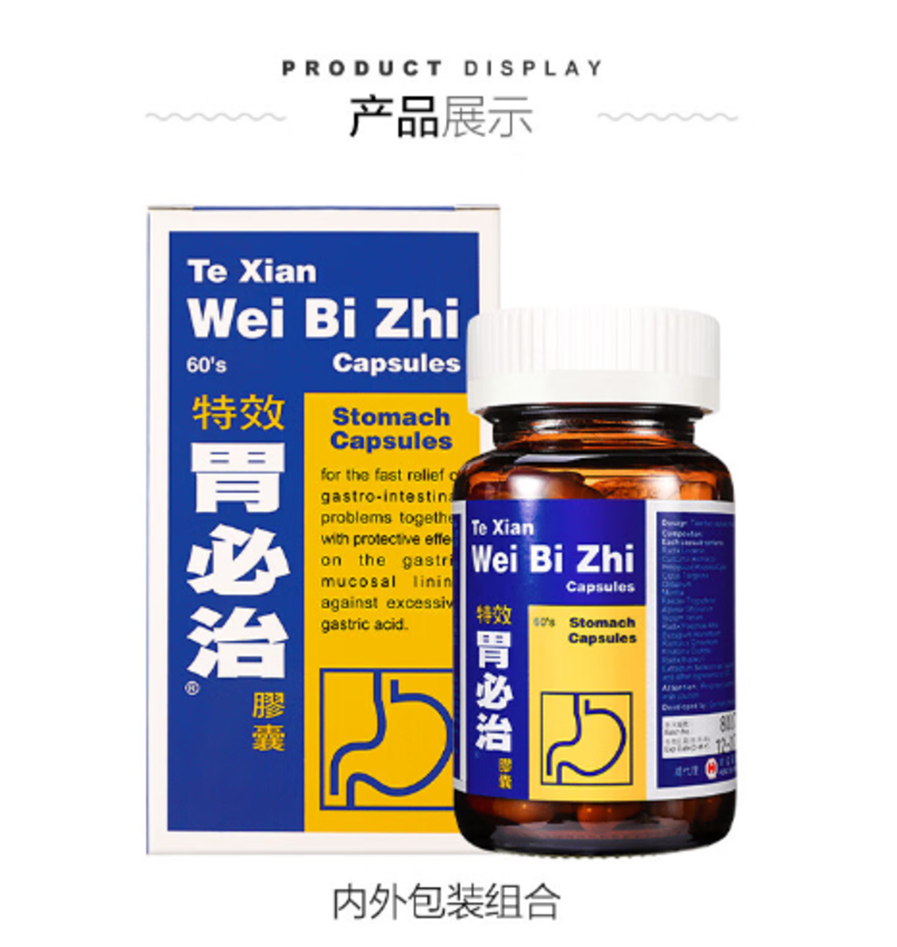 【香港直邮】水肚不服肚泻腹泻 正品鸿伟 特效胃必治胶囊(60粒装)