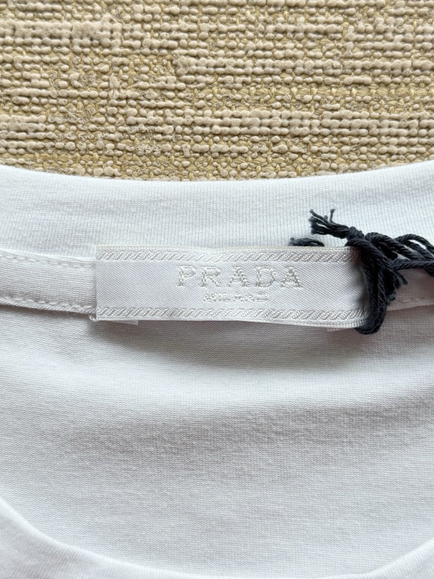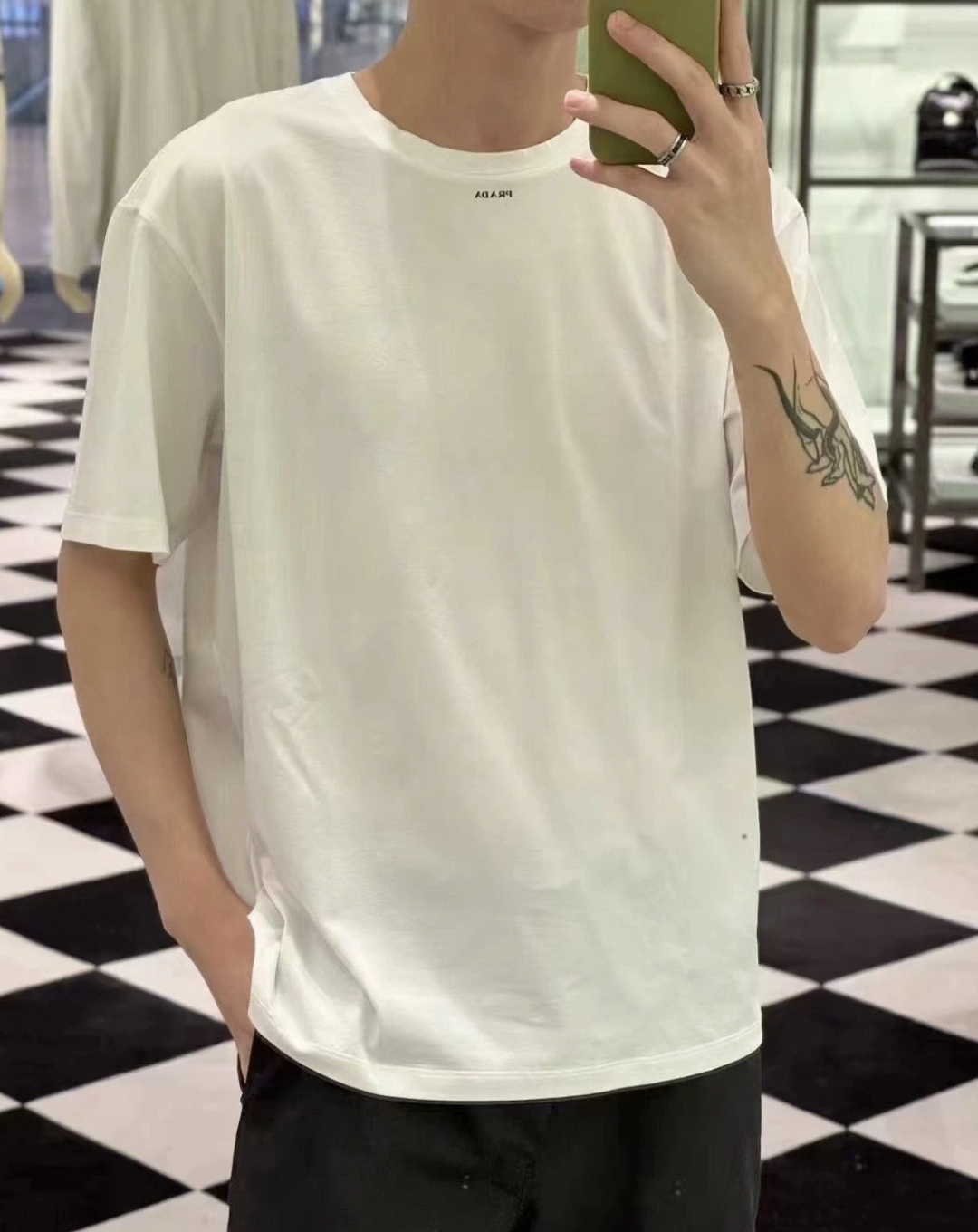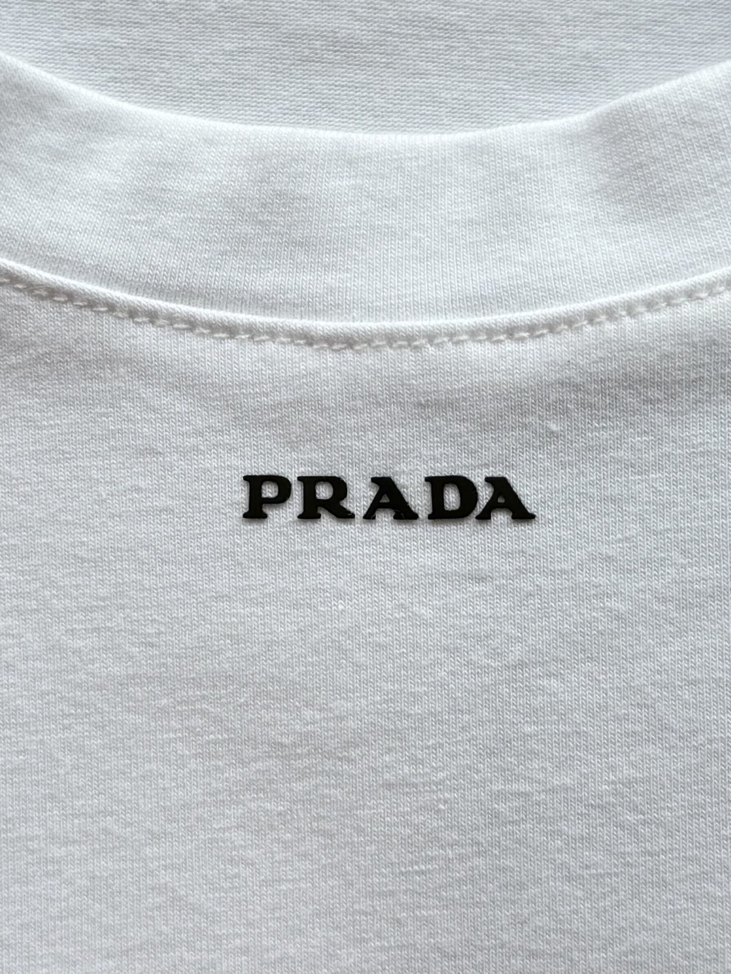 PRADA纯色logo字母印花短袖T恤‼️整件衣服7600购买ZP拆解打造,定制黑色弹力棉面料,做到100%全棉进口纱线,定制标志性罗纹领口,前幅饰以撞色硅胶字母logo设计,袖口 下摆双层锁边高密度走线,真正做到1:1copy 闭眼入 码数:S M L XL