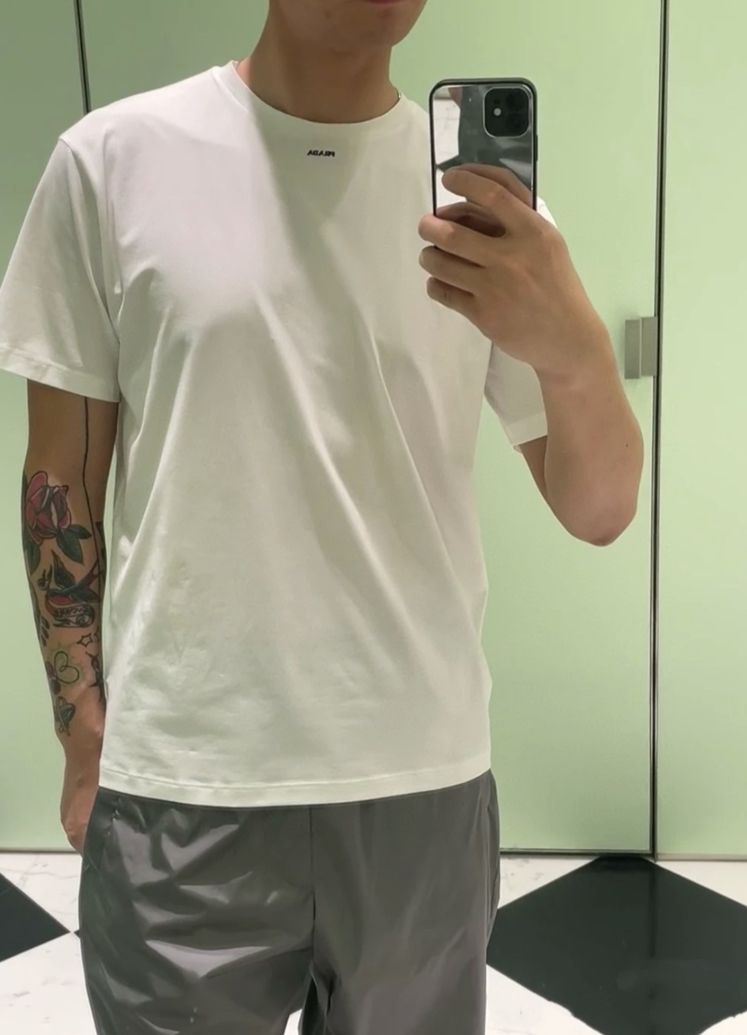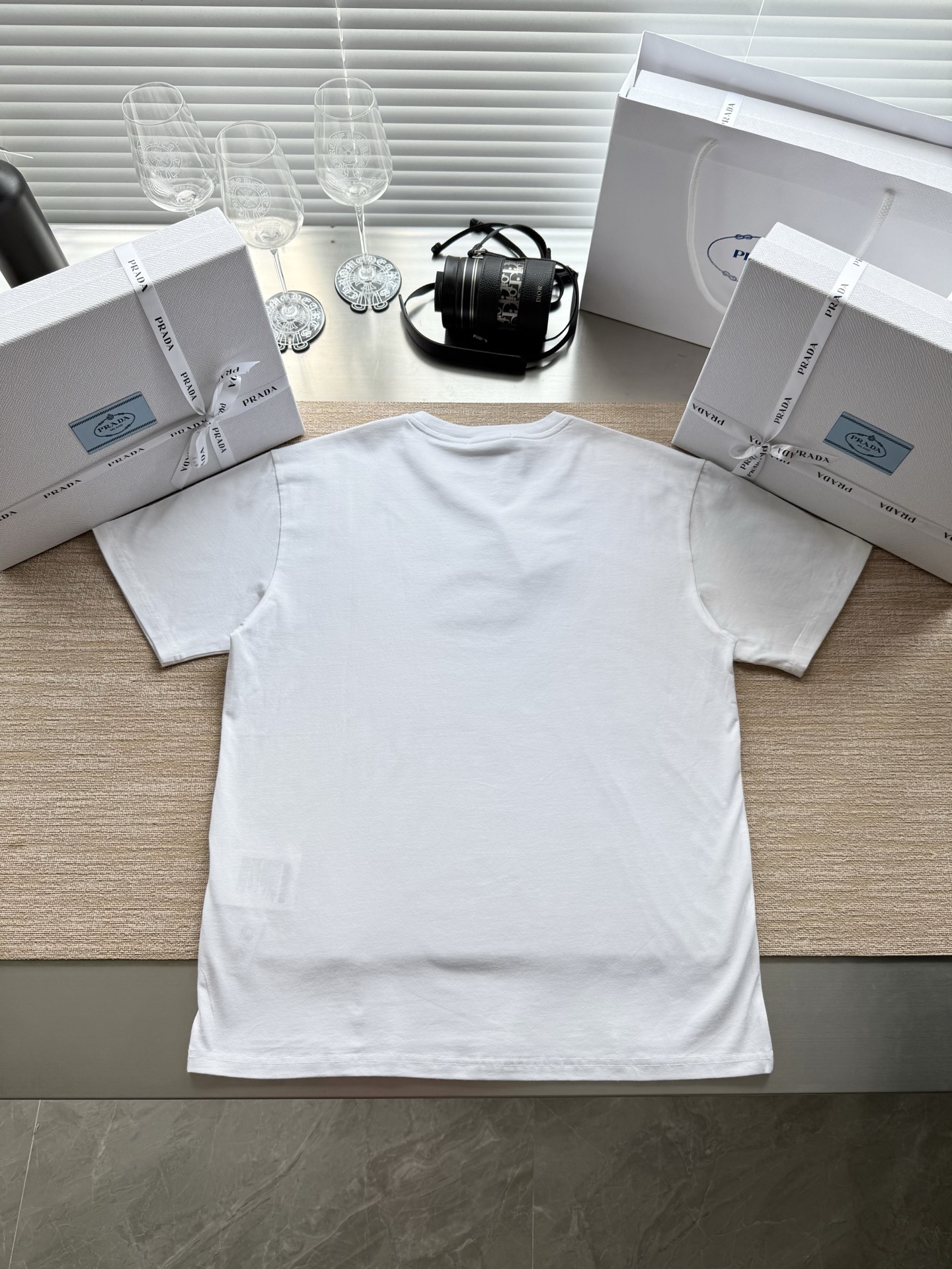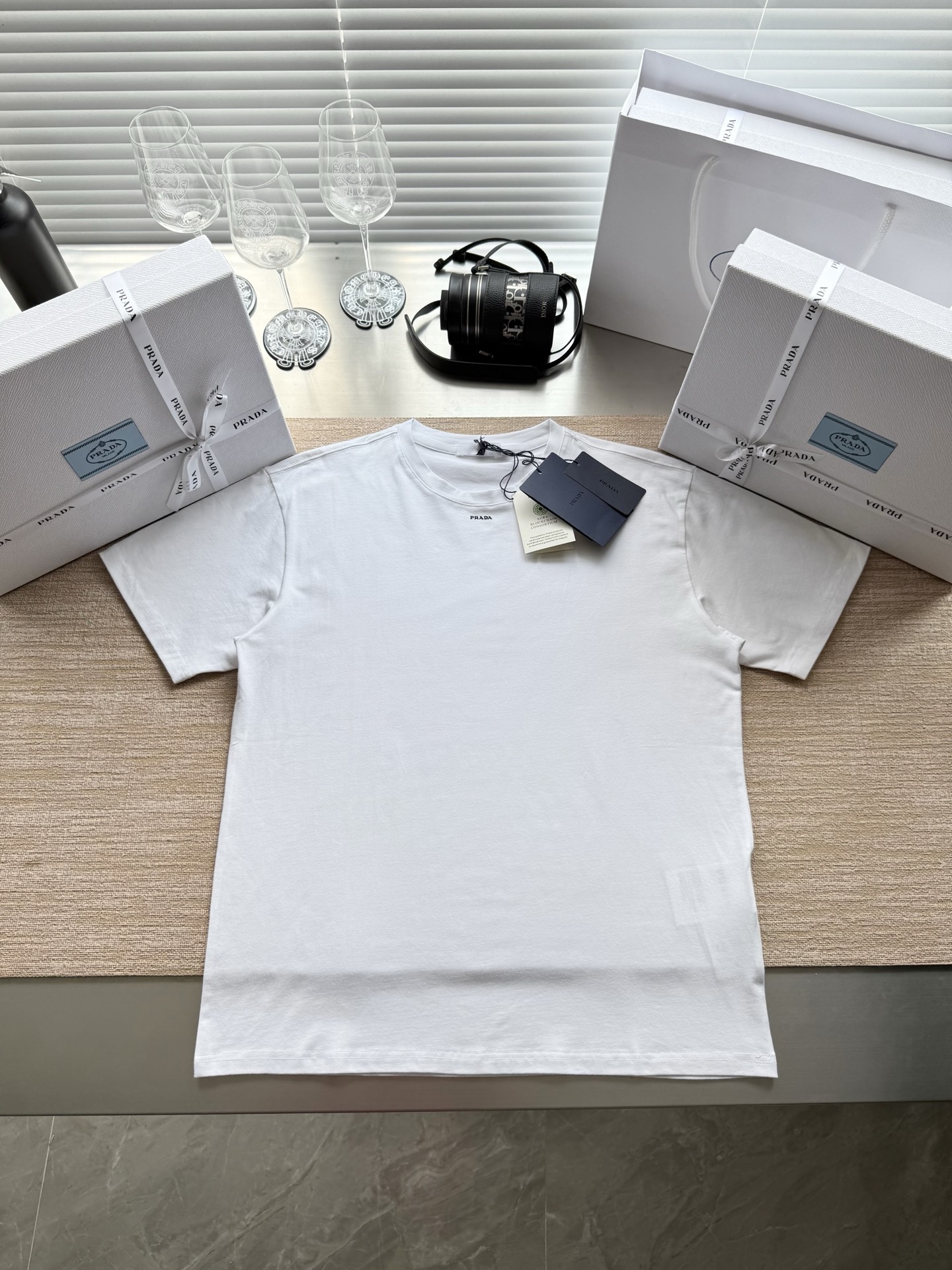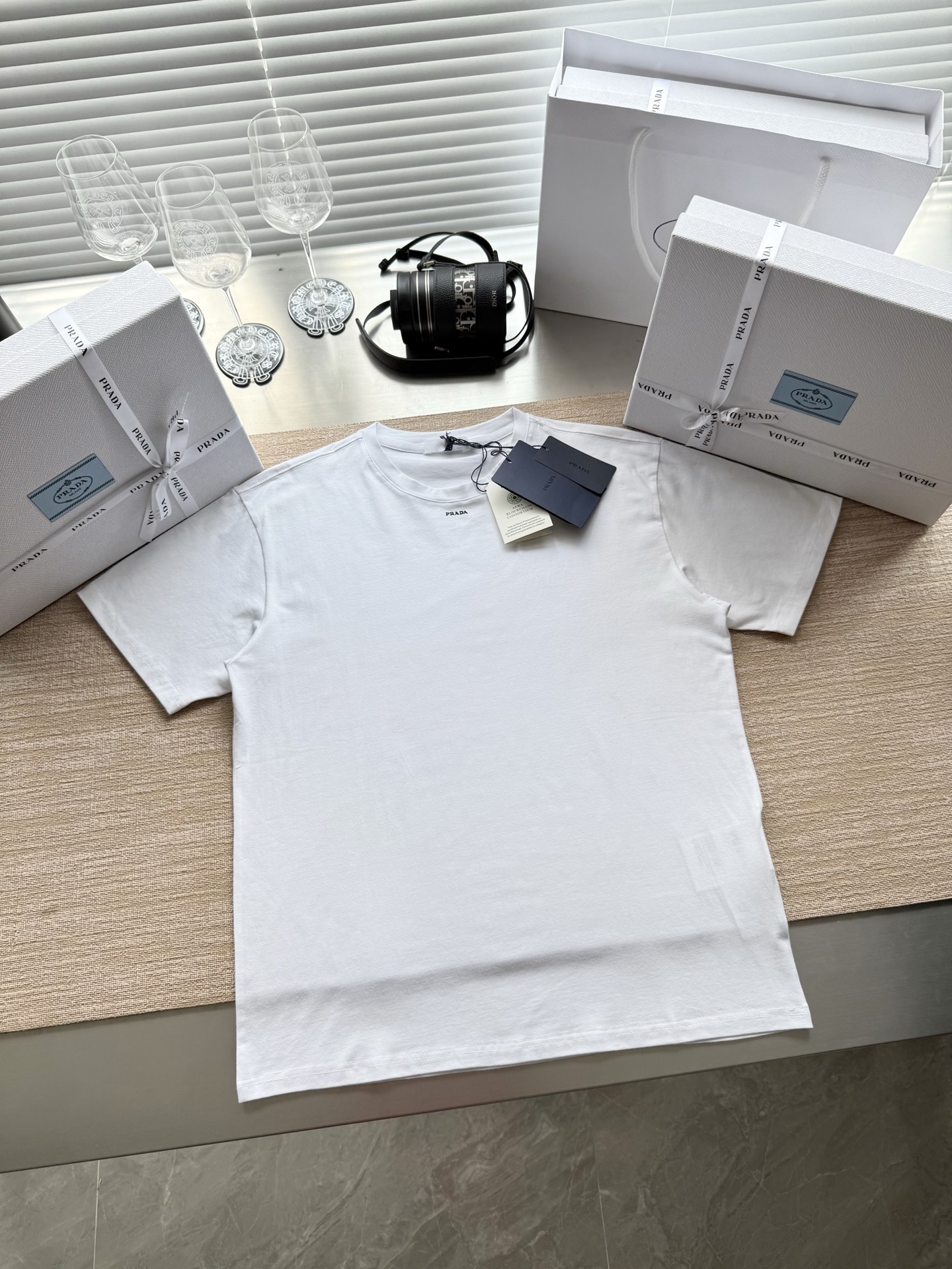 PRADA纯色logo字母印花短袖T恤‼️整件衣服7600购买ZP拆解打造,定制黑色弹力棉面料,做到100%全棉进口纱线,定制标志性罗纹领口,前幅饰以撞色硅胶字母logo设计,袖口 下摆双层锁边高密度走线,真正做到1:1copy 闭眼入 码数:S M L XL