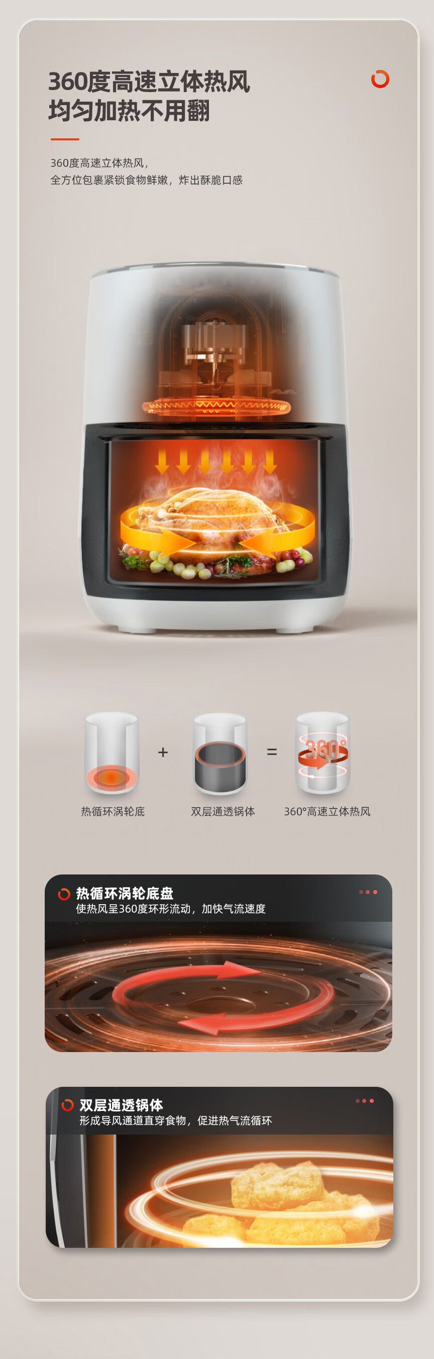 松下(Panasonic)多功能家用不用翻面健康低脂双屏显示 4L大容量 空气炸锅NF-HC100-W