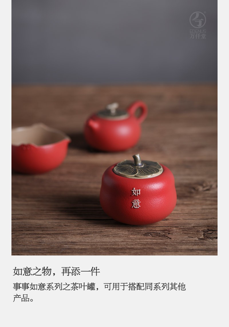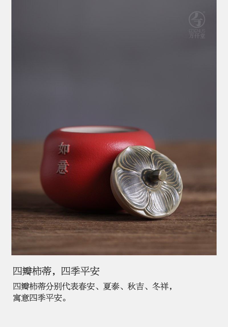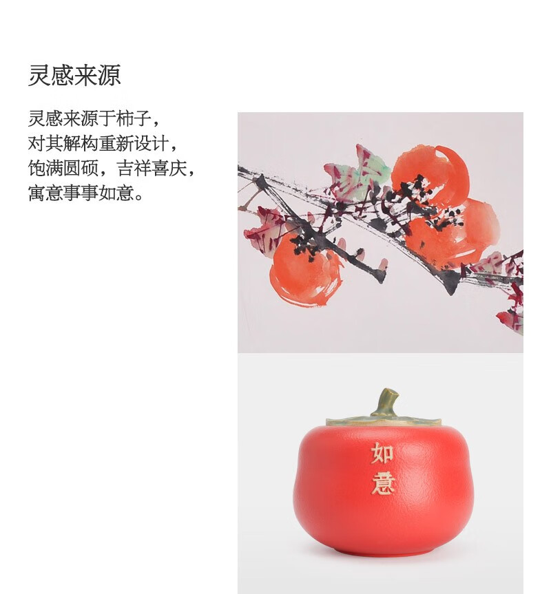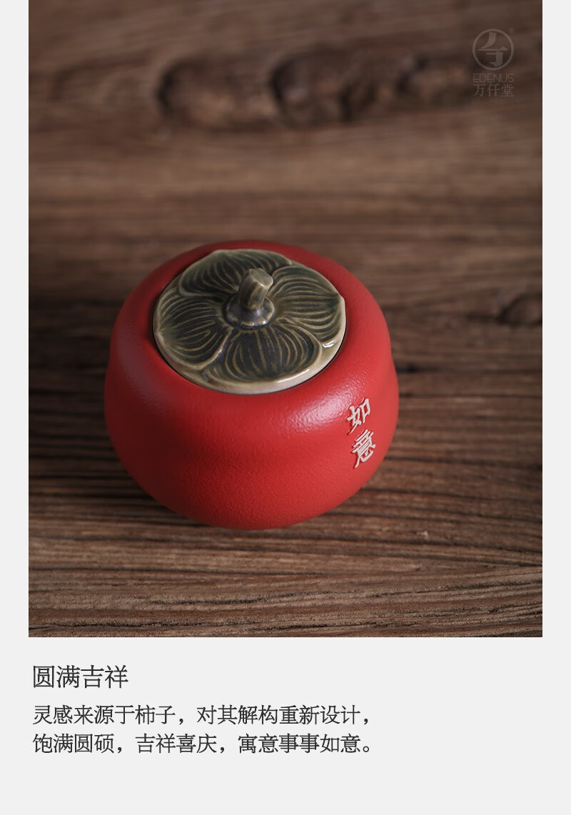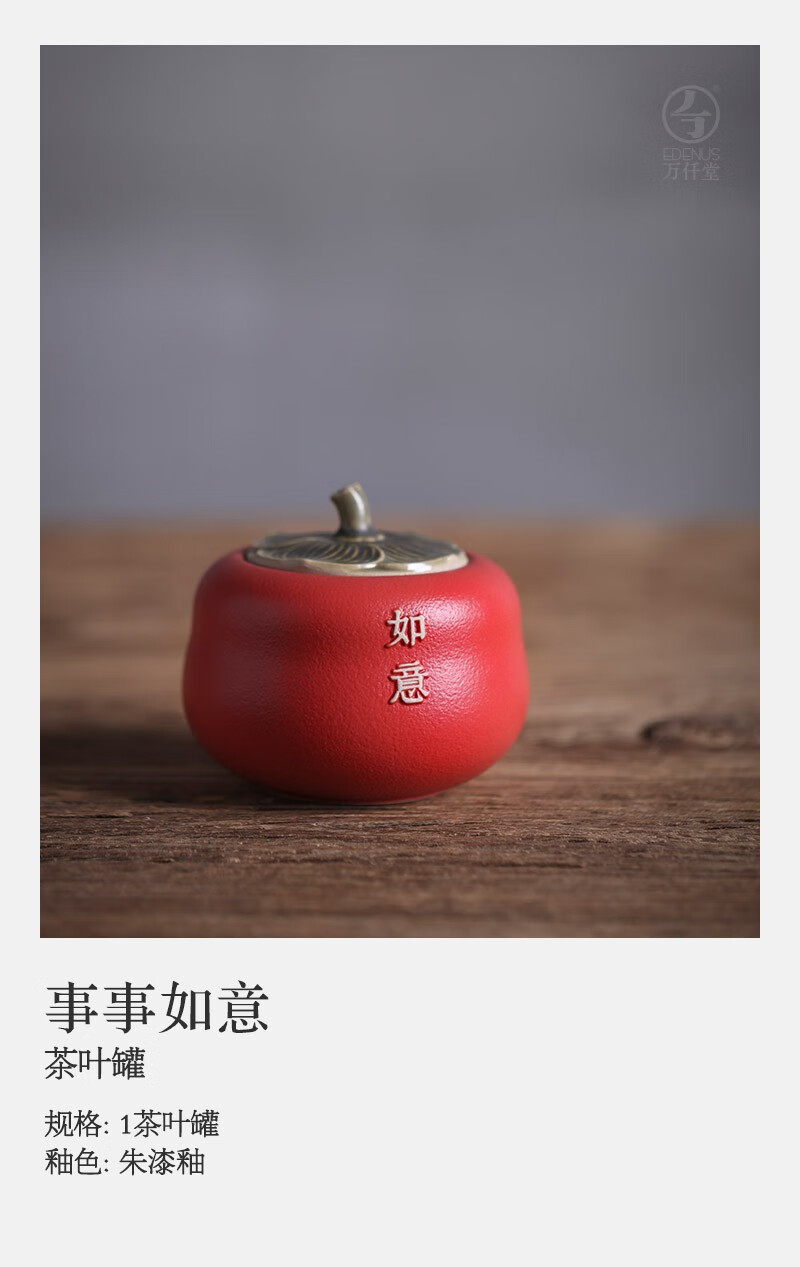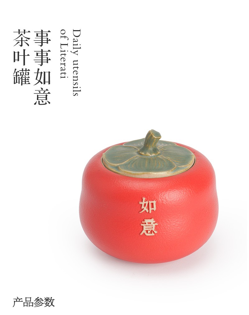 万仟堂茶叶罐水果茶具陶瓷 密封罐茶叶盒 柿柿如意 茶具配件 事事如意 A