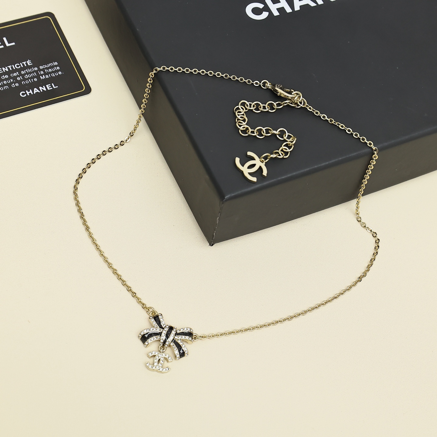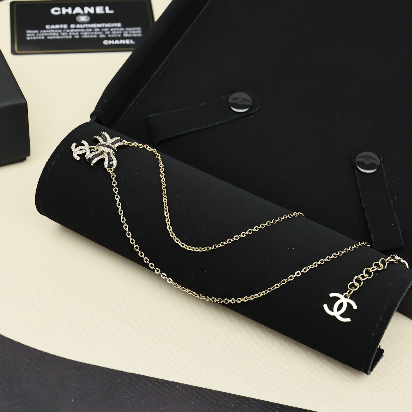 𝑪𝒉𝒂𝒏𝒆𝒍 25B黑金幻彩珐琅蝴蝶结双C项链