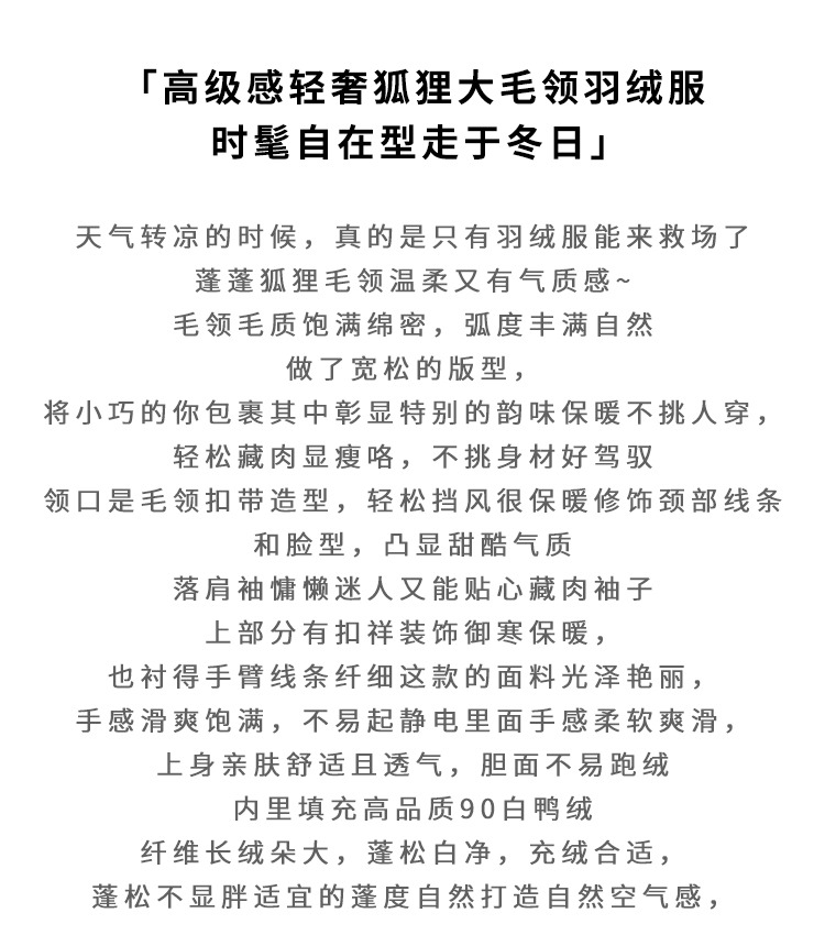 原形高级感轻奢狐狸大毛领羽绒服2023冬季新款收腰显瘦冬装外套