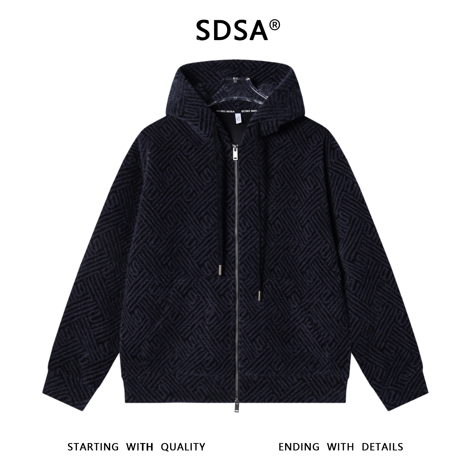 WT246SDSA男士秋冬新款痞帅男装重磅绒毛提花开衫拉链抽绳连帽卫衣百搭