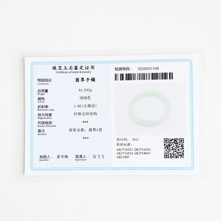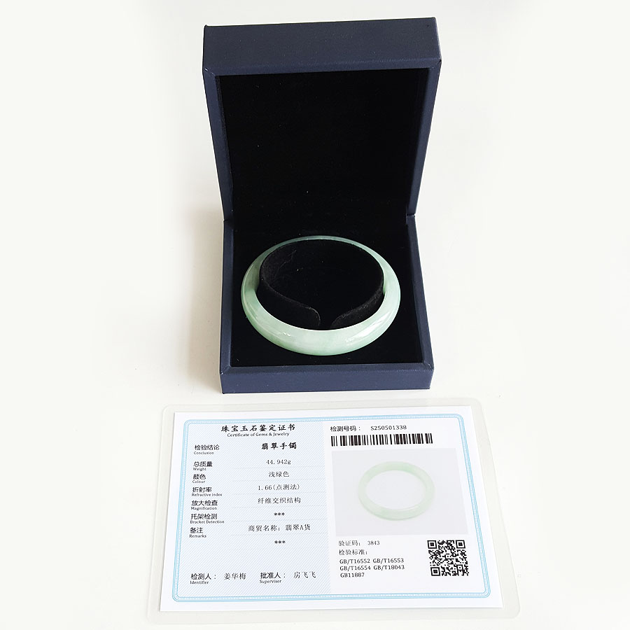 名称 | 天然糯种浅绿底57号翡翠手镯 |