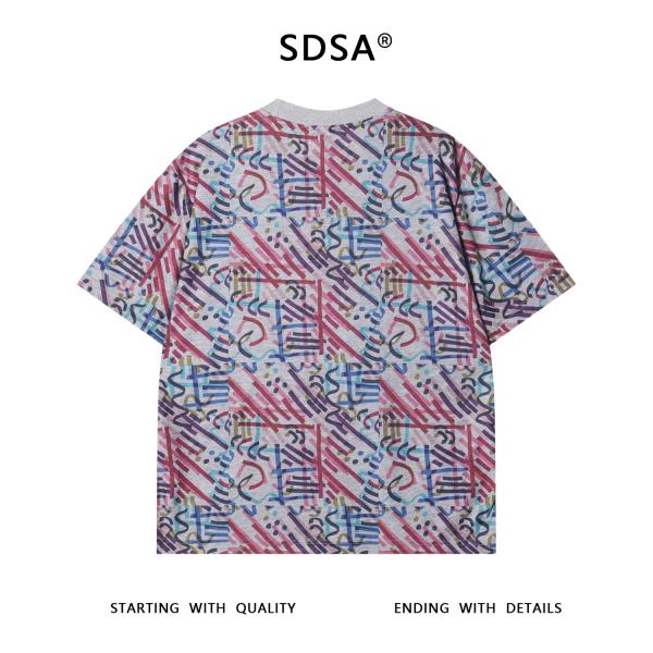 T3551夏季高级感新款男士多彩涂鸦线条设计短袖T恤小众百搭圆领上衣