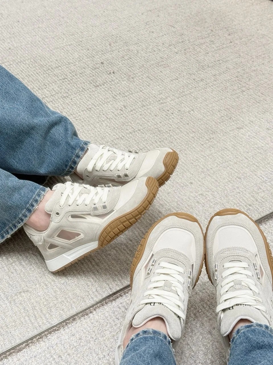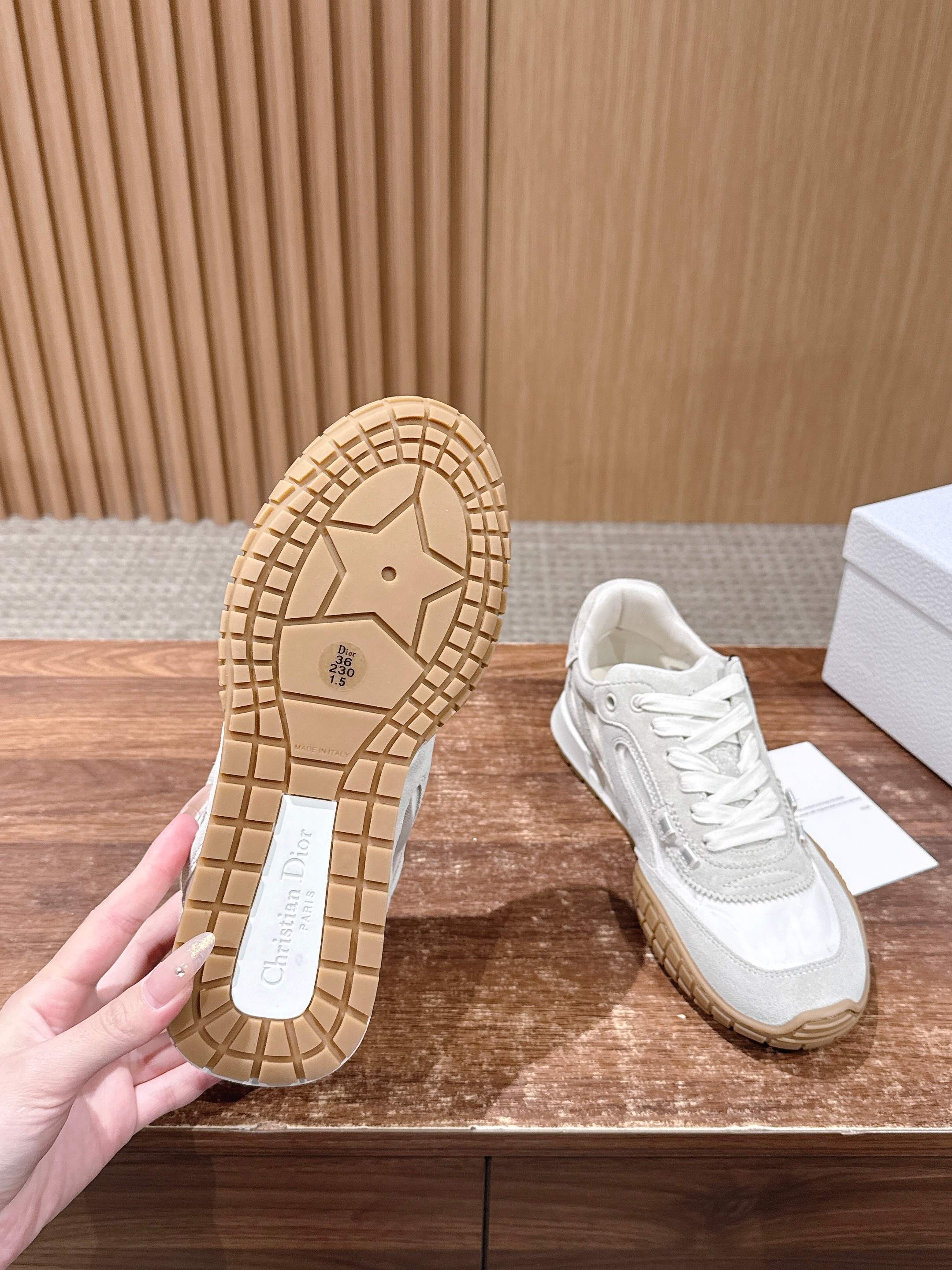DIOR Tech 迪奥 新款镂空网纱透气 运动休闲鞋‼ Tech全新上线,精美配色,秋冬氛围款~这款 运动鞋是二零二六早春成衣系列新品,搭配时尚细节,彰显复古美学。牛皮革和绒面牛皮革鞋面,搭配透明网眼织物侧面拼接,后跟和鞋舌点缀以 ChristianDior Paris 标志。富有纹理的同色调 Dior 标志鞋底增添高订风范。 帮面材质:织物,牛剖层革,牛皮革后跟和鞋舌饰以 Christian Dior Paris 标志 富有纹理的 Dior 标志橡胶鞋底饰以 Christian Dior 的幸运星符号! 尺码:35/36/37/38/39/40(40不退换)