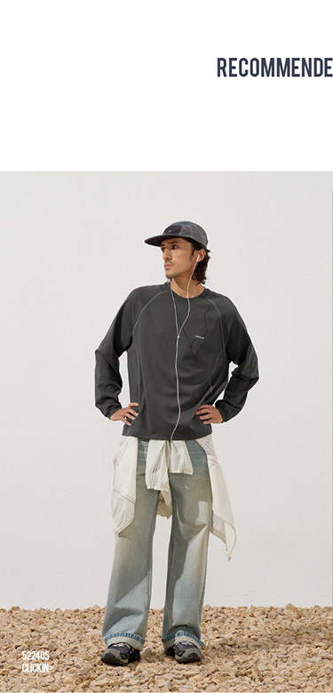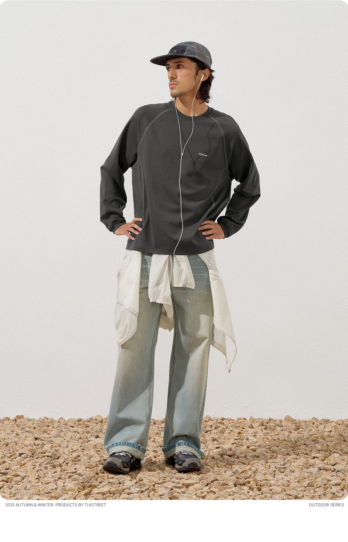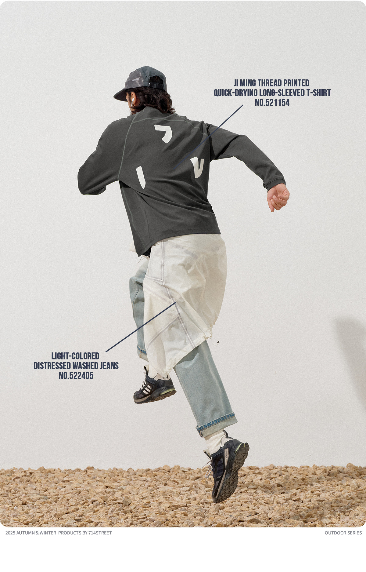 714street水洗纯棉宽松休闲裤男2025秋季新款弯刀裤cleanfit长裤