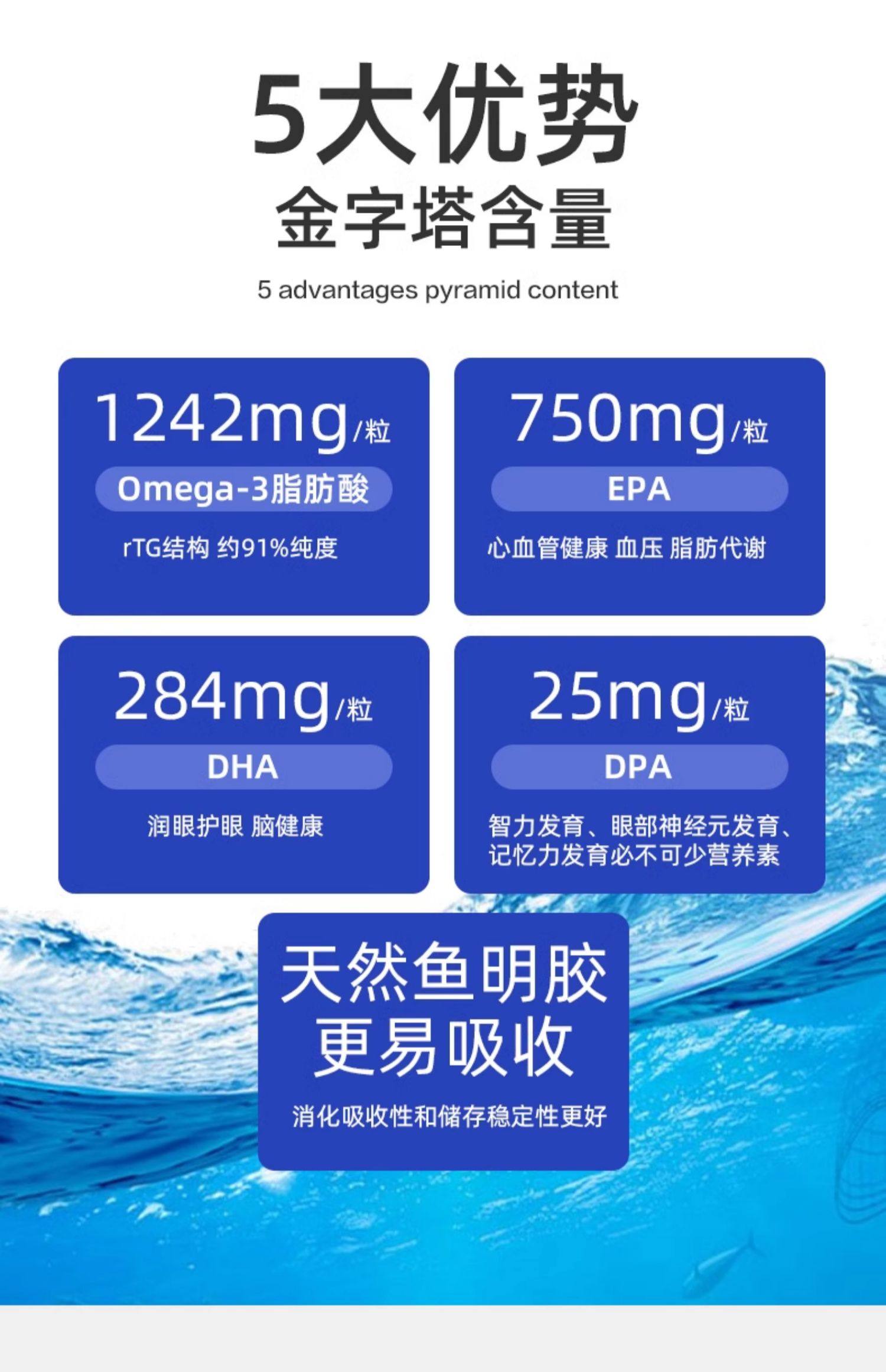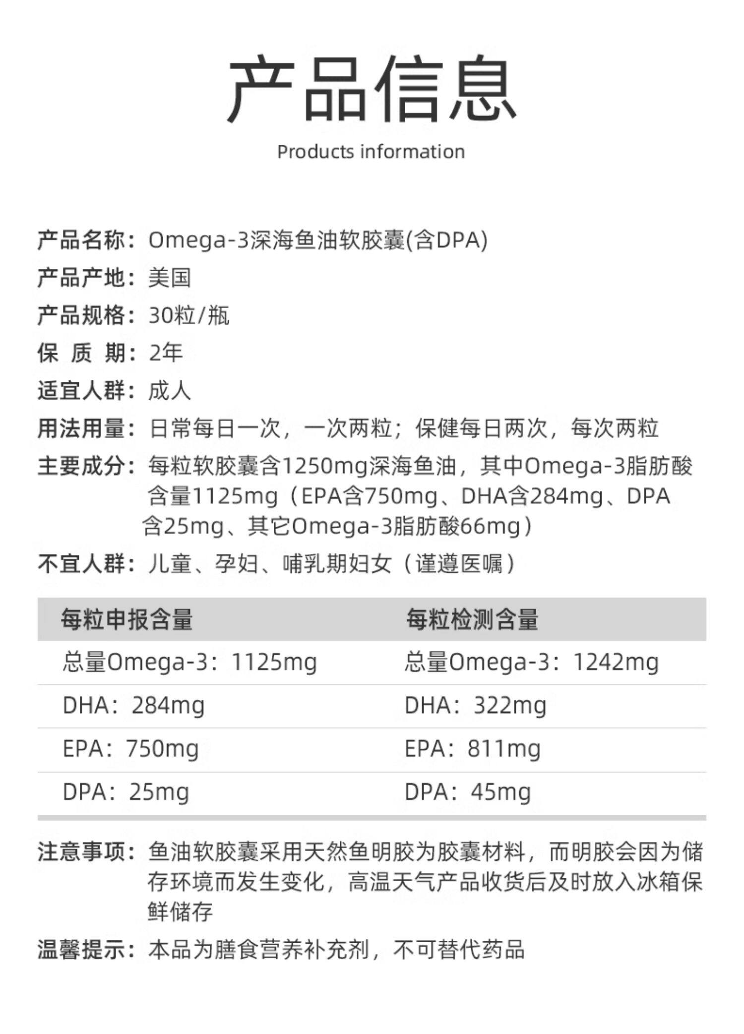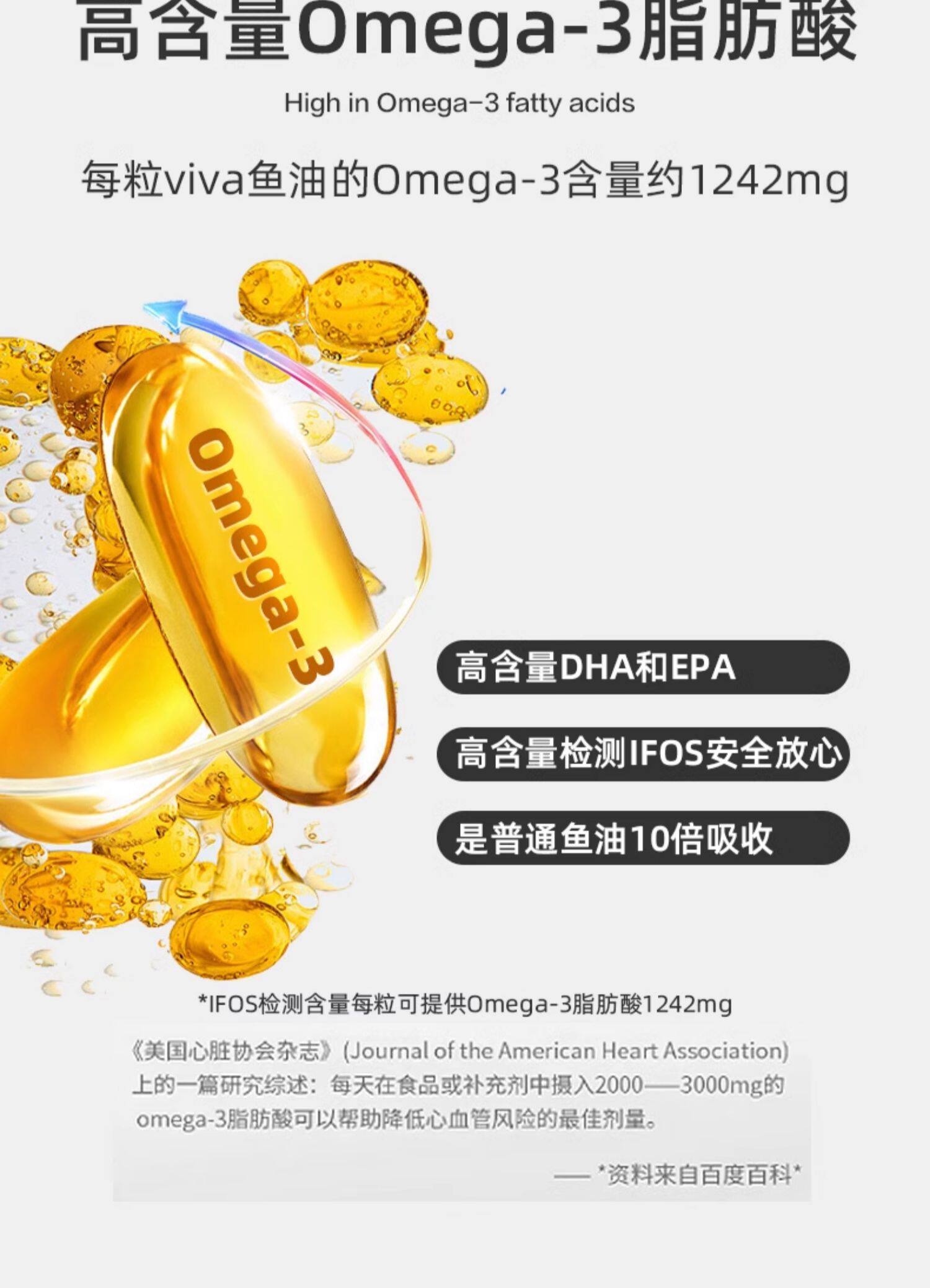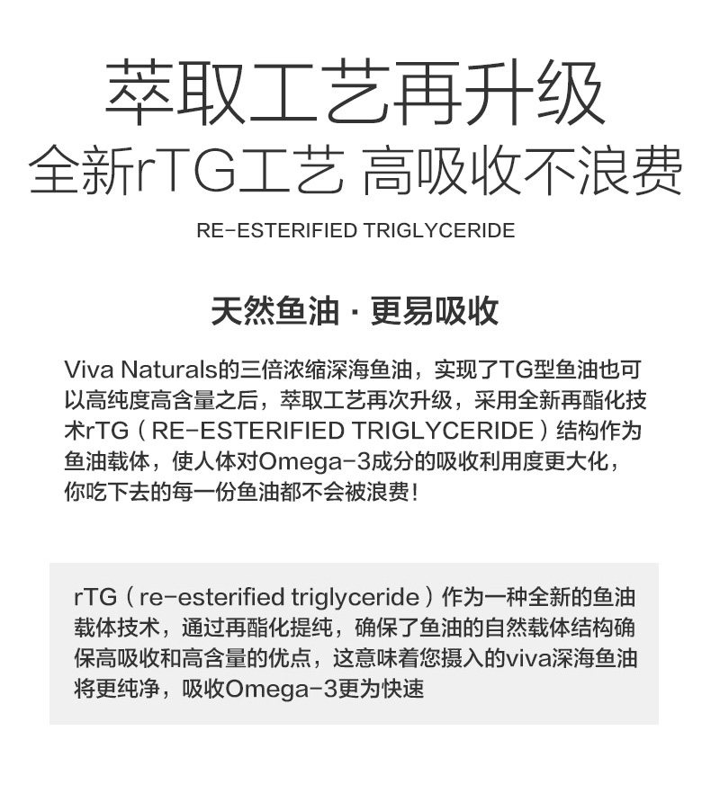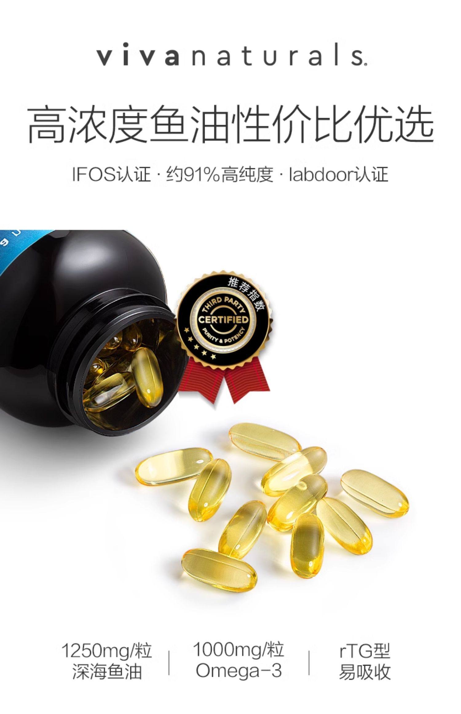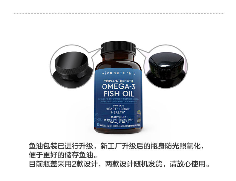 Viva美国原装进口高纯度深海鱼油DPA天然omega3欧米伽3软胶囊30粒