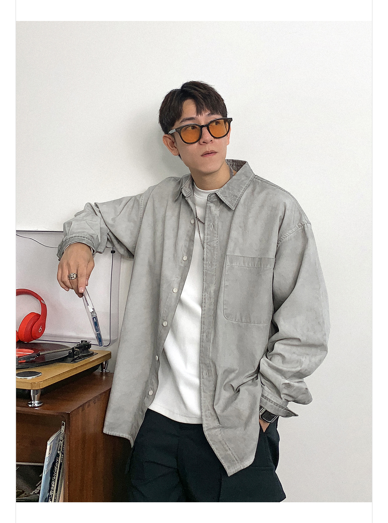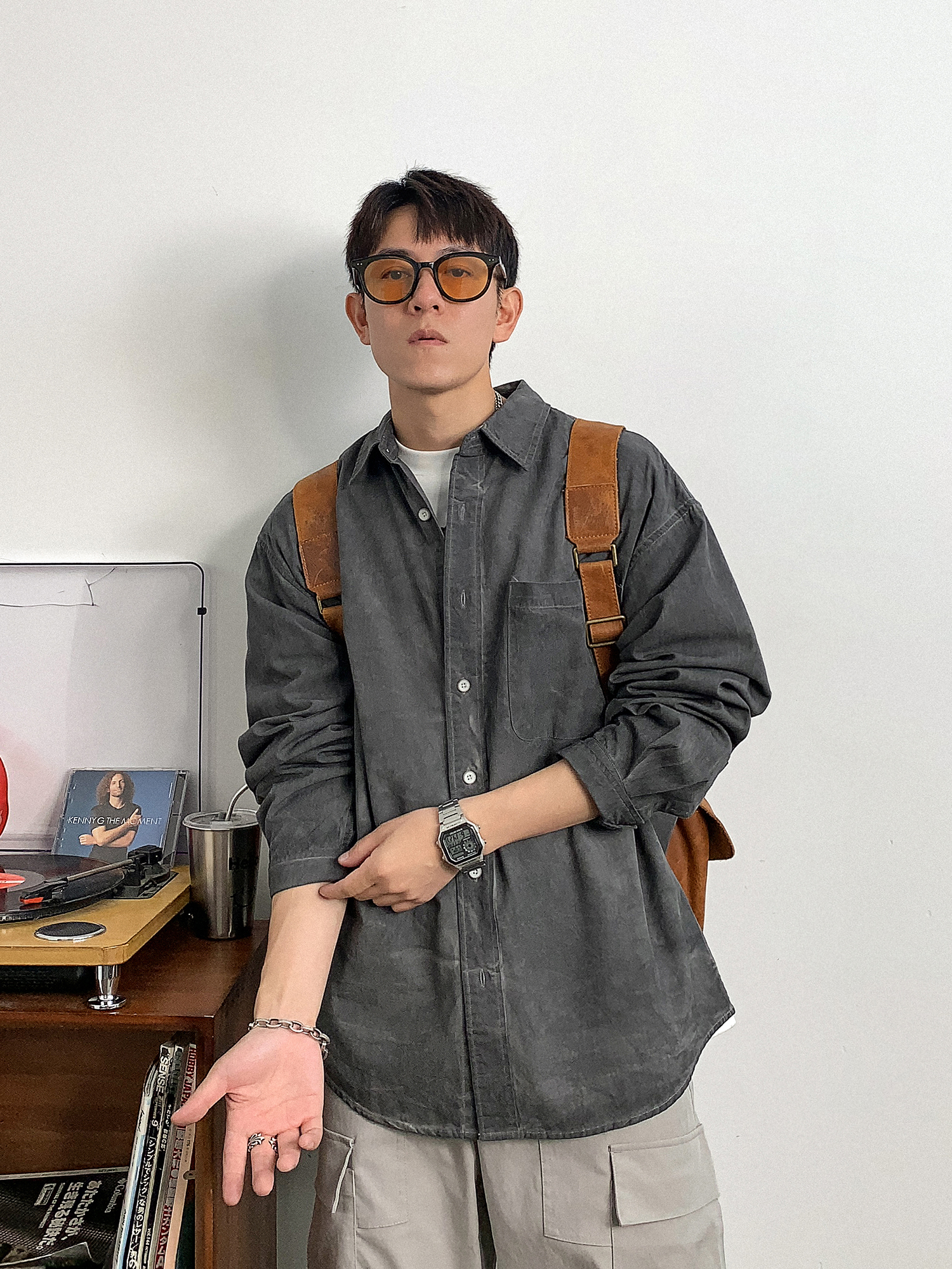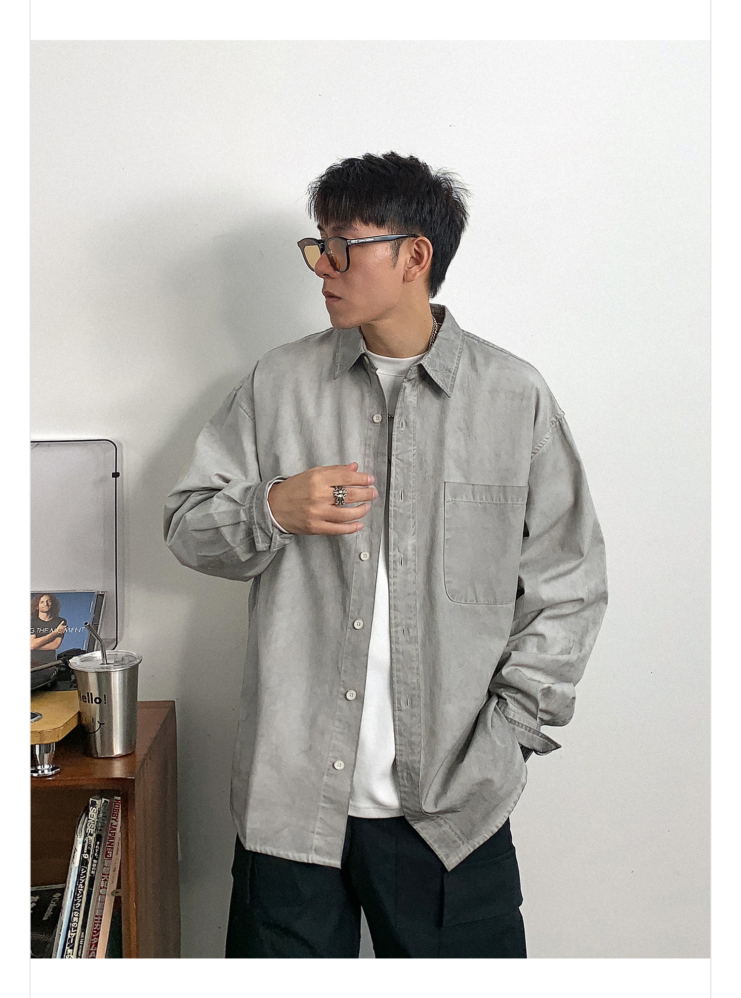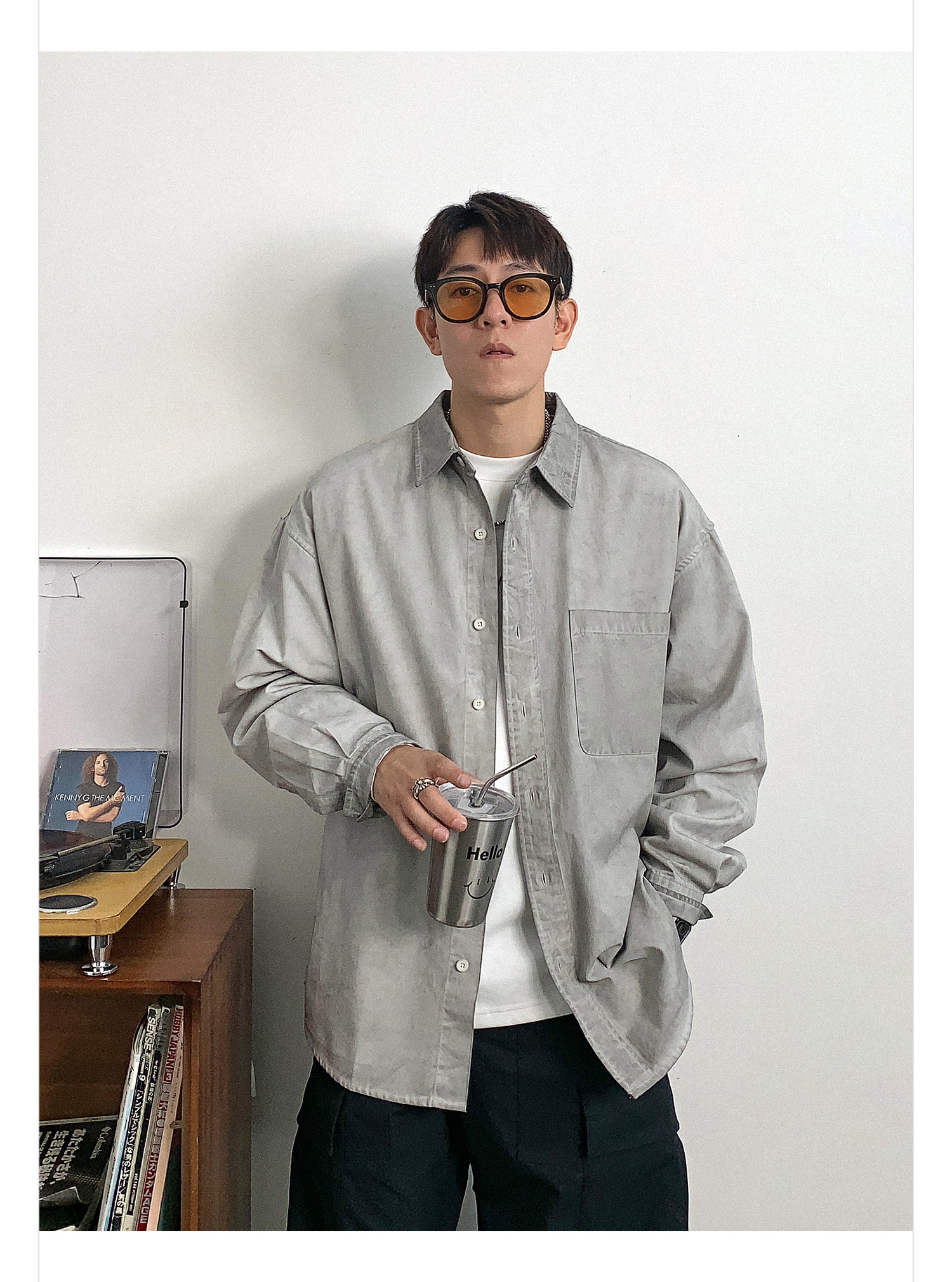 徐太浪时尚炒色套色工艺长袖衬衫男春秋潮牌男装休闲灰色衬衣外套