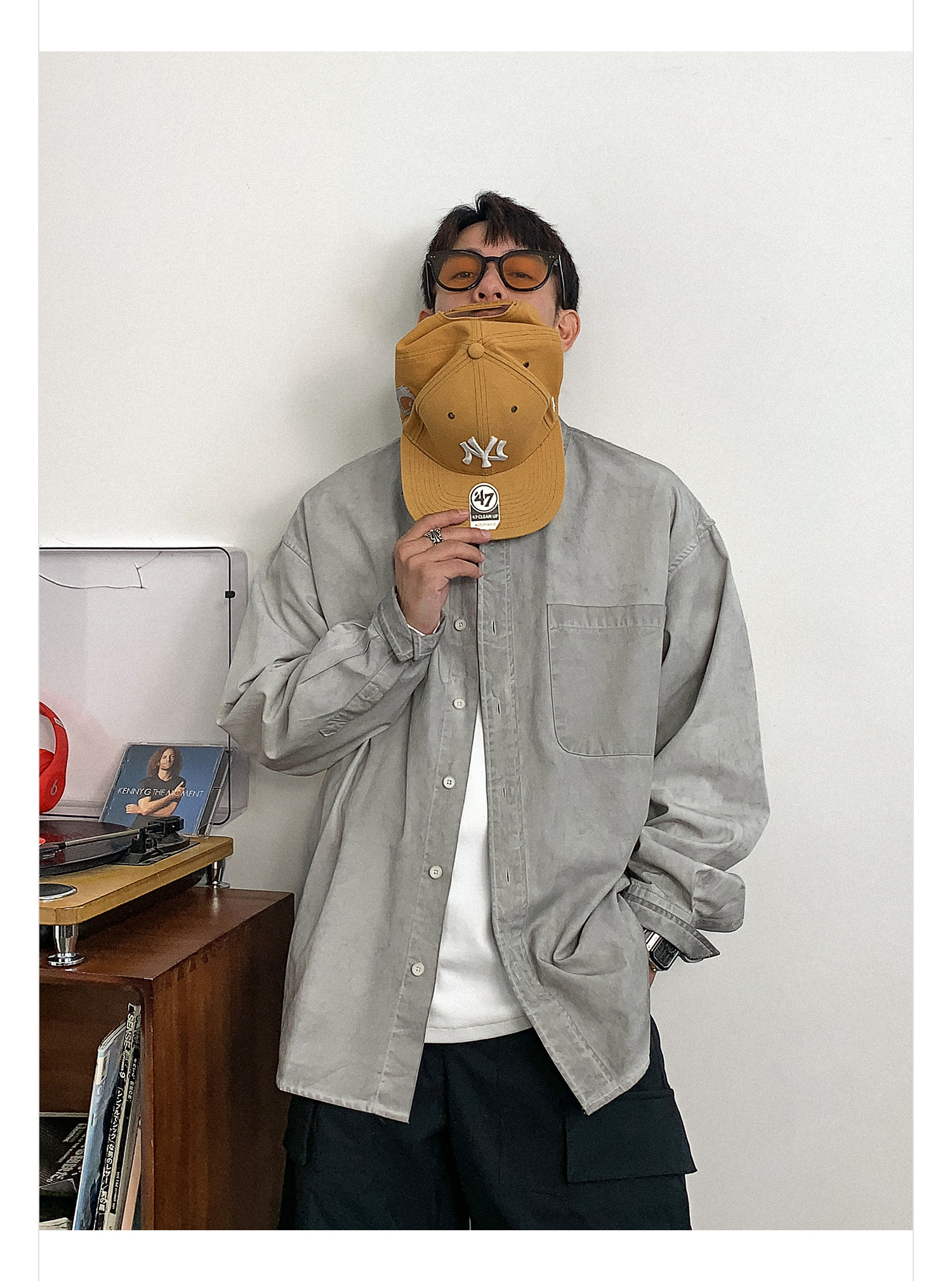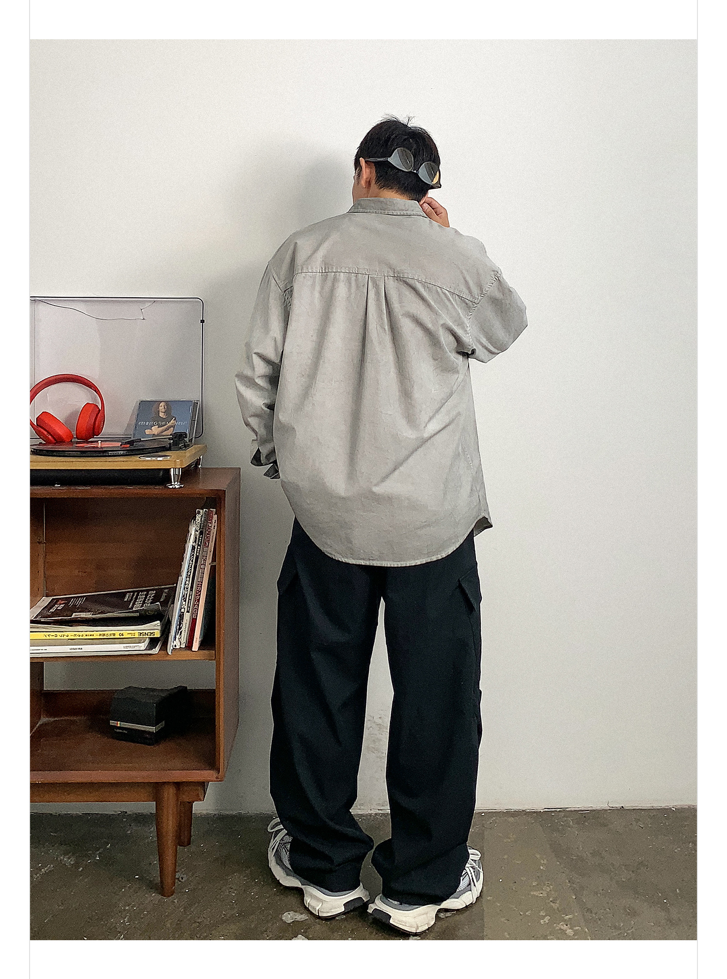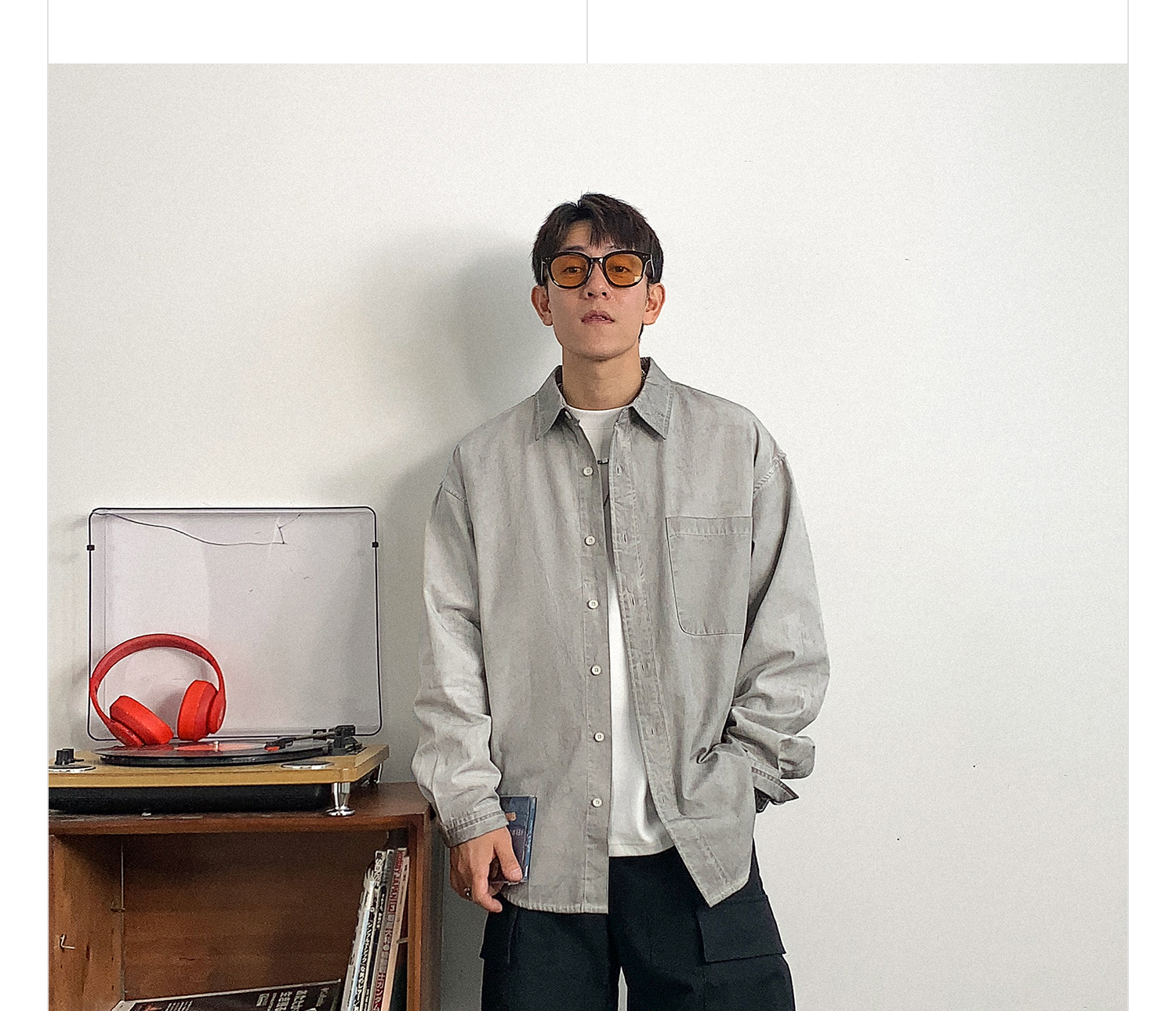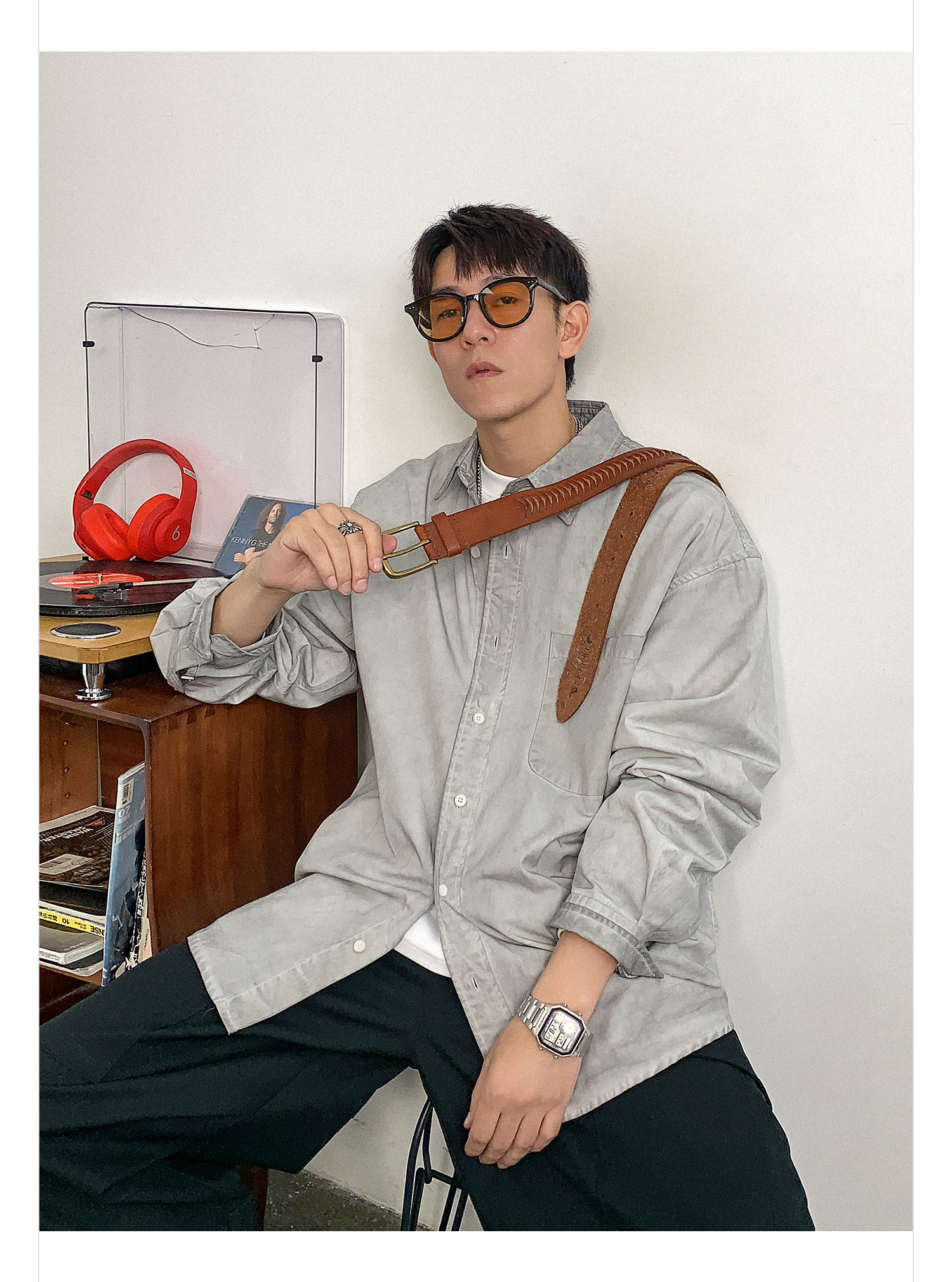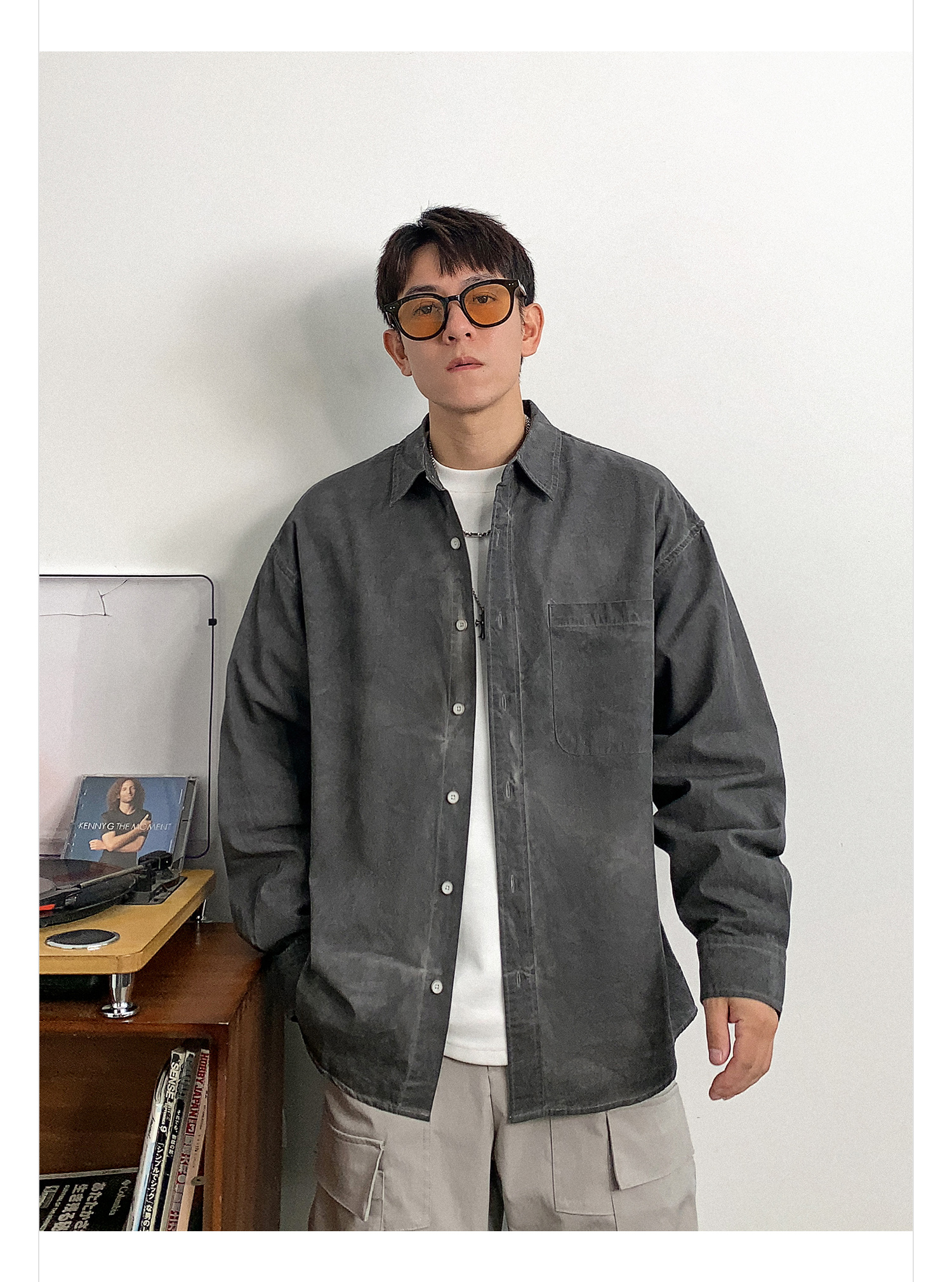 徐太浪时尚炒色套色工艺长袖衬衫男春秋潮牌男装休闲灰色衬衣外套
