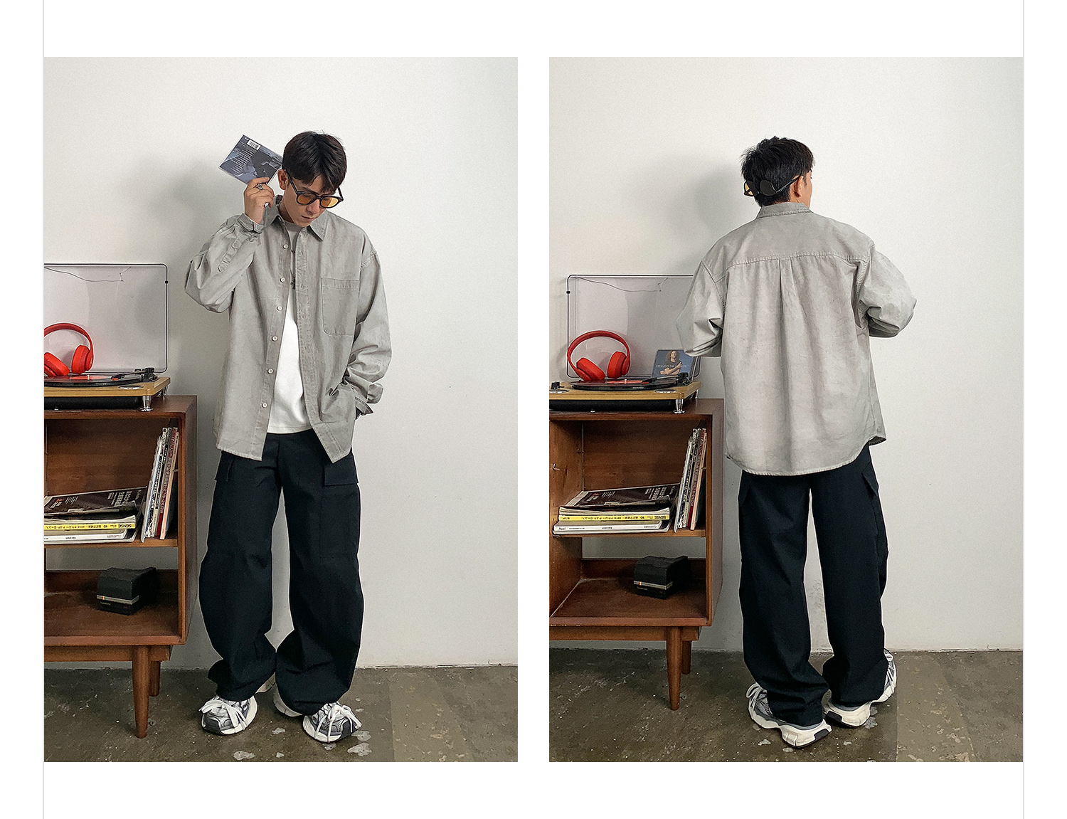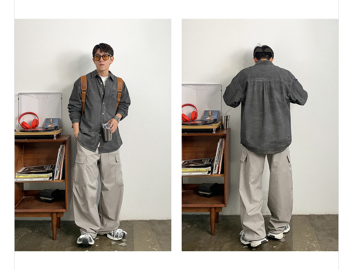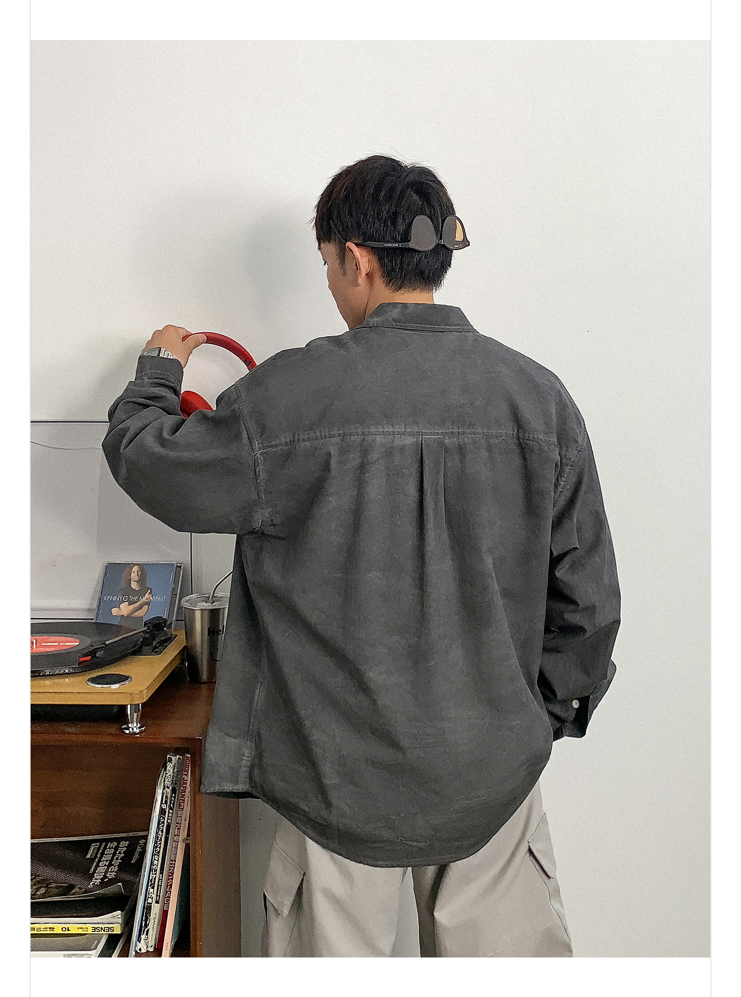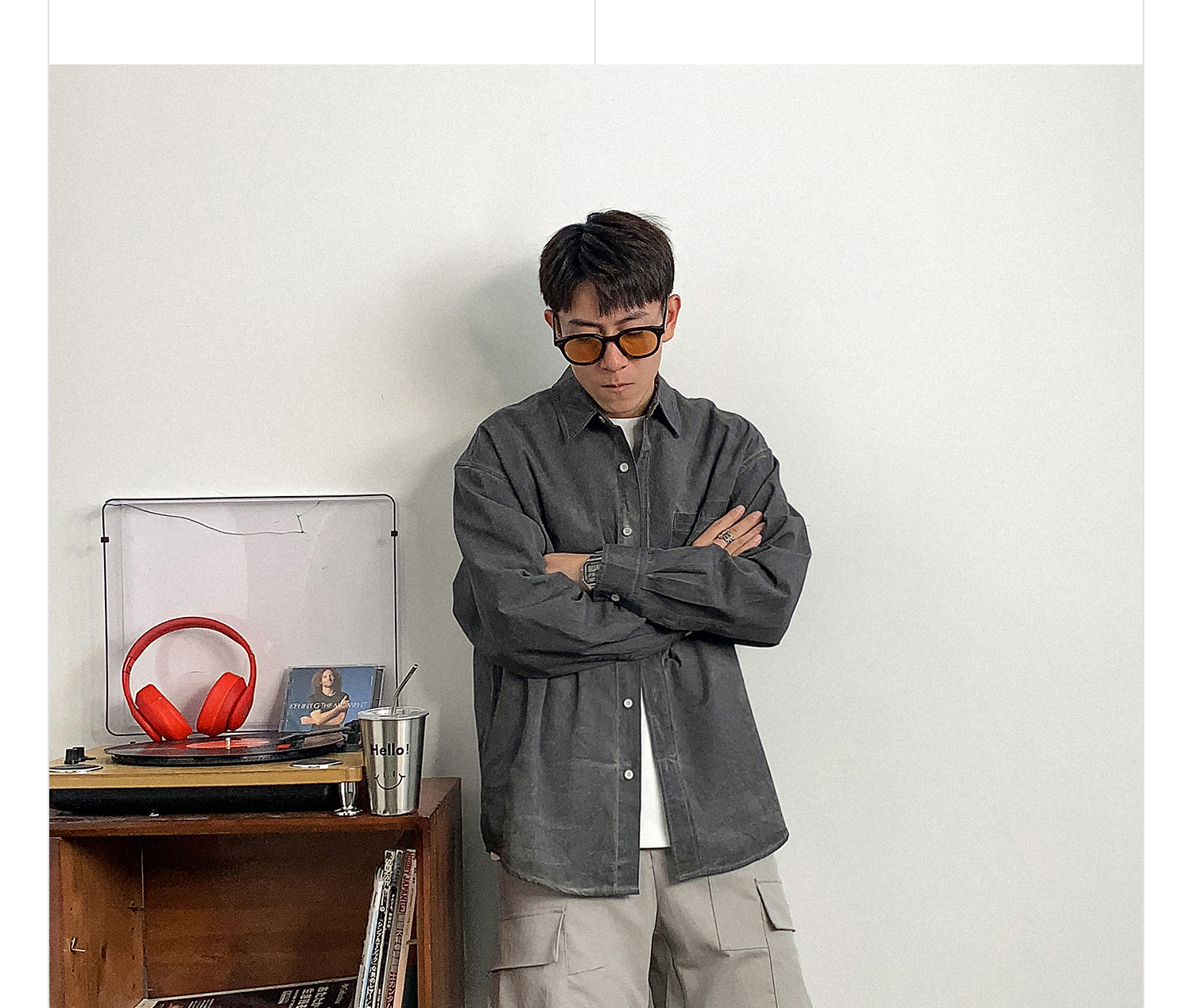 徐太浪时尚炒色套色工艺长袖衬衫男春秋潮牌男装休闲灰色衬衣外套