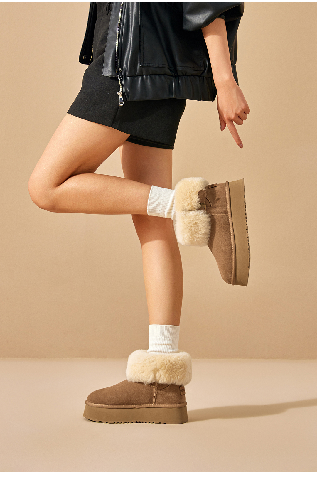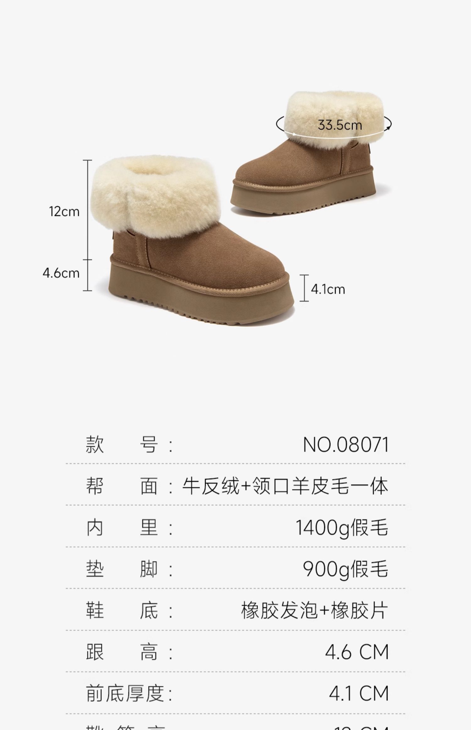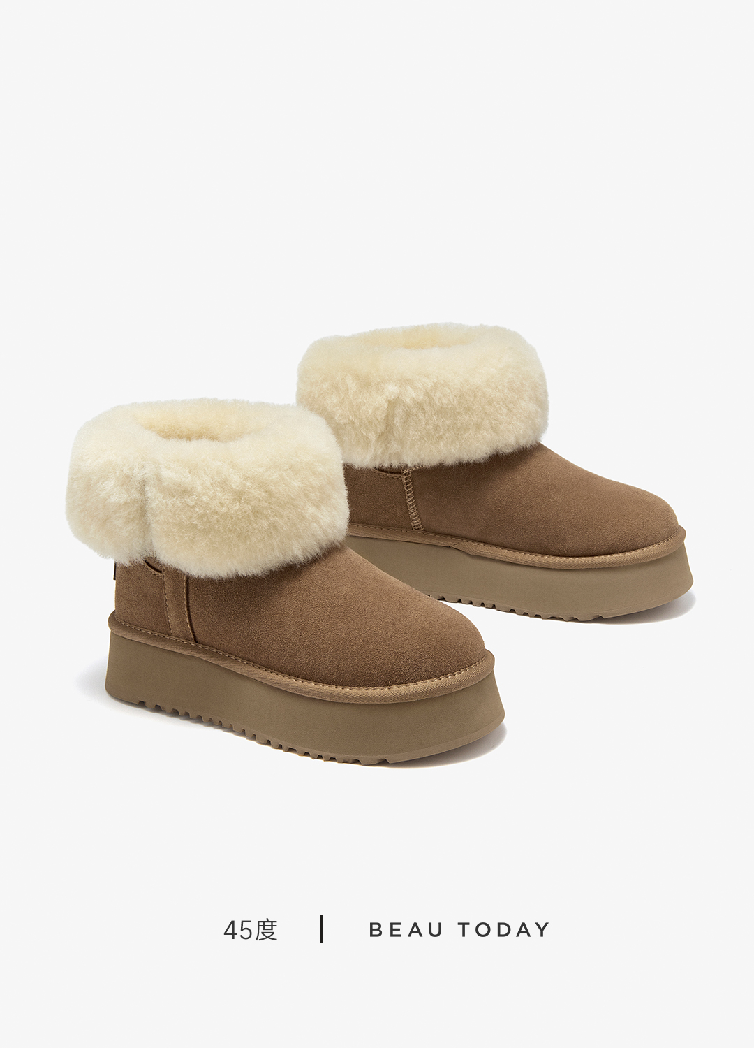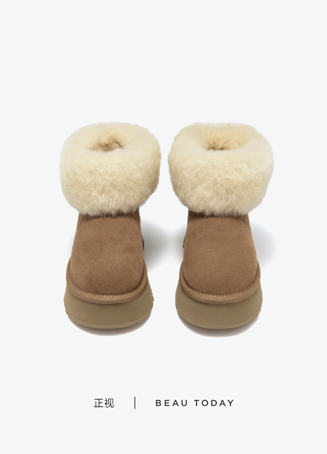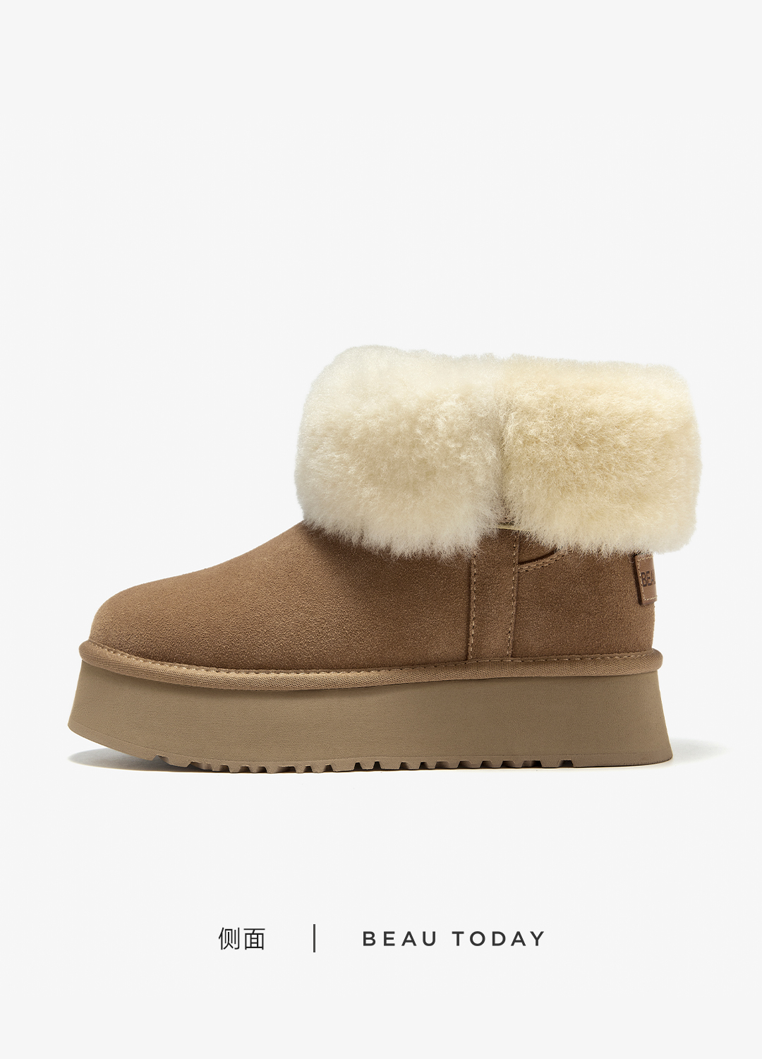 BeauToday 厚底雪地靴秋冬BT加绒棉靴女保暖毛绒棉鞋毛毛鞋08071